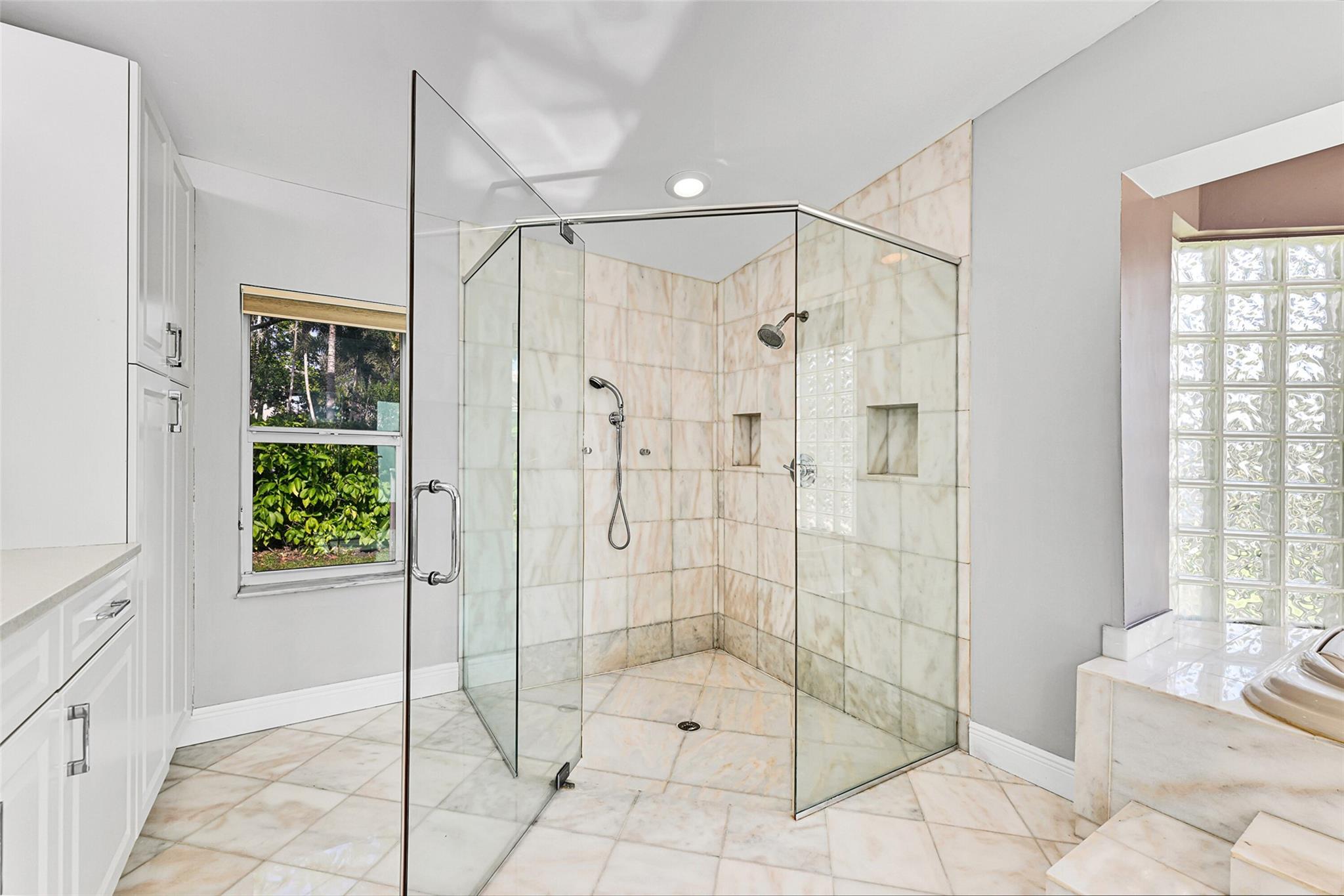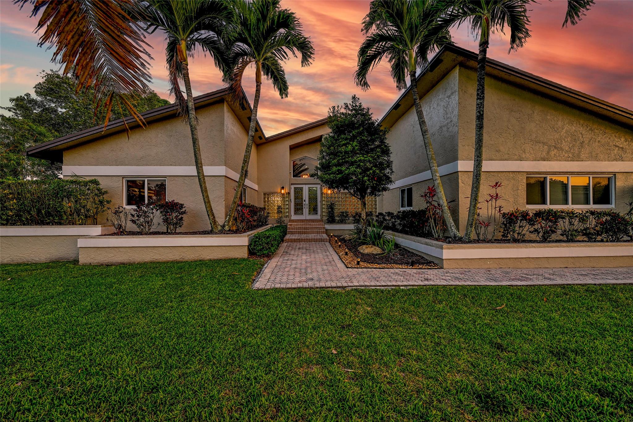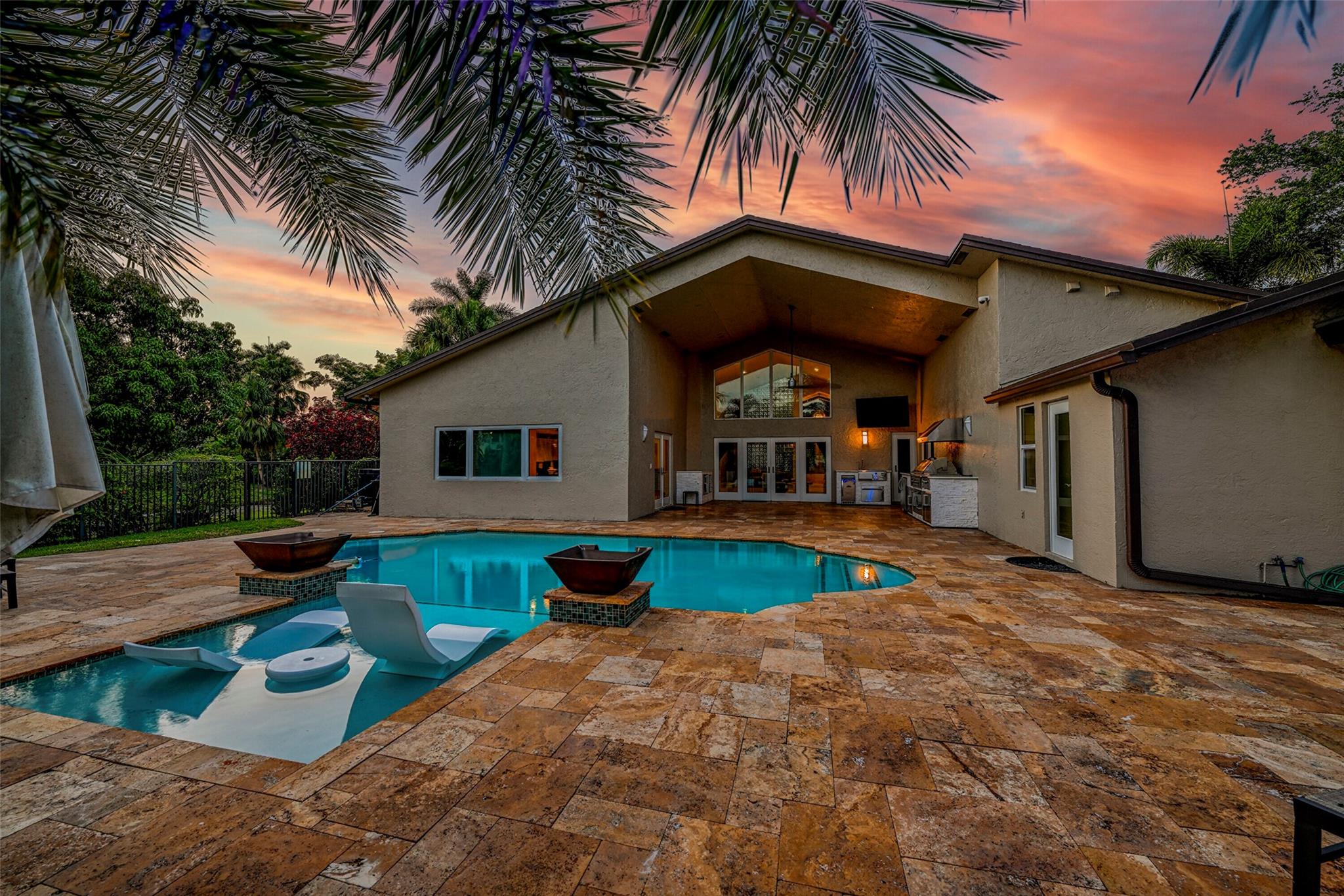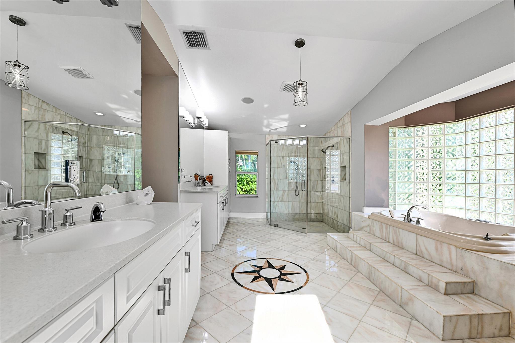 Discover refined living in the highly desirable Whispering pines community- where every home is uniquely crafted and surrounded by lush landscapes, peaceful water views and the soothing sounds of nature. This 5-bed, 3.5-bathroom estate is set on a builder's acre and offers the perfect balance of elegance and comfort. Designed with soaring 31-foot ceilings, the home features marble flooring in common areas, hardwood floors in bedrooms, and built in closets throughout. The oversized primary bedroom overlooks the pool. At the heart of the home is a chef-inspired kitchen outfitted with Thermador appliances and built in Miele coffee system. Step outside to your resort style backyard with heated pool, stunning water views, and a brand new in ground basketball hoop. This rare find won't last.
