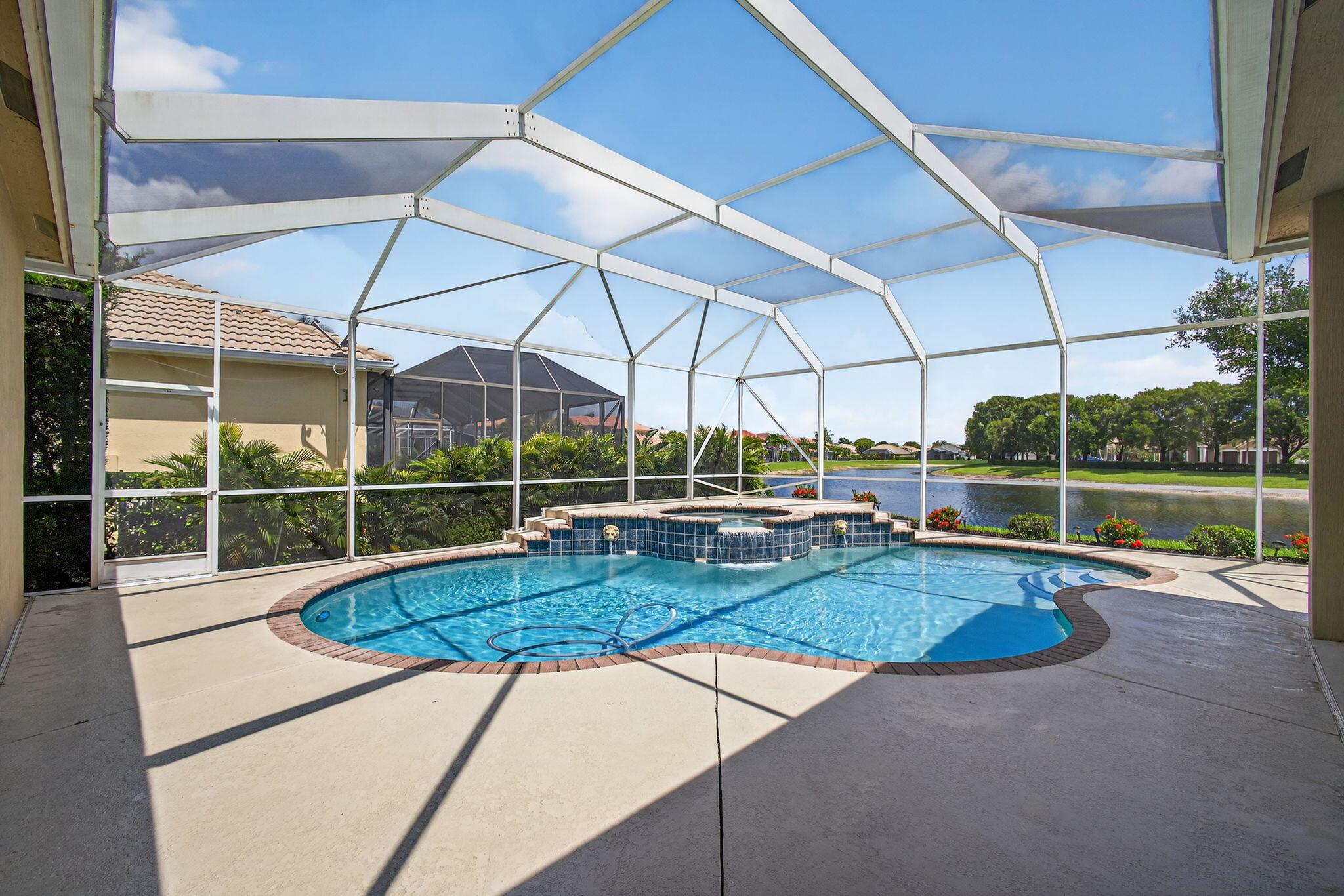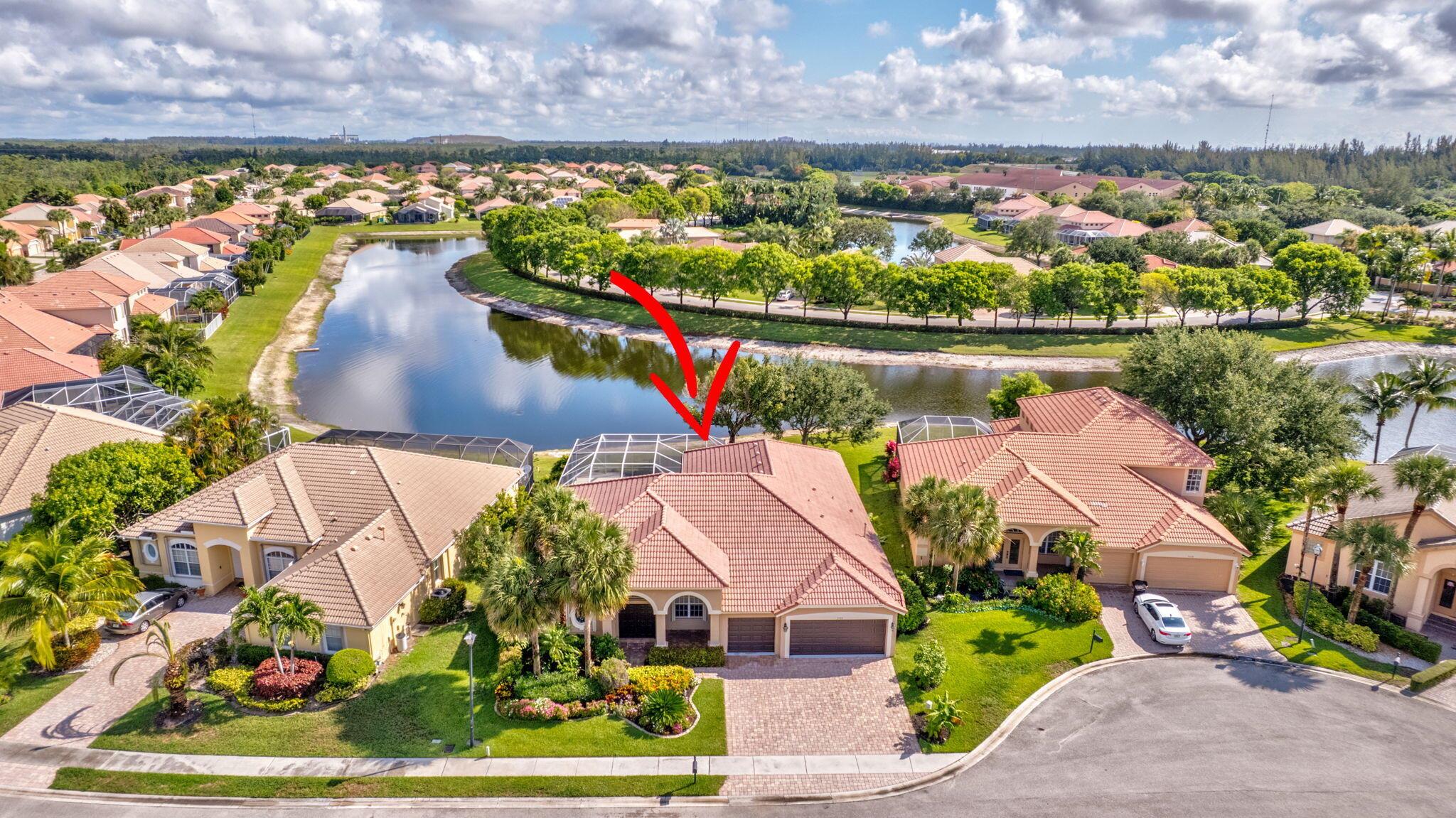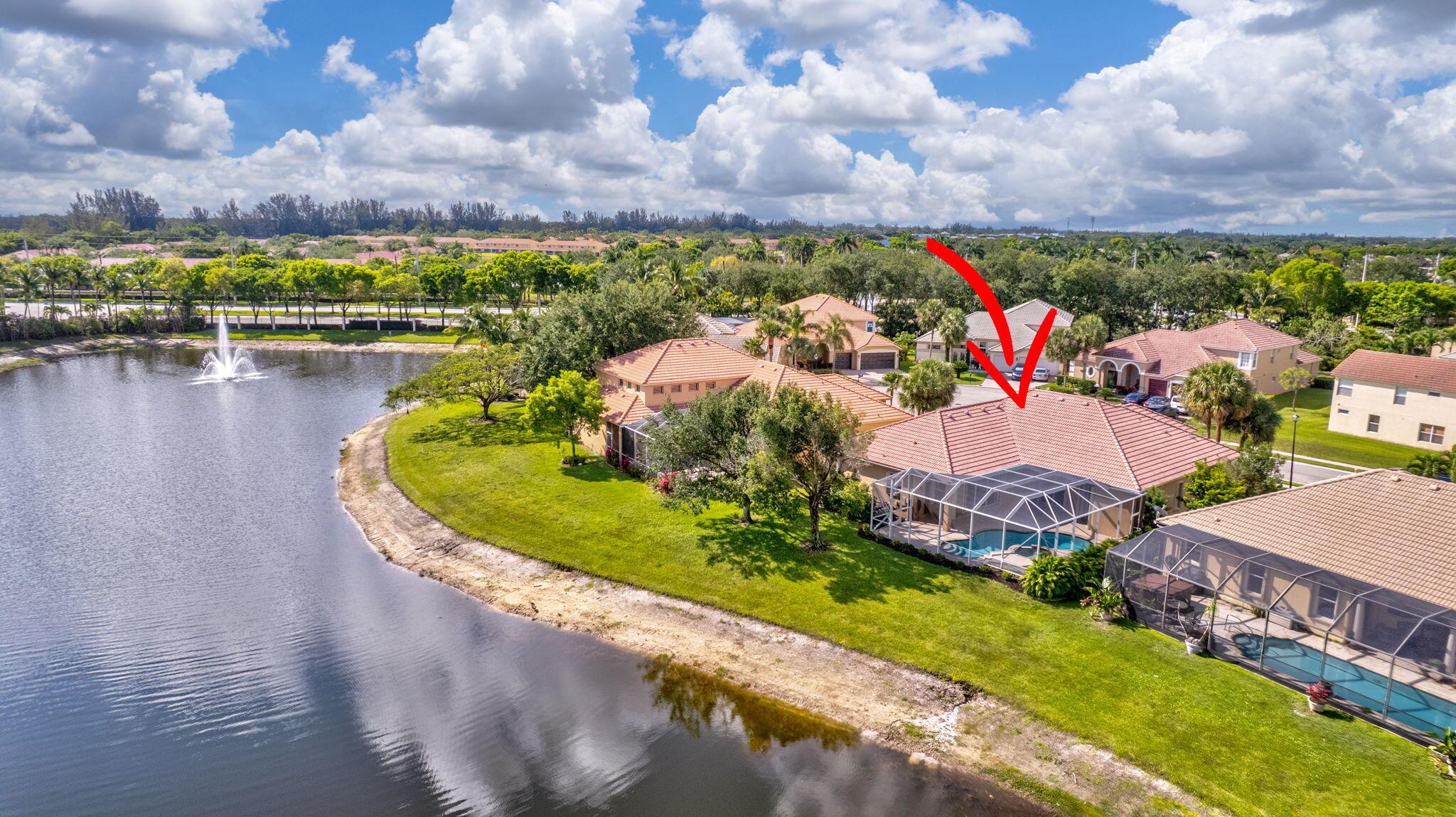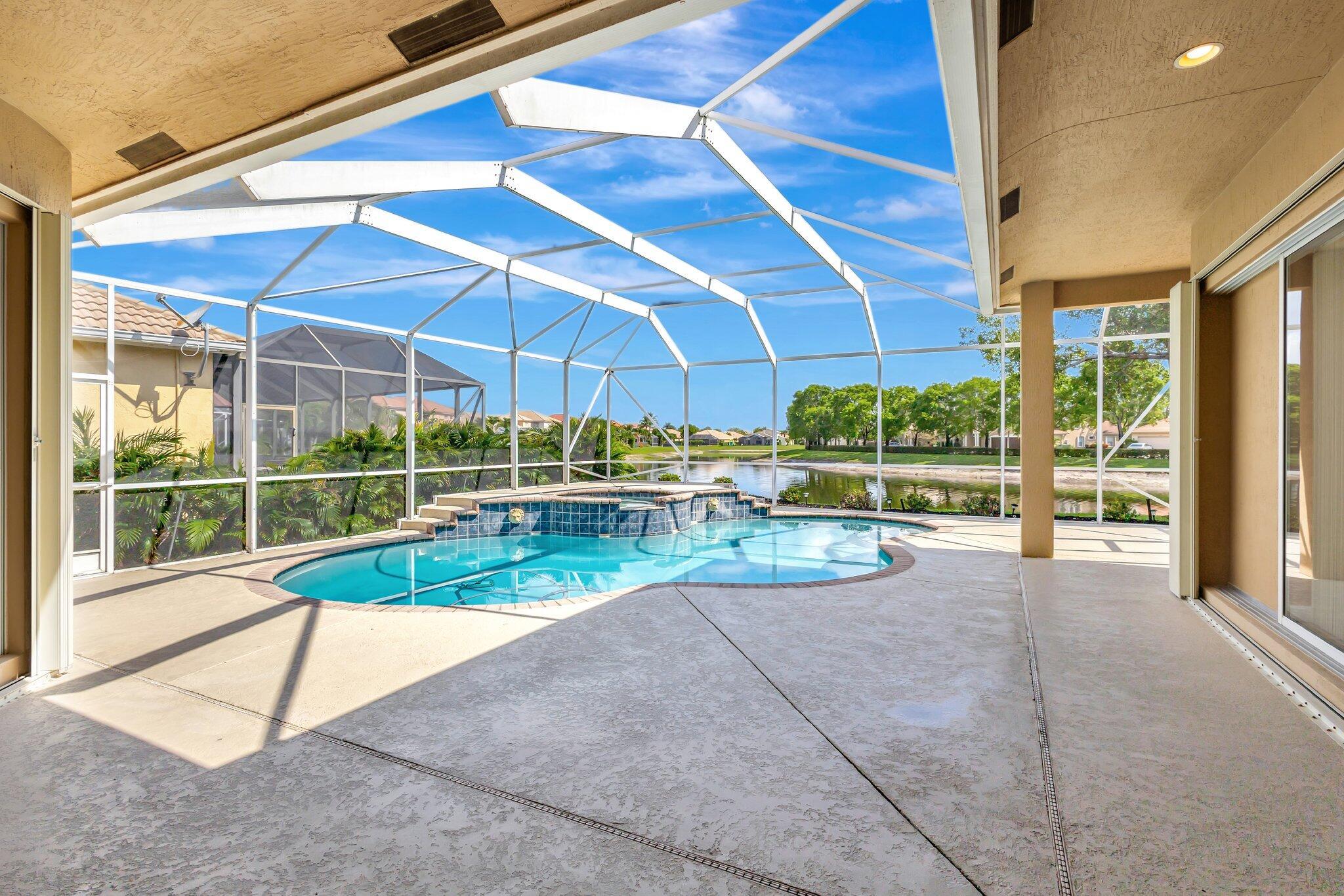 Back on the market with a freshly painted interior! A beautiful flower garden invites you to this 4 bed, 3 bath home Expansive windows bring the outdoors in to this home built for entertaining. Thoughtfully designed layout includes spacious rooms & open floor plan. LG Thin Q fridge, stove, microwave, smart hot water heater. Lushly landscaped, lake views with a screened-in pool and patio, ideal for relaxing or entertaining year-round. The home also features dual a/c units and a rare a/c-equipped garage, perfect for a home gym, workshop, or temperature-controlled storage. The quiet community of Hamilton Bay is centrally located to shopping, dining, highways and downtown WPB. This home offers a lifestyle that's both peaceful and practical. Don't miss your chance to own this gem!