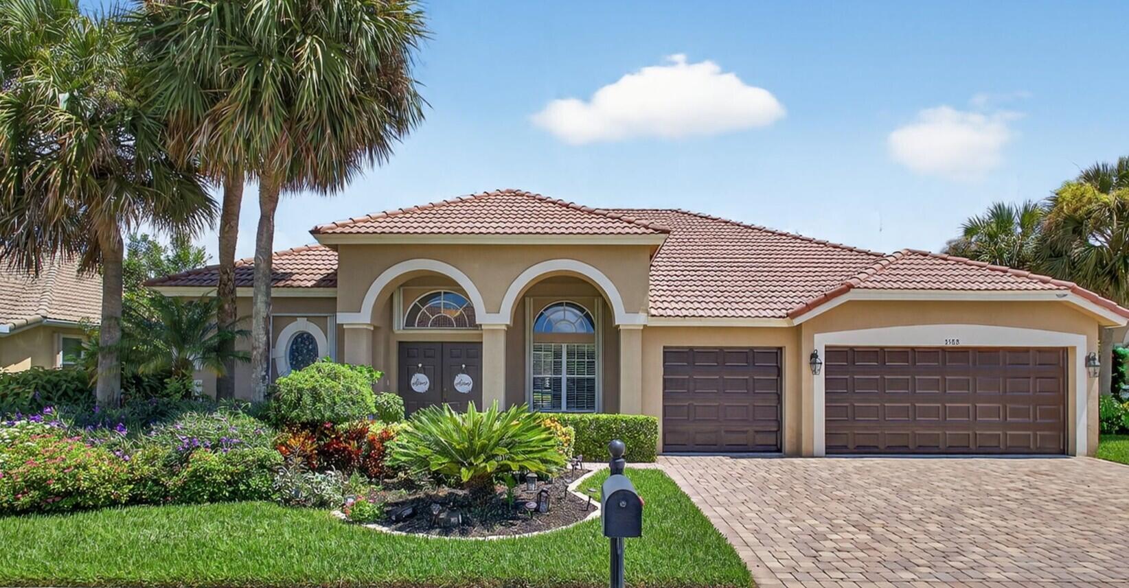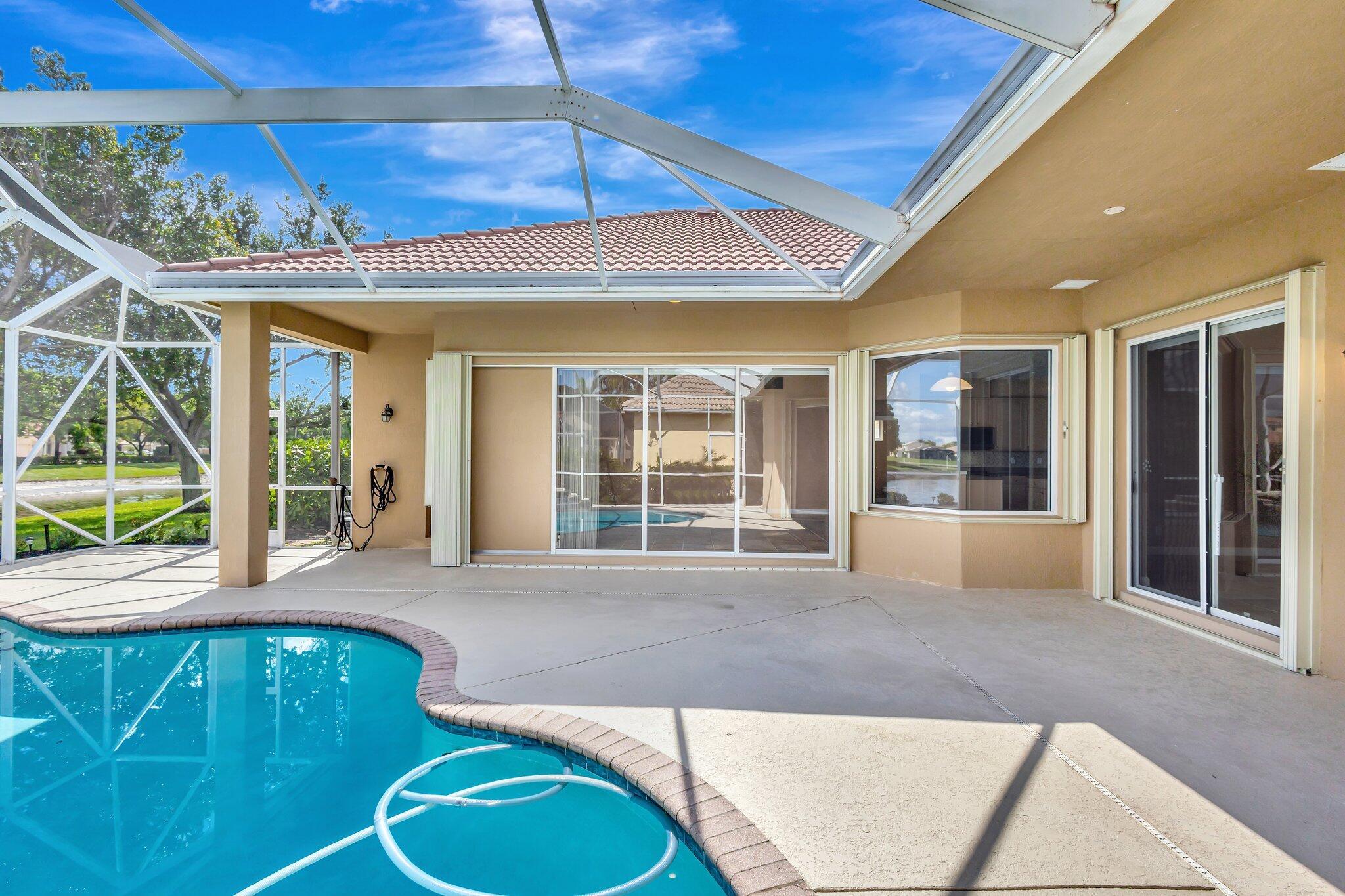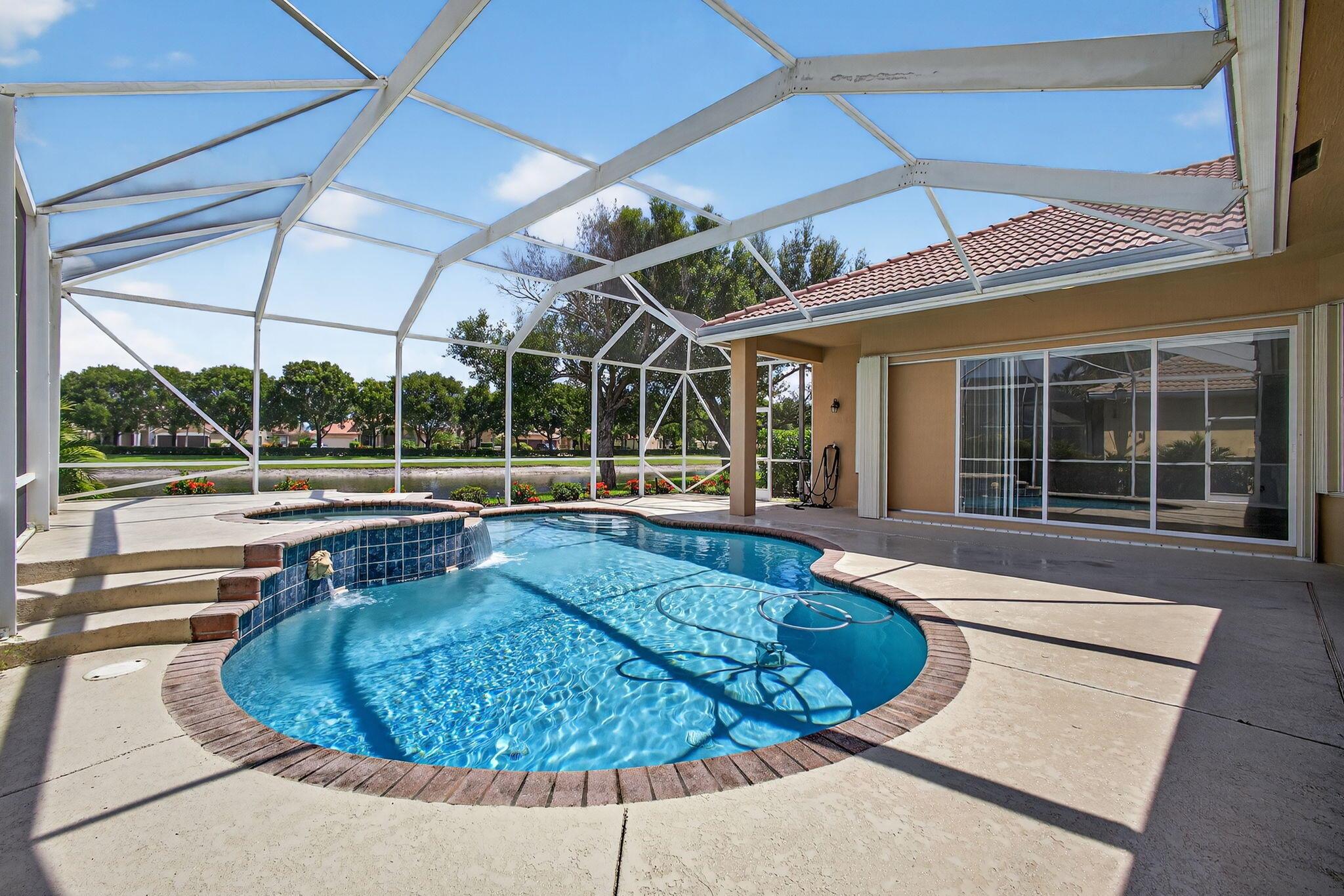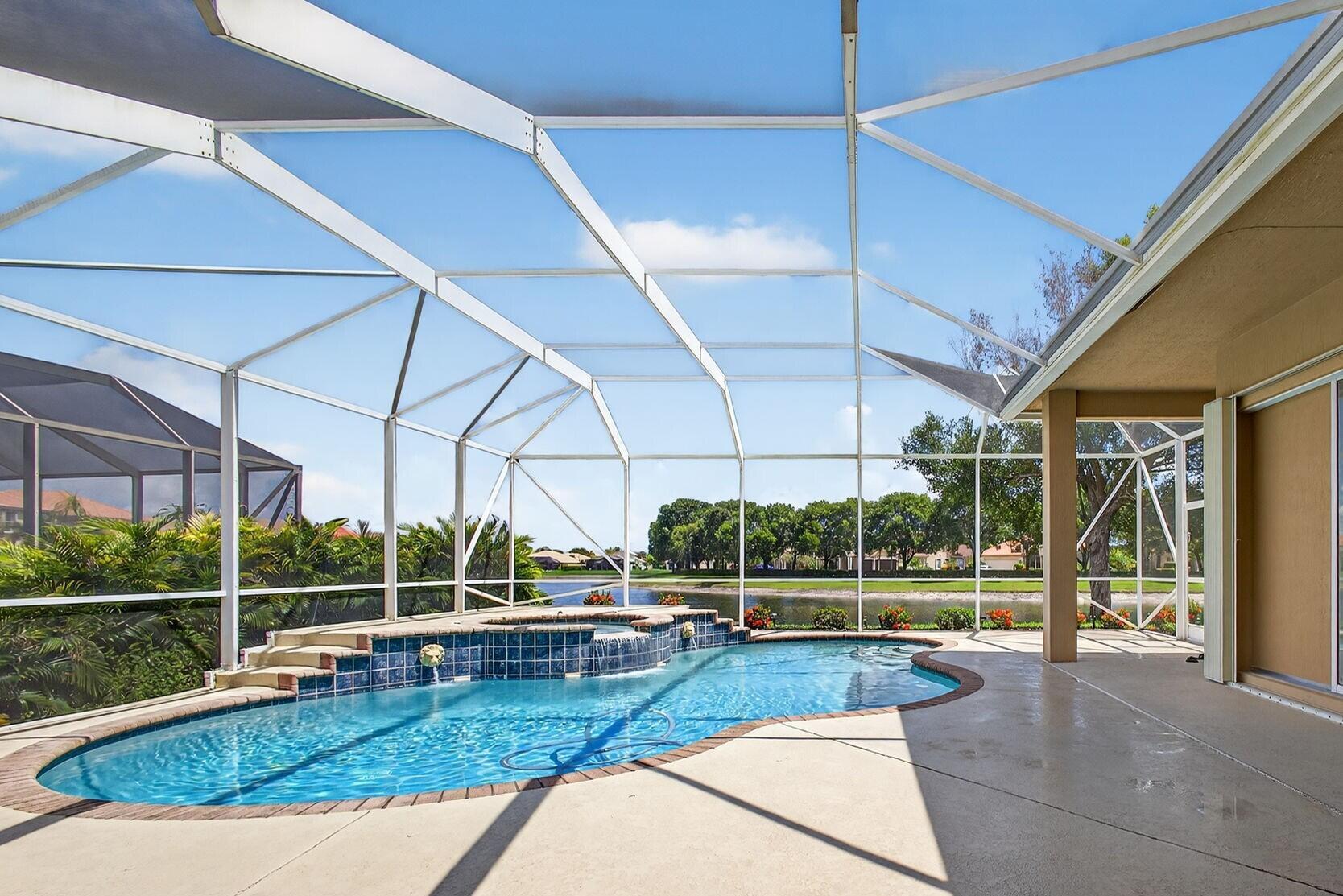 Back on the market with a freshly painted interior! A beautiful flower garden invites you to this 4 bed, 3 bath home Expansive windows bring the outdoors in to this home built for entertaining. Thoughtfully designed layout includes spacious rooms & open floor plan. LG Thin Q fridge, stove, microwave, smart hot water heater. Lushly landscaped, lake views with a screened-in pool and patio, ideal for relaxing or entertaining year-round. The home also features dual a/c units and a rare a/c-equipped garage, perfect for a home gym, workshop, or temperature-controlled storage. The quiet community of Hamilton Bay is centrally located to shopping, dining, highways and downtown WPB. This home offers a lifestyle that's both peaceful and practical. Don't miss your chance to own this gem!