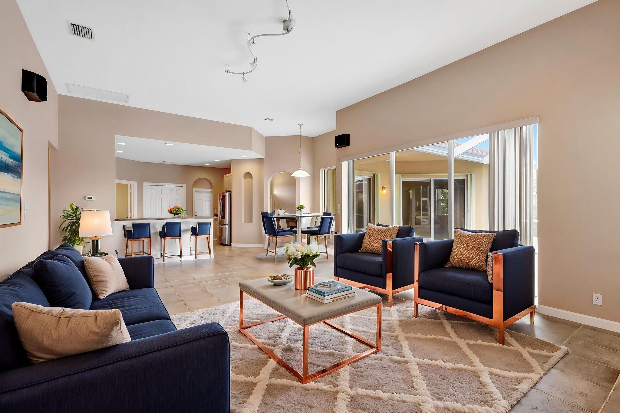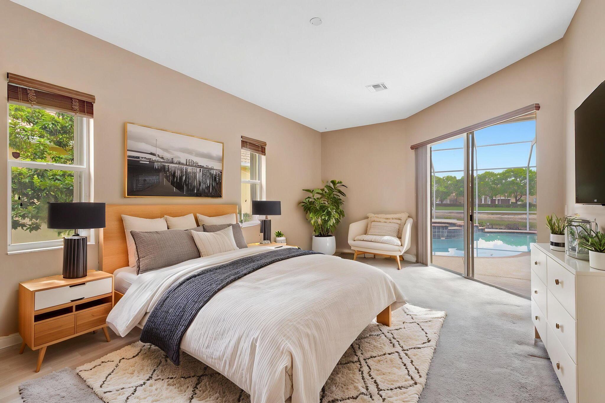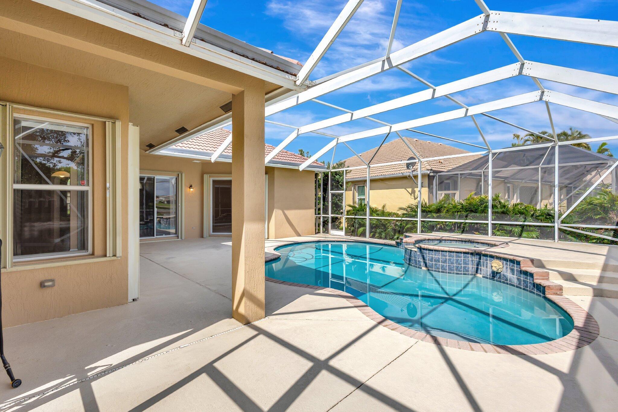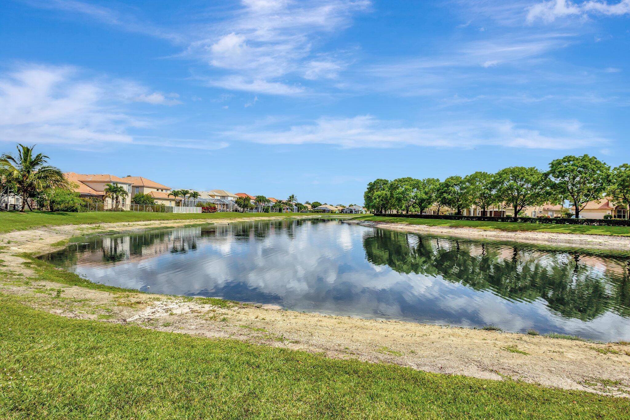 Back on the market with a freshly painted interior! A beautiful flower garden invites you to this 4 bed, 3 bath home Expansive windows bring the outdoors in to this home built for entertaining. Thoughtfully designed layout includes spacious rooms & open floor plan. LG Thin Q fridge, stove, microwave, smart hot water heater. Lushly landscaped, lake views with a screened-in pool and patio, ideal for relaxing or entertaining year-round. The home also features dual a/c units and a rare a/c-equipped garage, perfect for a home gym, workshop, or temperature-controlled storage. The quiet community of Hamilton Bay is centrally located to shopping, dining, highways and downtown WPB. This home offers a lifestyle that's both peaceful and practical. Don't miss your chance to own this gem!