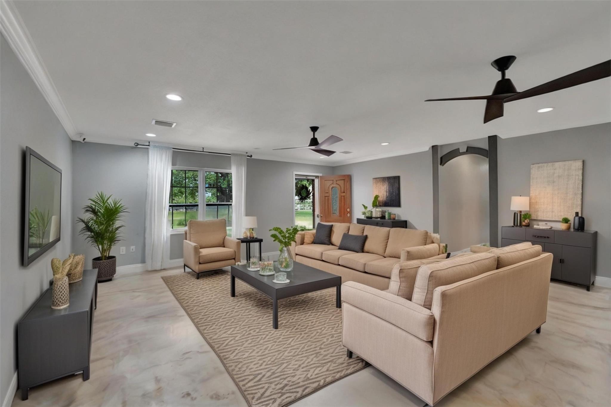 SENSATIONAL SOUTHWEST RANCHES multi-acre estate home is located on 2.3 acres in the highly desirable Rolling Oaks community! Property has 3 structures totaling 4,970 sqft with 2800 sqft house, 770 sqft extra garage/workshop & 1,400 sqft horse barn w/ 4 stalls & 2 rooms. This charming single story ranch home features 4 bedrooms+office nook+mudroom, with 2 baths, 2 car garage PLUS a separate 2-4 car unattached garage/workshop. Perfect as is or plenty of space to build your own dream home! Pull up to your stylish front entry gate which provides privacy & appeal w/ cascading trees leading up the driveway. Chef's kitchen remodeled with open layout, sleek cabinetry, expansive island with wine fridge, & coffee bar. Modern epoxy flooring thru-out, updated bathrooms, impact windows & roof (2017)