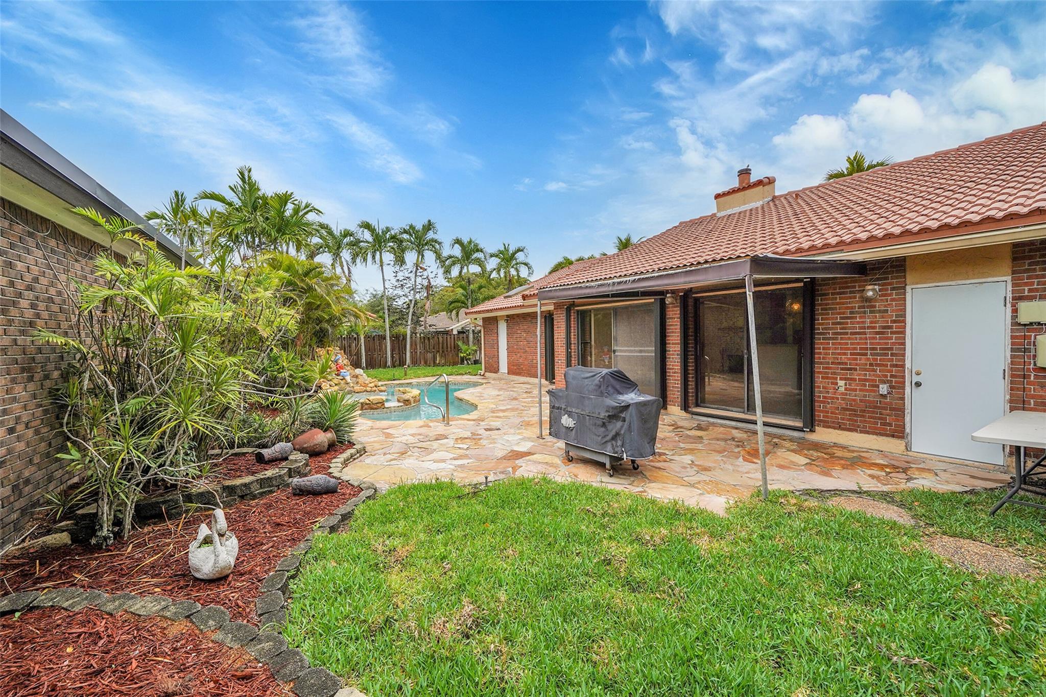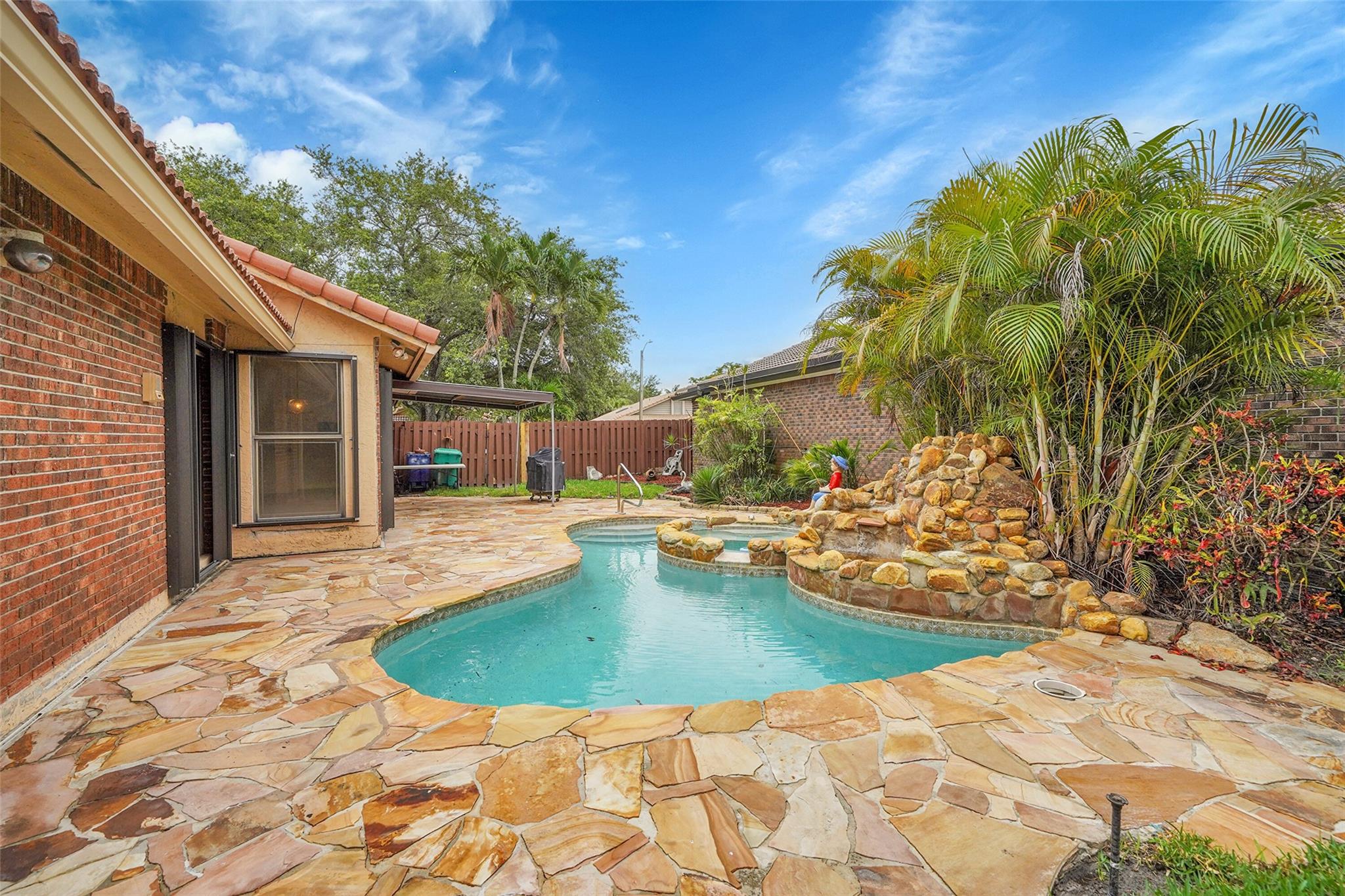 Welcome to Quaypoint at Rock Creek. This hidden gem home features 3 bedrooms, 2 bathrooms, a living room, a family room, a dining room, an open kitchen & a unique glass atrium space (perfect for a garden). Enjoy a fireplace on cold Florida nights, an amazing pool with a jacuzzi & waterfall for summer BBQs plus an oversized "L" shaped yard. Newer air conditioner & brand new hot water heater. Barrel tile roof that is 18 years old & just certified with 6 more years life from a licensed roofer. Accordion shutters & freshly painted inside. Pool was redone a couple of years ago, stamped concrete pool deck, & newer pool pump. Fresh mulch & all new sod. "A" rated schools, community parks, rec center & walking trail. Close to 75, Memorial West, Publix, Fresh Market & more