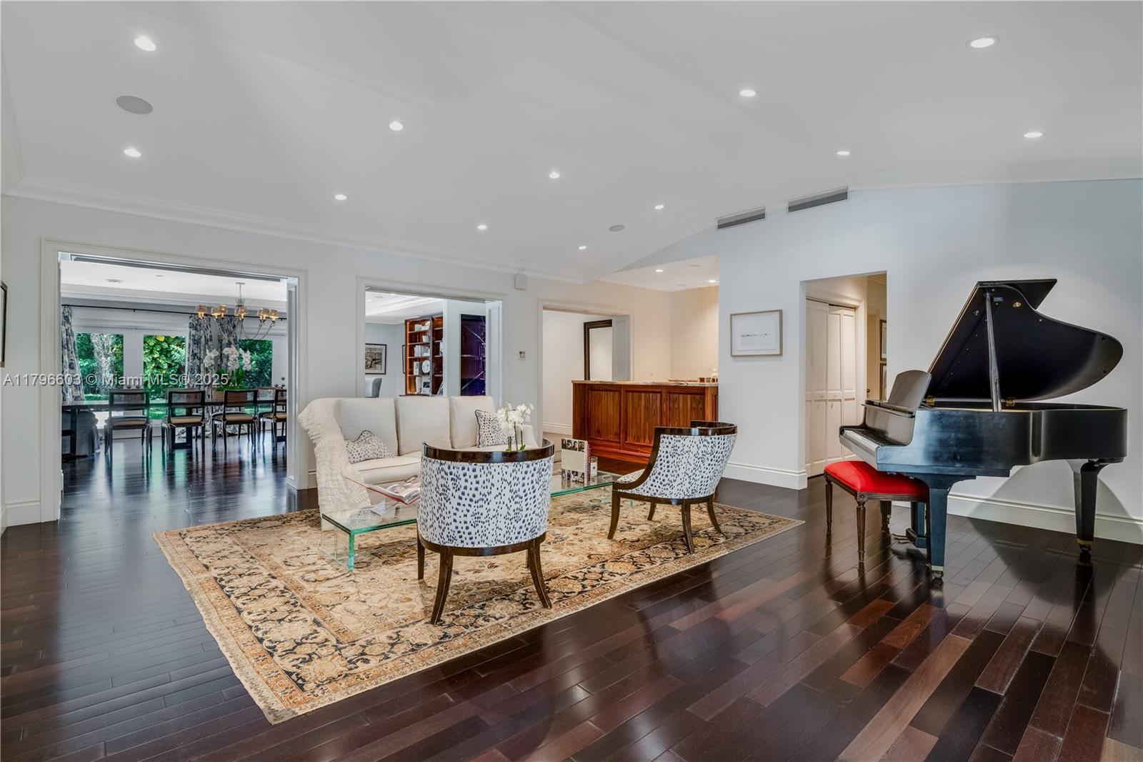 North Pinecrest Elegance with an irresistible flow tucked behind gates in one of North Pinecrest’s most coveted pockets. This rarely available estate blends timeless style with modern comfort, just moments from top-rated schools and parks. The open, airy floor plan is perfect for effortless living and entertaining, featuring 5 bedrooms, 4.5 baths, a private office, and a second large family room. An oversized dining room, spacious living areas, and a large eat-in kitchen flow into a grand family room with views of the pool, patio, and lush backyard. A tucked-away guest suite adds privacy and versatility. This is Florida living at its finest, indoors and out. Come experience the light, space, and warmth of this Pinecrest paradise.
