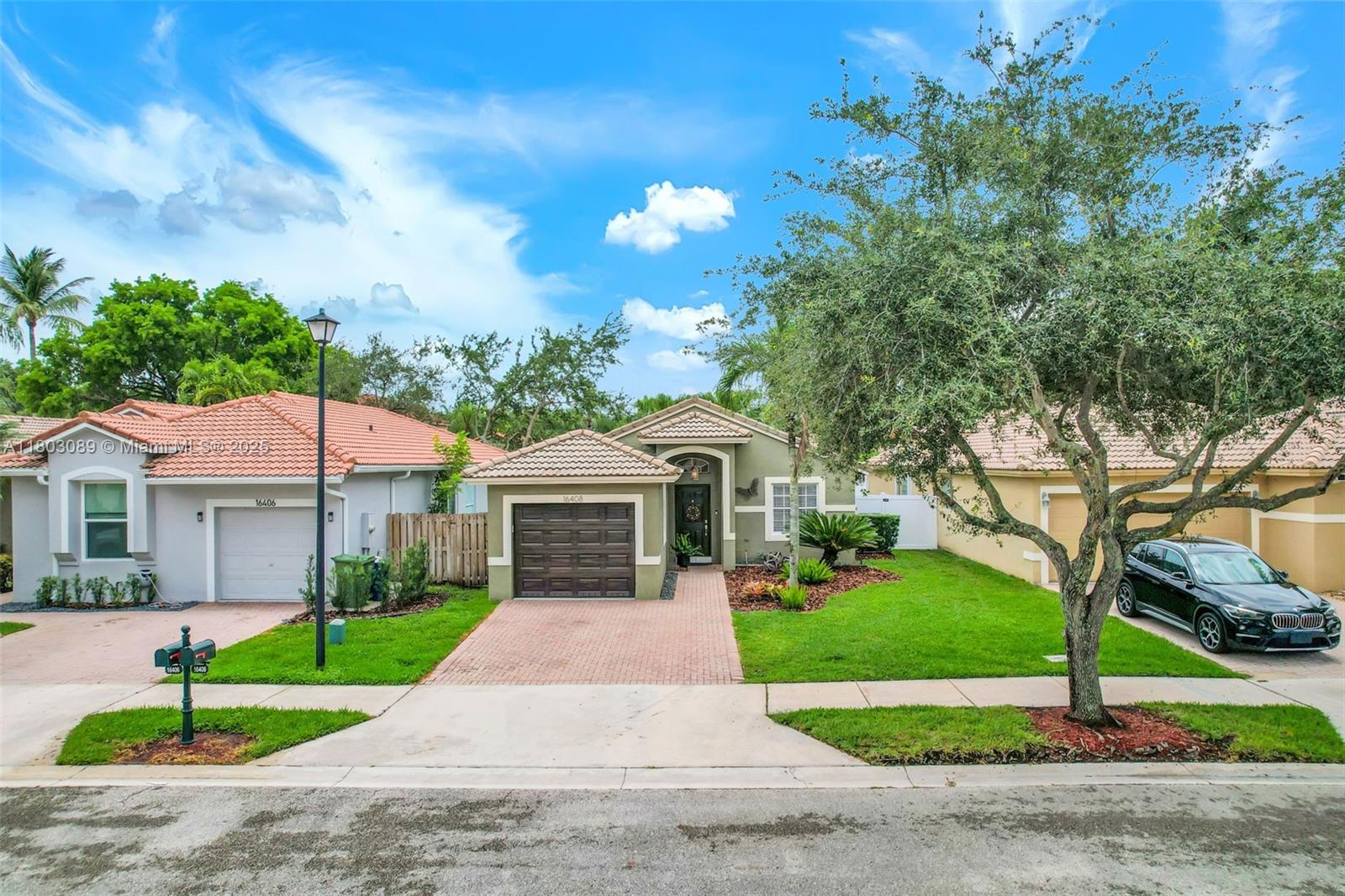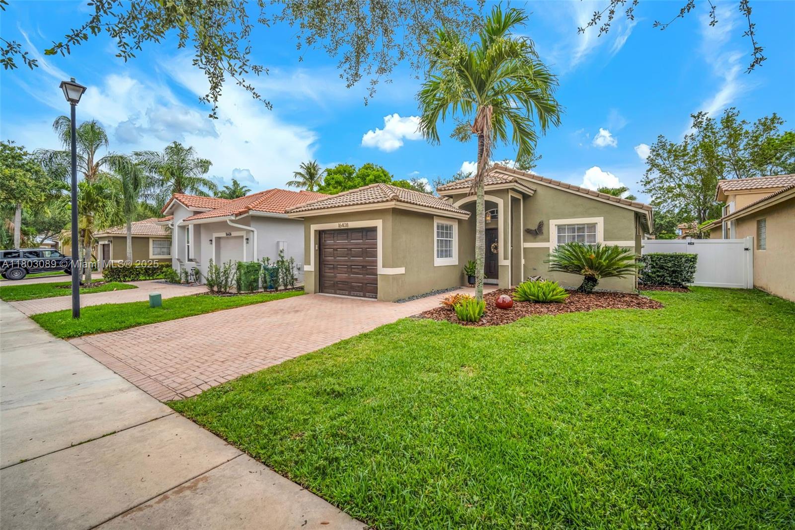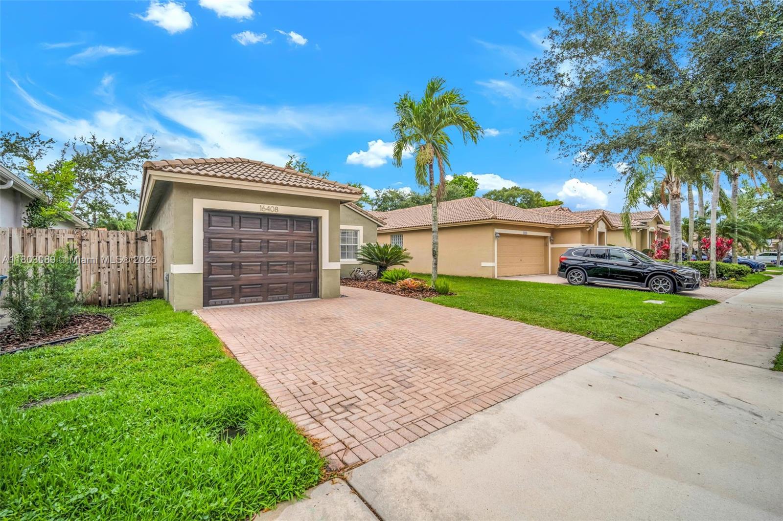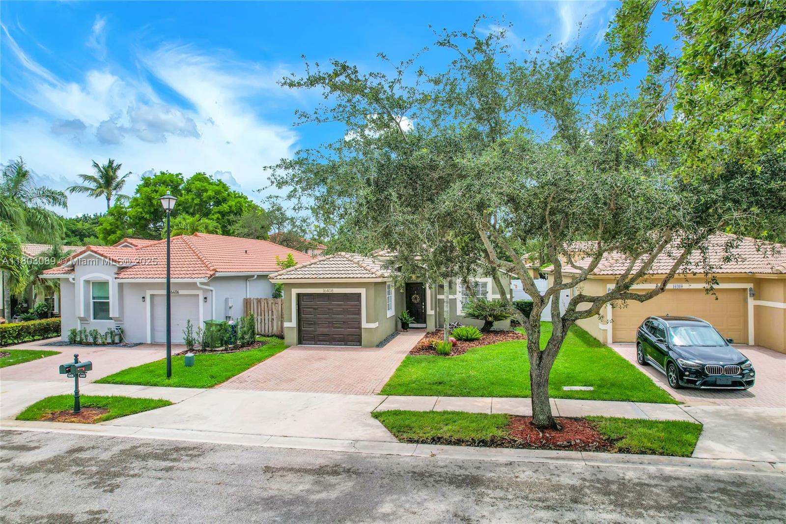 This beautifully maintained one-story home in Gated Community of Emerald Estate in Weston. offers three bedrooms and two bathrooms. Great kitchen features white cabinetry, stainless steel appliances, granite countertops. Enjoy the open-concept dining and living area with garden views, perfect for both relaxing and entertaining. Porcelain flooring throughout and boasts a private, fenced patio ideal for outdoor enjoyment. HOA: Pool, gym, maintenance of common areas, 24-hr ADT security, Wi-Fi, cable. Nearby you'll find top-rated A+ schools & Emerald Estate Park, offering playgrounds, basketball, and tennis courts. Near major highways and shopping centers. New pool & gym coming soon.
