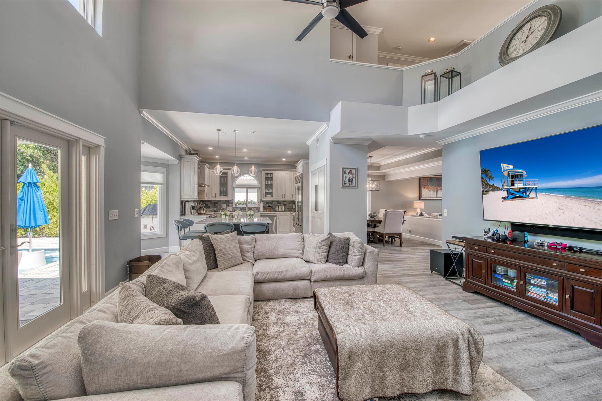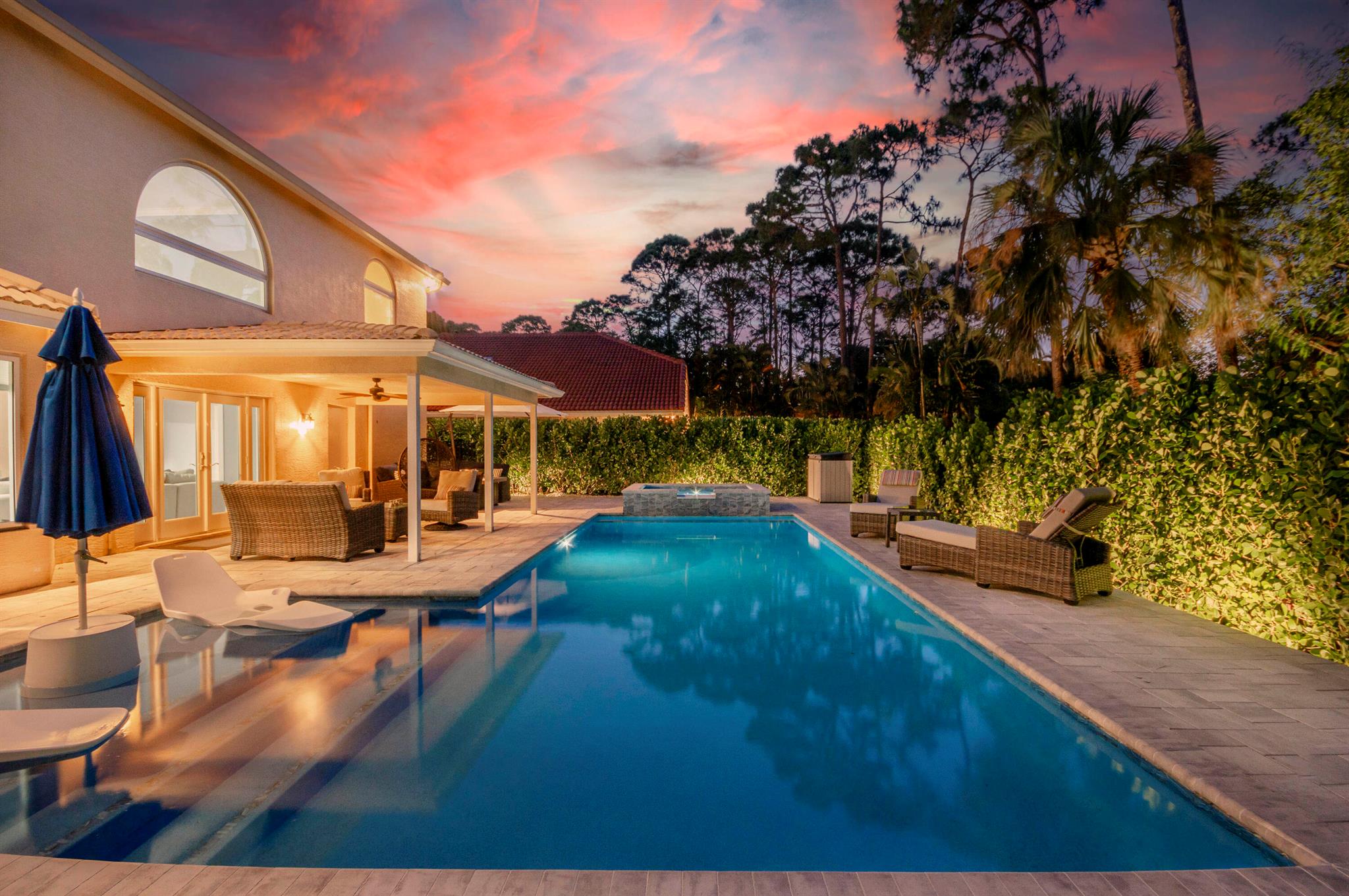 Ever wonder what over $400,000 in upgrades looks like? This beautifully updated 5 bedroom, 3 bath home that offers nearly 2,900 sq ft of living space has it all. Everything in this property has been updated, new custom pool, two newer AC's, whole house water filtration system, full impact glass windows and doors, top of the line kitchen appliances, not to mention exterior updates including the roof being replaced prior to closing, extended driveway, and custom exterior lighting. The expansive open floor plan features soaring ceilings, wood-look flooring, crown molding, and custom light fixtures throughout. The heart of the home is the gourmet kitchen, complete with natural gas, a large center island, sleek quartz countertops, white shaker cabinetry, and high-end Italian appliances,