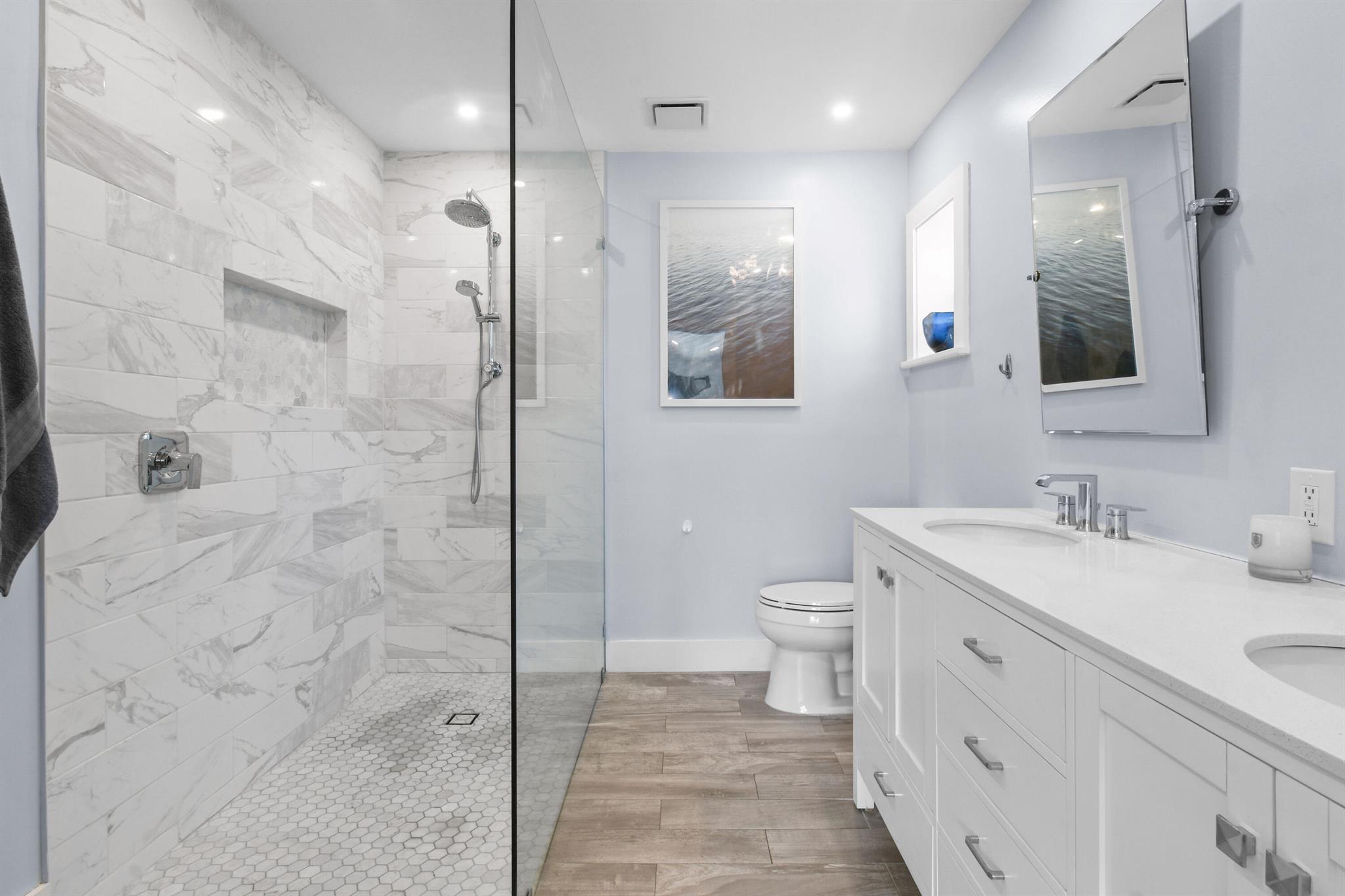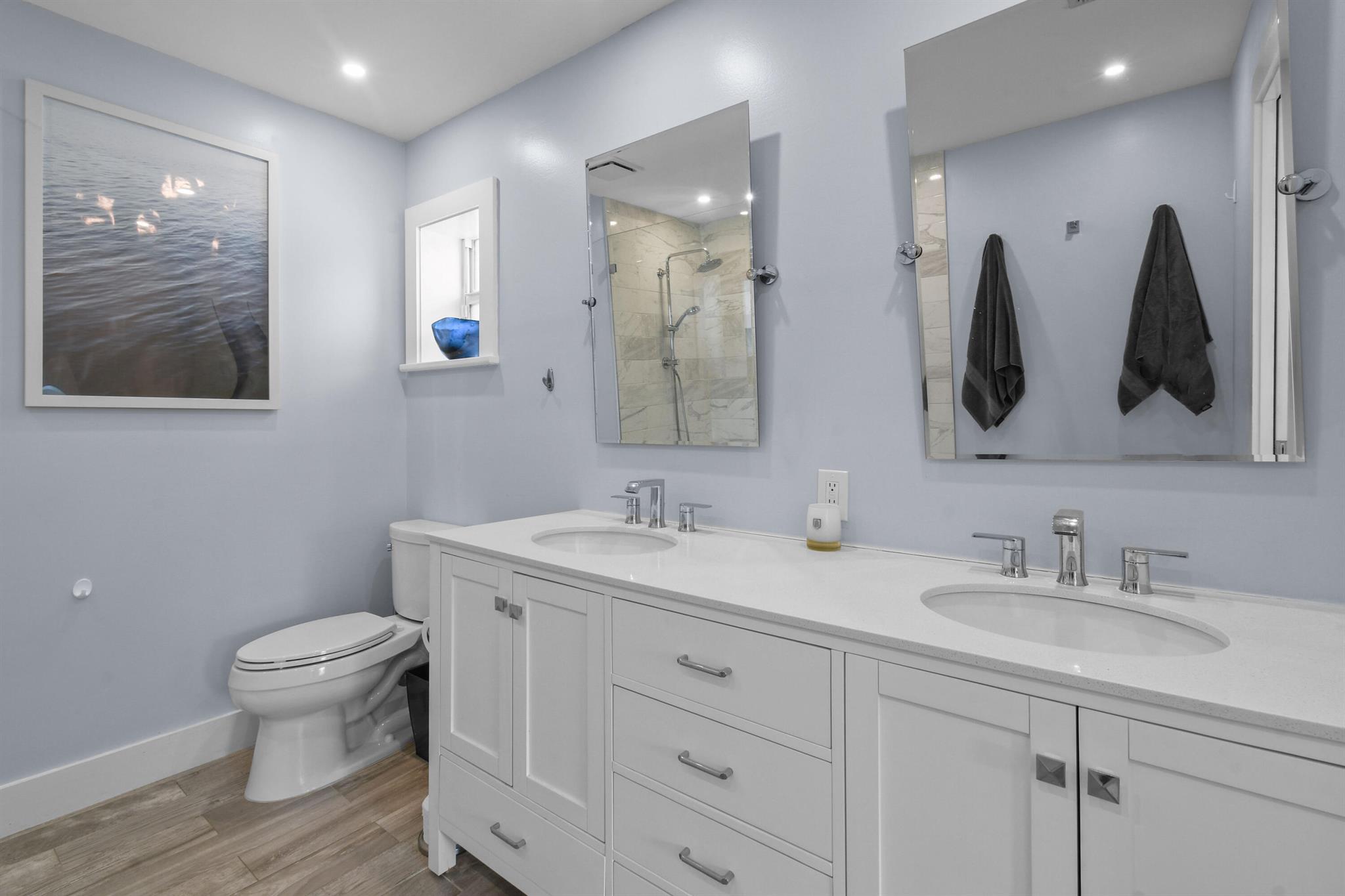 Beautifully updated home in an incredibly central location. This move in ready home features full impact glass, updated kitchen and primary bathroom, an inviting backyard that's primed to entertain you and your guests, and a driveway big enough to host them! (+2 car garage!) Abundant natural light throughout. Primary bedroom recently outfitted with a brand new bathroom and custom closet buildout. Elegant backyard features ample covered and uncovered patio space, pool, and pet friendly turf throughout. Garden Woods is a lovely non-HOA neighborhood that is at the absolute center of all that Palm Beach Gardens has to offer. Don't miss out!