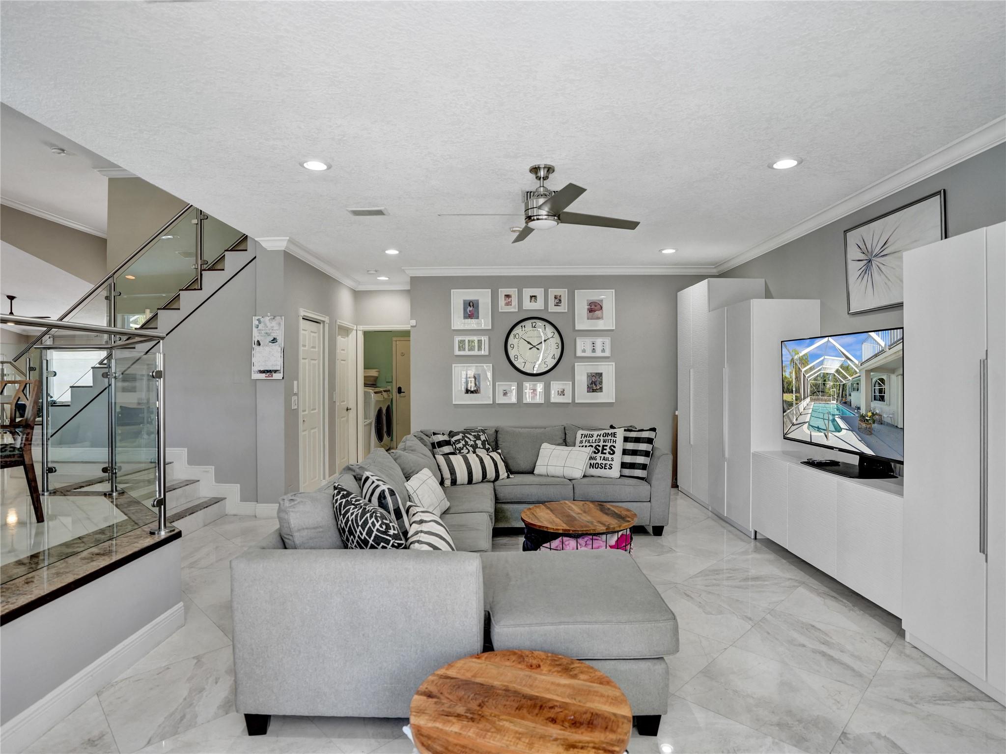Experience luxury living in this beautiful and exceptionally spacious 4-bedroom, 3-bathroom home in the prestigious gated community of Boca Isles. First floor boasts elegant marble flooring, a gourmet open kitchen with granite countertops, stainless steel appliances, and soaring vaulted ceilings. Enjoy a large family room and a formal dining area perfect for entertaining. A guest bedroom with a full bathroom. Upstairs boasts rich laminate flooring and a bright, expansive master suite featuring a private balcony. Newer AC and WH. Accordion shutters all around. 3 car garage, Screened-in pool, fruit trees. Boca Isles offers a 24/7 guarded gate and offers top-tier amenities including a heated pool, tennis courts, a playground, a clubhouse, and a fully equipped fitness center. A+ school zone!