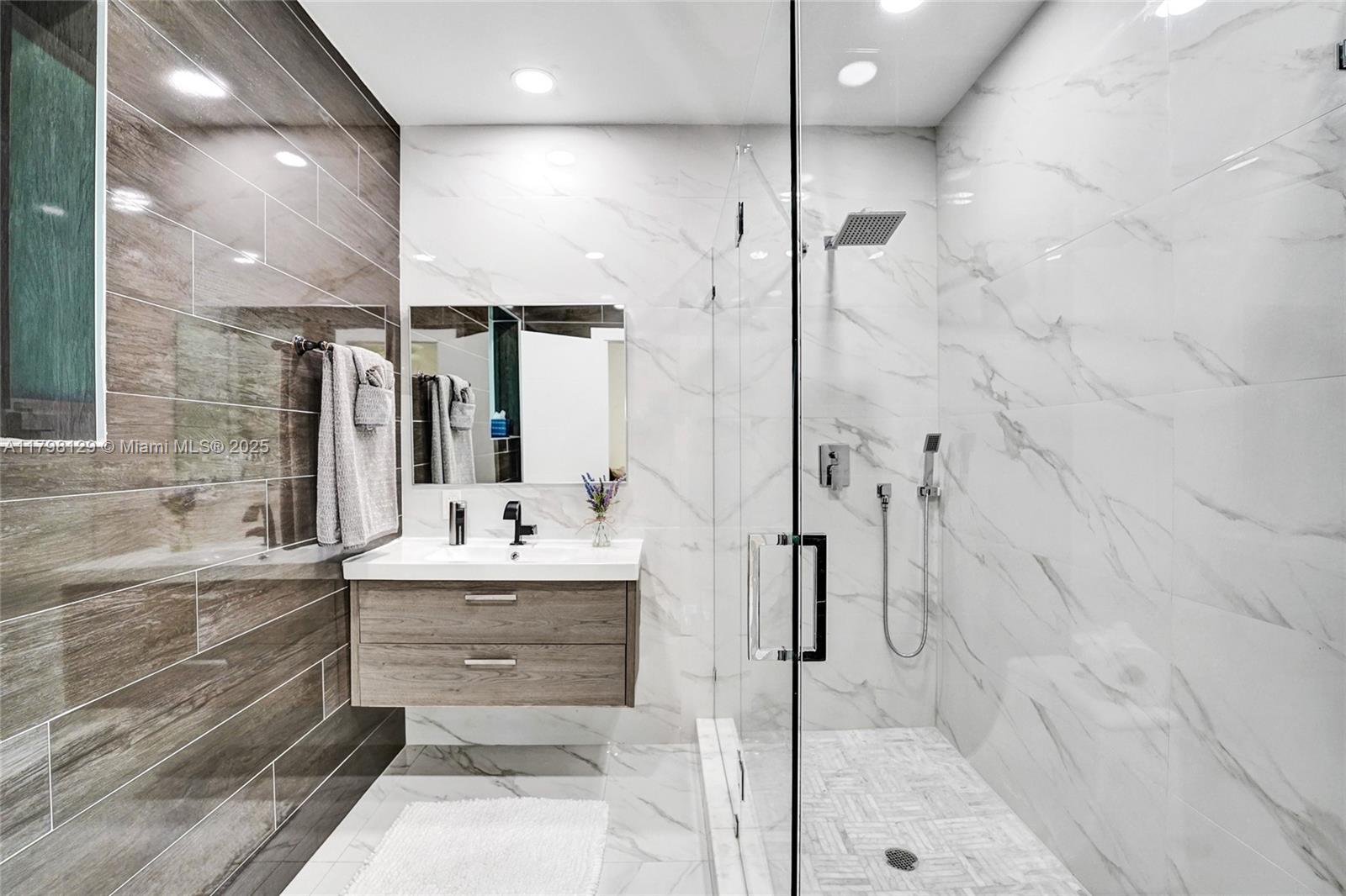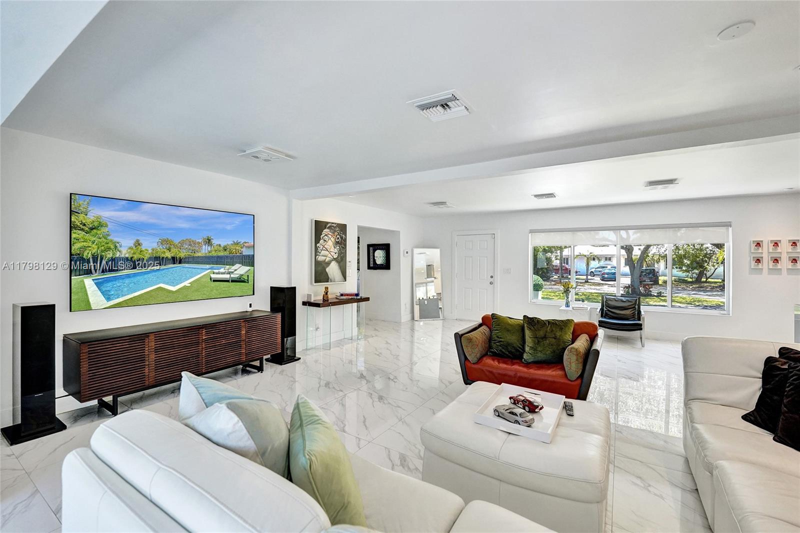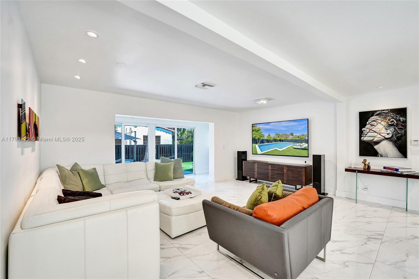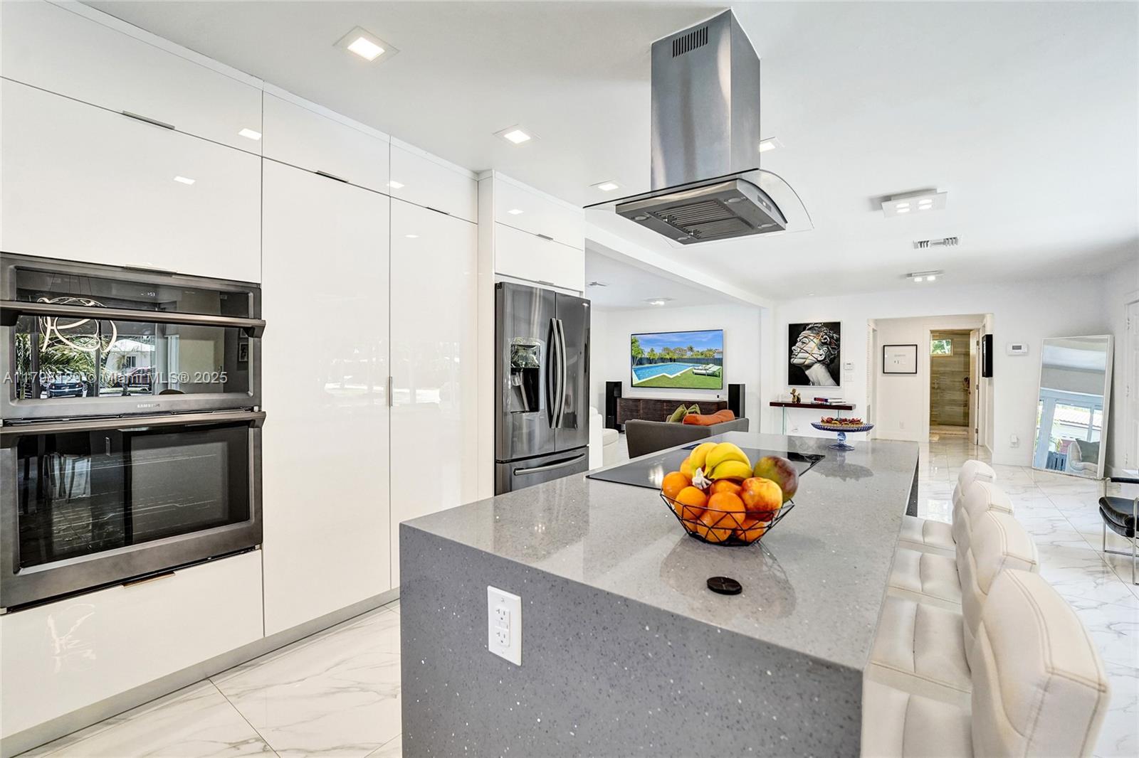 Welcome to this stunning modern property located on a rare double corner lot of approx. over 15,000 sq.ft. in the heart of Hollywood Lakes. This home is renovated from the plumbing, electric and interior. This home offers 4BD/3BA, updated kitchen and bathrooms, 32x32 porcelain tiles throughout, open concept split floor plan. A modern kitchen with quartz counters and Samsung appliances with large kitchen island to entertain. Expansive backyard with an oversized salt water pool/heated spa, outdoor shower and turf areas to enjoy,workout and entertain family & friends with delicious barbeques. Centrally located, a short walk to Downtown, Beach, South Lake, houses of worship and parks. This home delivers modern elegance & luxury.