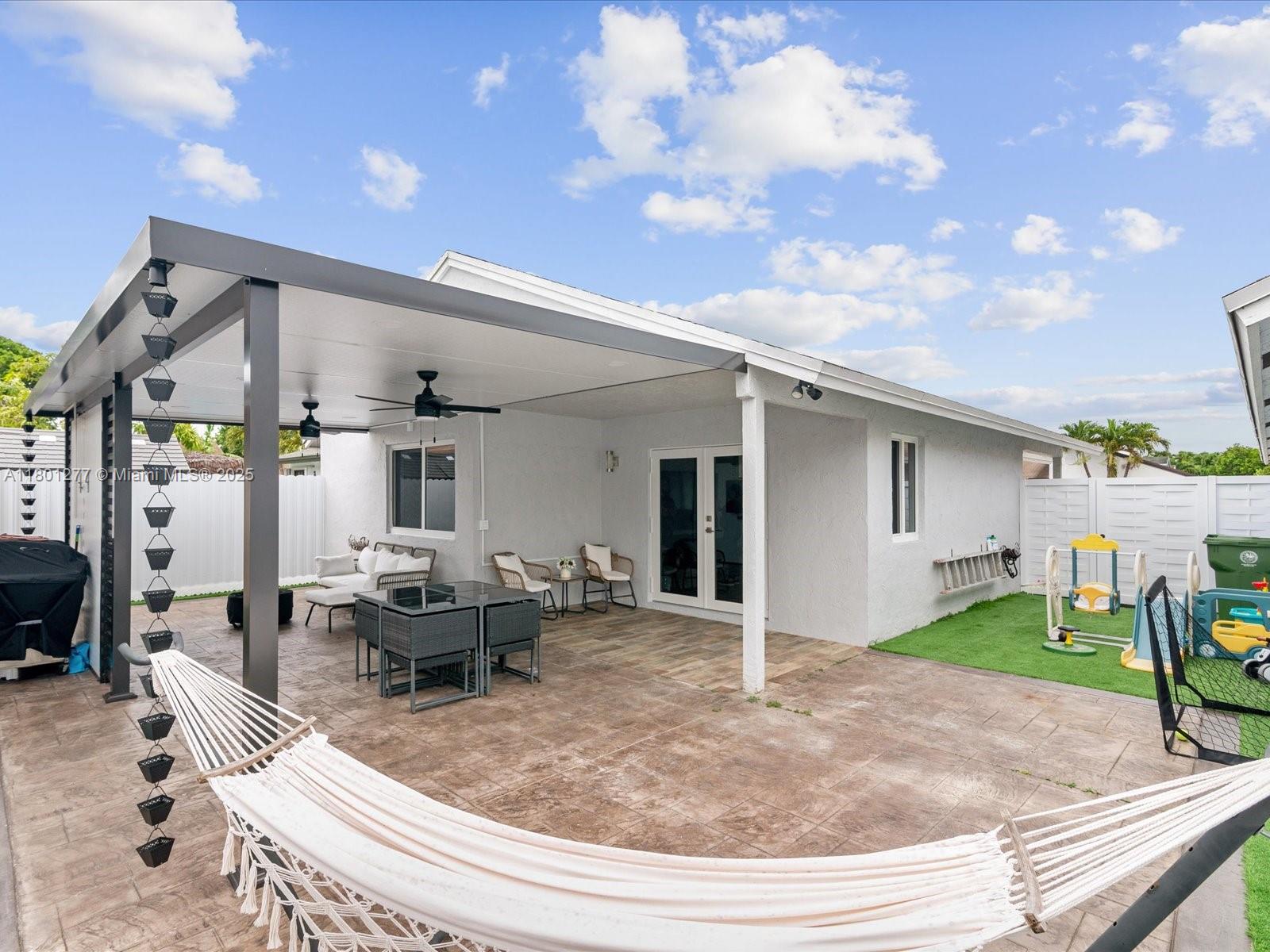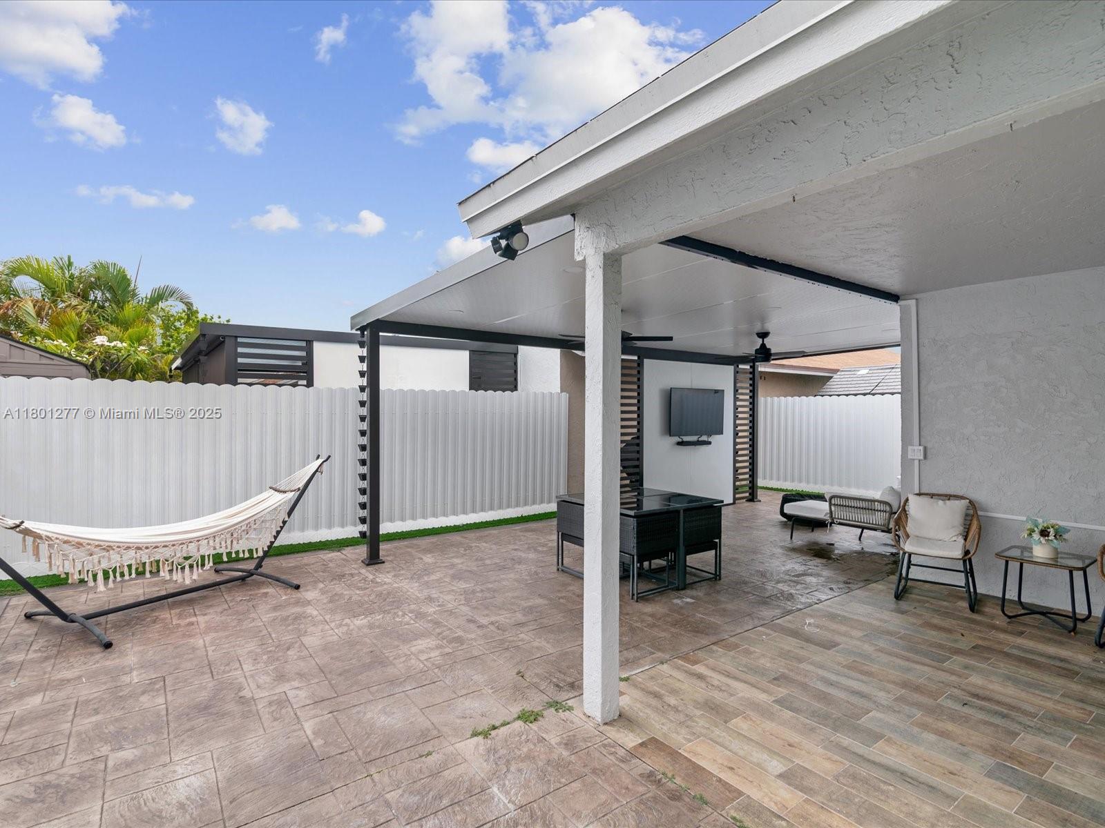 WELCOME TO THIS BEAUTIFULLY FULLY RENOVATED 2-BEDROOM, 2-BATHROOM SINGLE-FAMILY HOME! ENJOY PEACE OF MIND WITH IMPACT WINDOWS AND DOORS THROUGHOUT. A MODERN KITCHEN WITH QUARTZ COUNTERTOPS, STAINLESS STEEL APPLIANCES, AND AN OPEN LAYOUT PERFECT FOR ENTERTAINING. BOTH BATHROOMS HAVE BEEN COMPLETELY UPDATED INCLUDING FRAMELESS GLASS SHOWERS AND STYLISH FINISHES. THE HOME FEATURES WOOD-LOOK TILE FLOOR THROUGHOUT. THE SPACIOUS BACKYARD OFFERS PLENTY OF ROOM TO RELAX OR HOST GATHERINGS AND INCLUDES AN EXTENDED COVERED PATIO. THIS MOVE-IN READY HOME COMBINES COMFORT, STYLE, AND FUNCTIONALITY!
