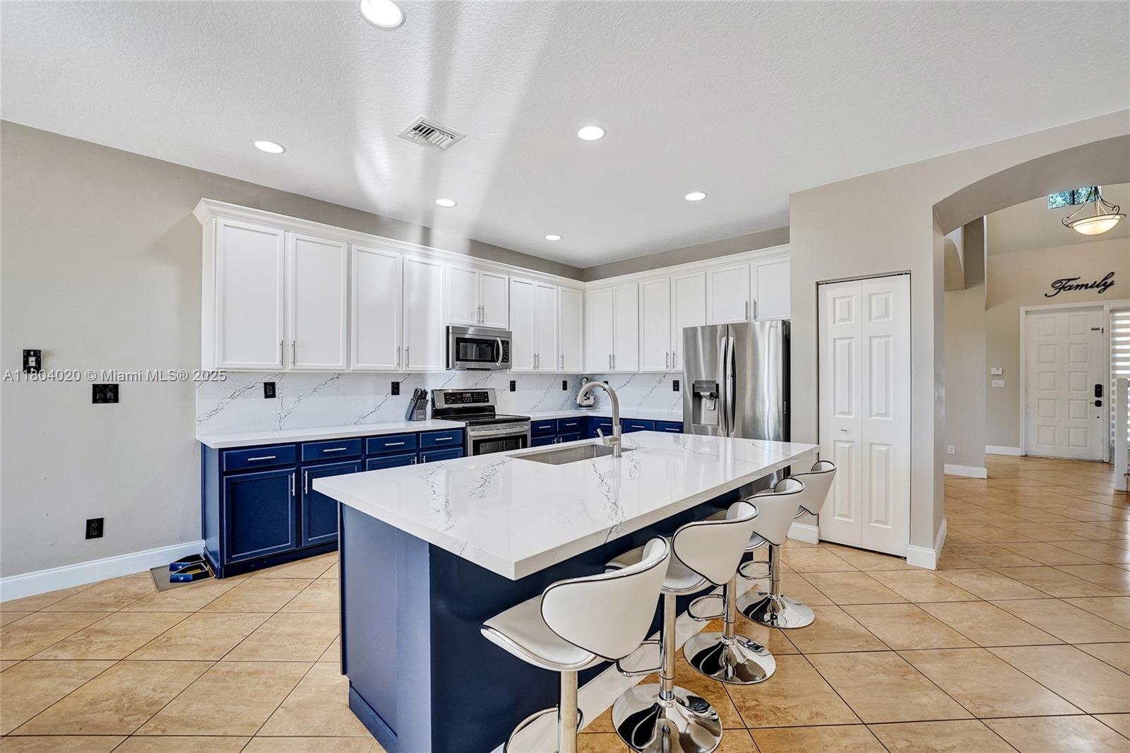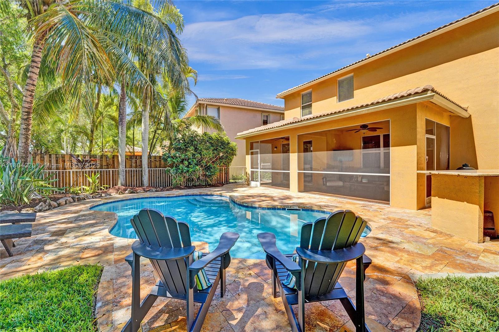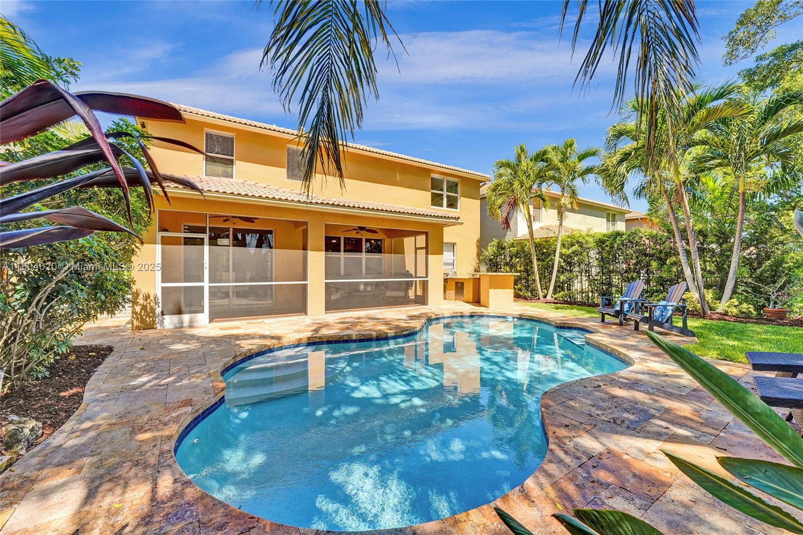 Drastic Price Drop! Motivated Seller—Ready to Make a Deal! Exciting & spacious 5-bed, 4-bath home with a popular layout! Includes a 1st-floor guest suite + full bath, upstairs loft (great for study/play), & laundry room. Enjoy tile floors, bamboo stairs, a large eat-in kitchen with 42" cabinets, new quartz counters & tons of storage. Tropical backyard oasis with a screened lanai, ceiling fans, heated pool, outdoor kitchen (gas grill + new fridge), sealed travertine deck, new lighting, and fenced yard. Additional features: smart irrigation, garage racks, new blinds & lighting. HOA includes gated access, fiber internet, cable, clubhouse, gym, 2 pools, sport courts & bus to Cypress Bay High & Falcon Cove Middle Schools. ** Quick occupancy, owners relocating and ready to move**