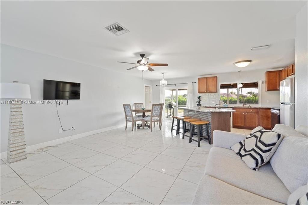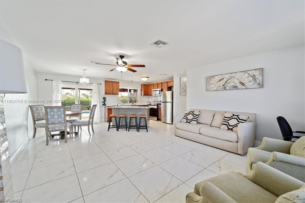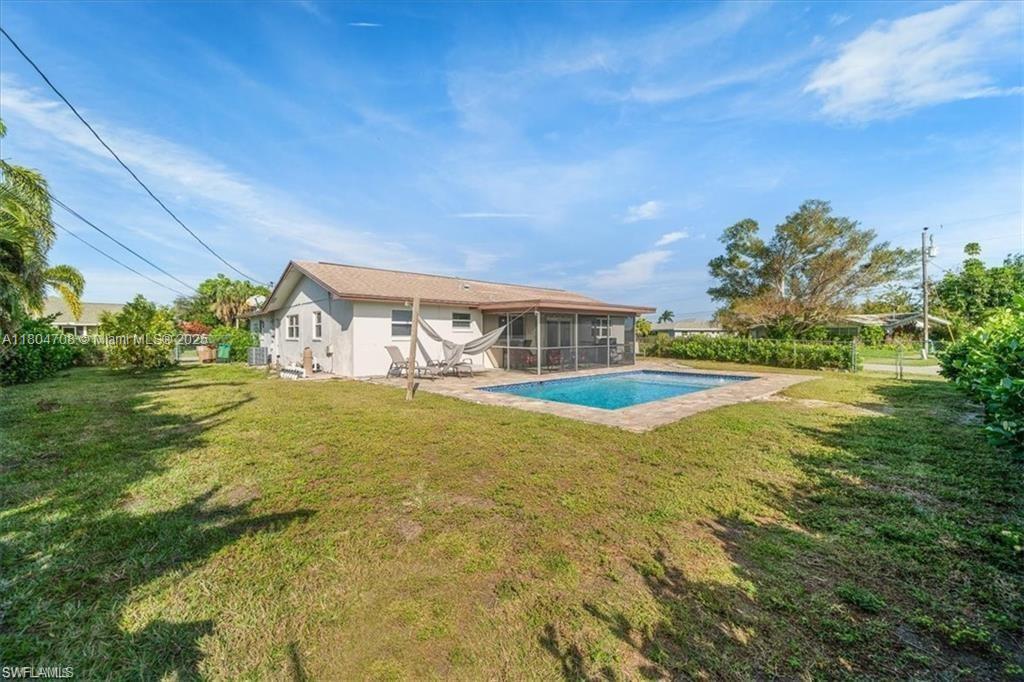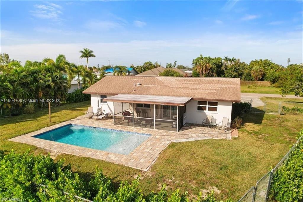 LOCATION,LOCATION, LOCATION OVERSIZED CORNER LOT !!!Charming pool home in a highly sought after area of Southeast Cape Coral. Boasting 3 large bedrooms, 2 updated bathrooms, 2 car garage and tile throughout, impact windows and slider, centrally located. Access to Downtown Cape Coral where you have shopping, restaurants and plenty of entertainment. Fully fenced oversized corner lot with privacy plants, fruit trees mango, avocado, bananas, coconut trees!! Assessments Paid what more in a home could you ask for! Call today for your private showing!