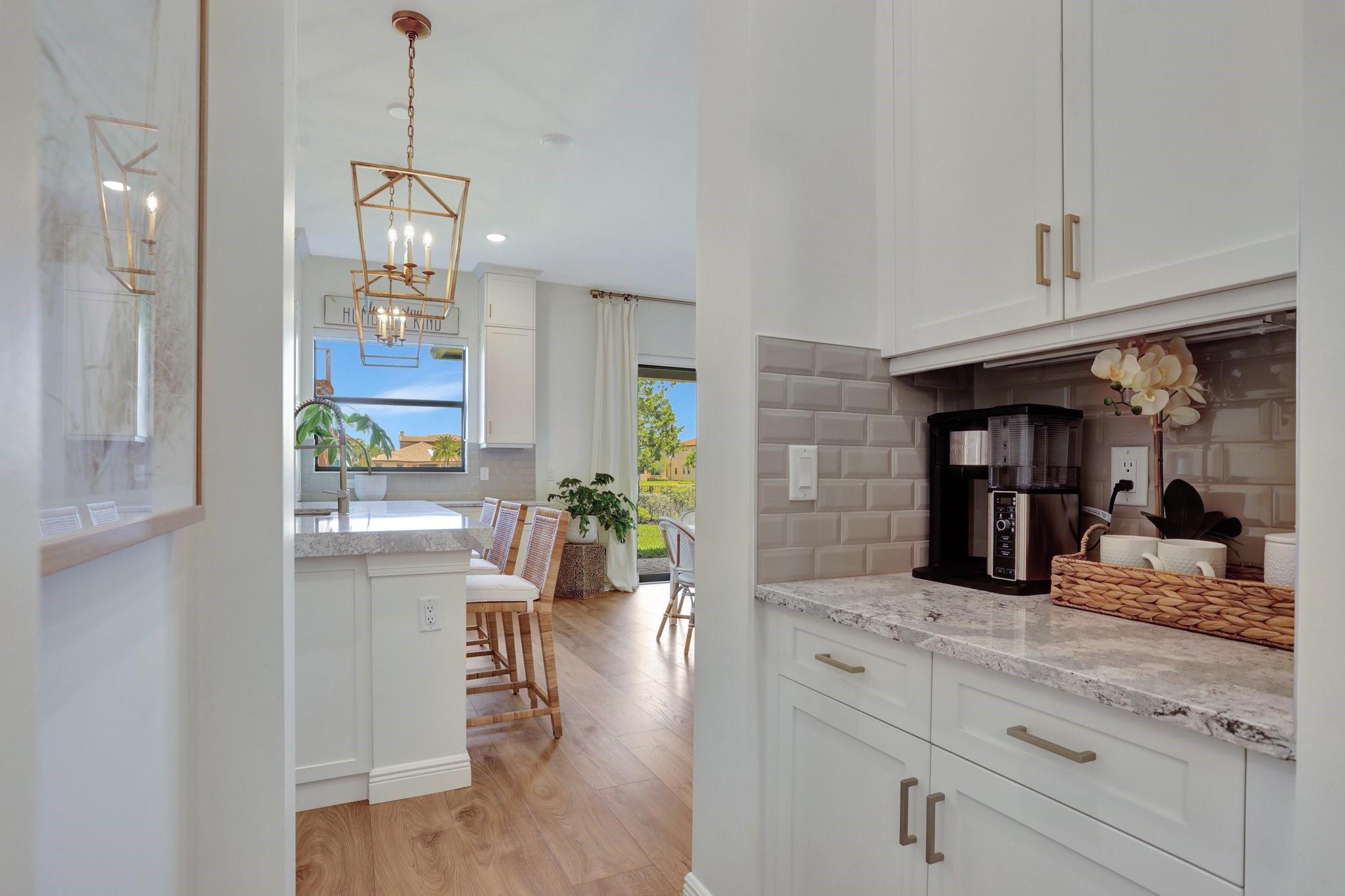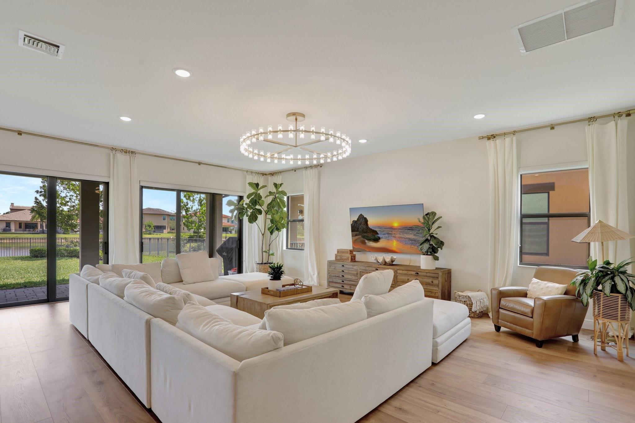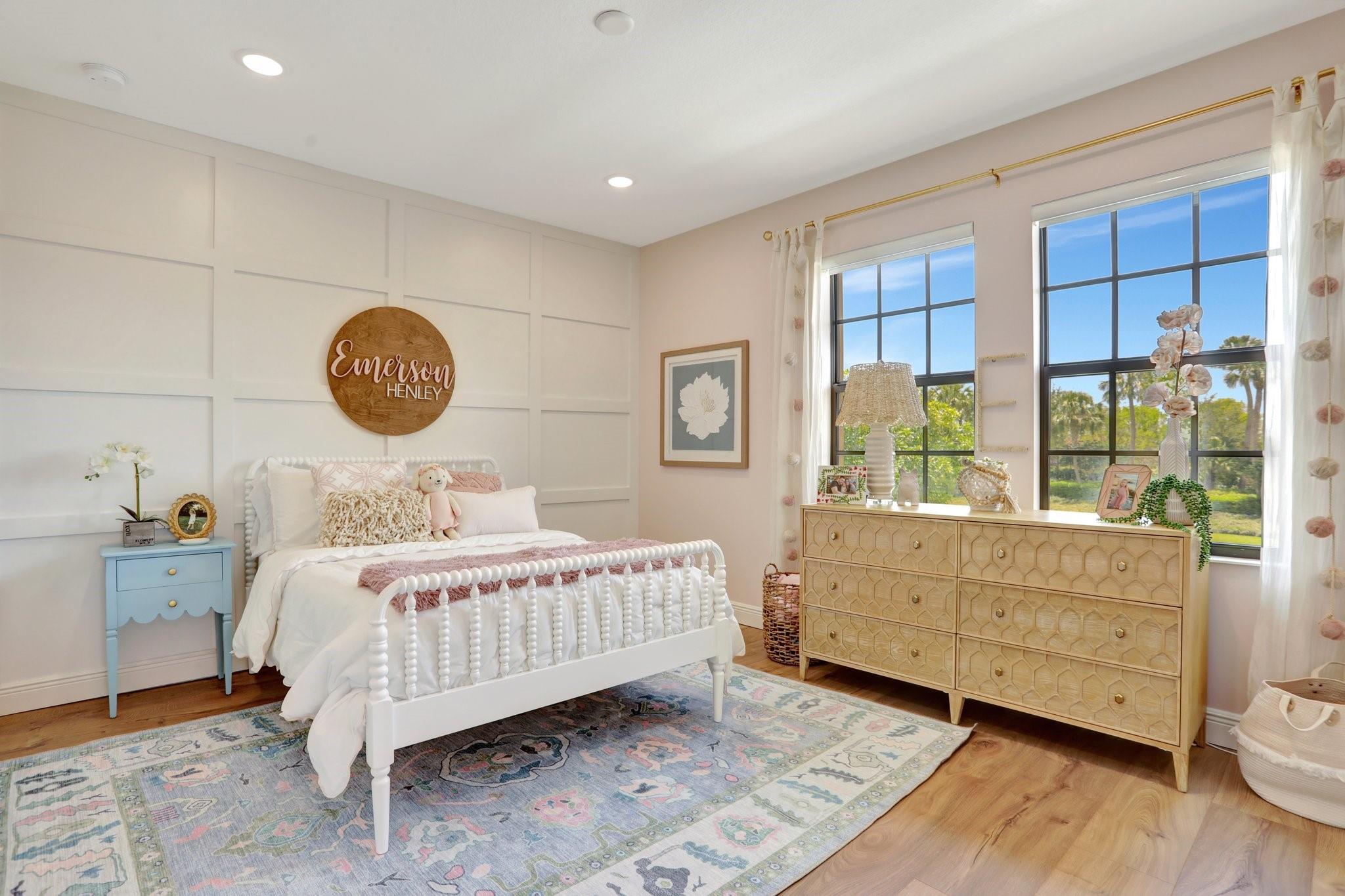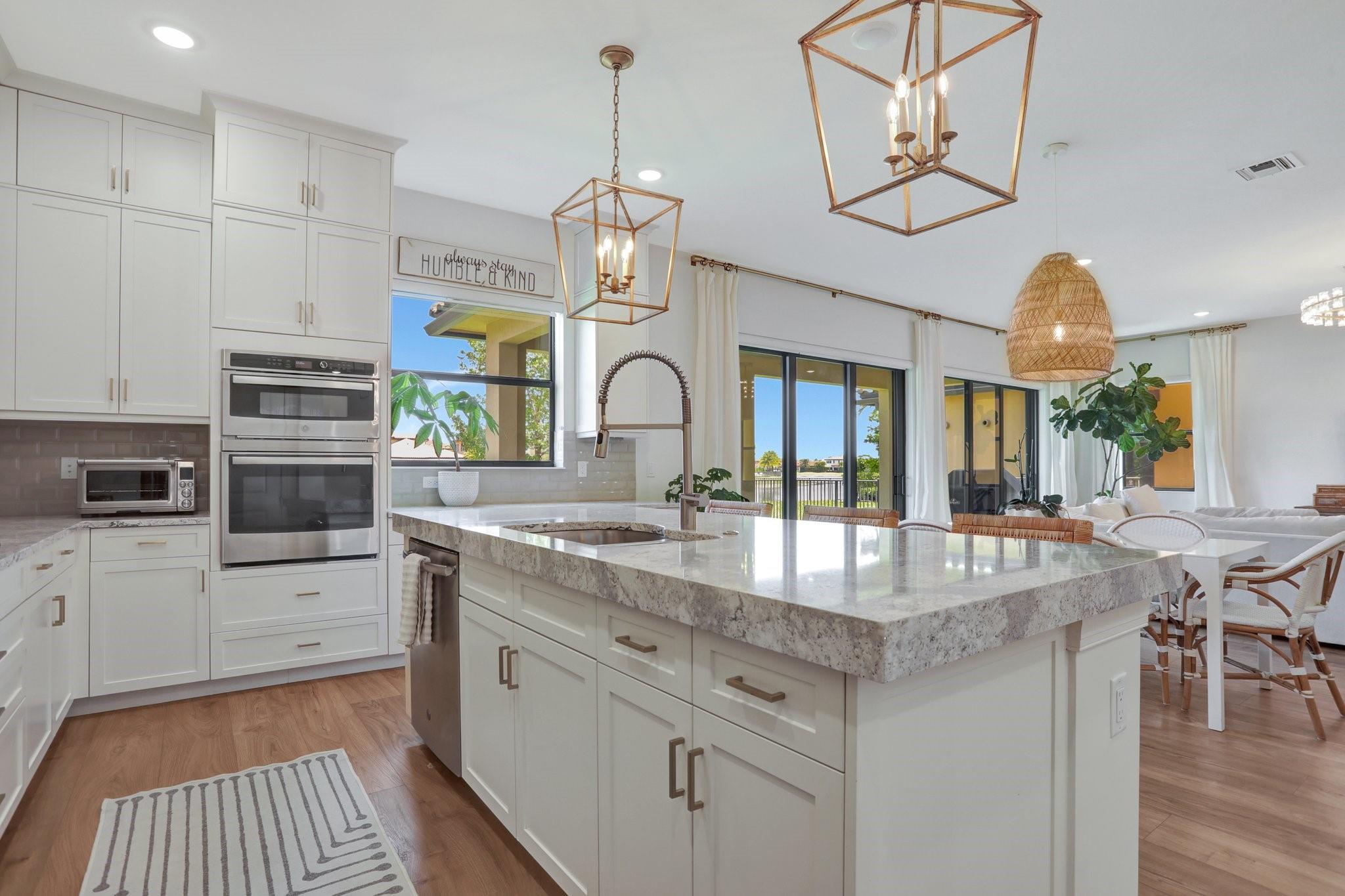 Stunning lakefront home with high-end waterproof vinyl flooring that flows throughout, enhanced by a beautiful wood staircase and elegant wainscoting. The upgraded kitchen features added upper cabinets, a stylish vent hood, and a double-thick stone countertop on the island, perfect for culinary enthusiasts. This home offers thoughtful design with custom walk-in closets, a convenient storage room under the staircase, and a versatile room downstairs currently serving as a home office. The layout includes a spacious loft, a generous great room, a formal dining area, a butler's pantry, and a mud room. Additional highlights include epoxy garage floors, an EV car charger, and a fully fenced lot with unobstructed lake views and a large grassy area across the street for children to play.