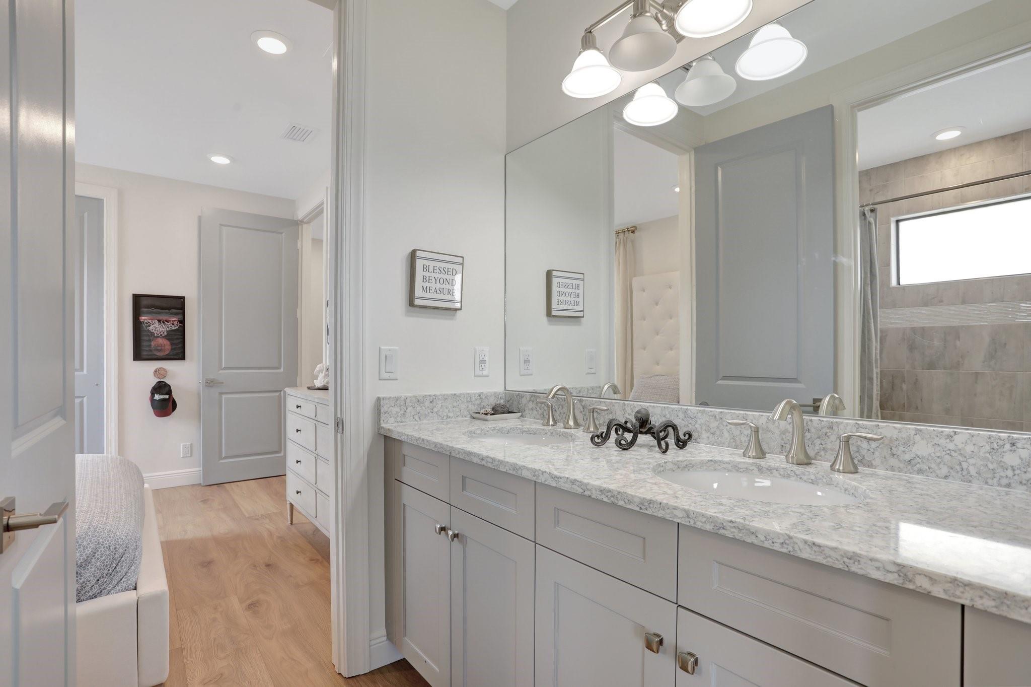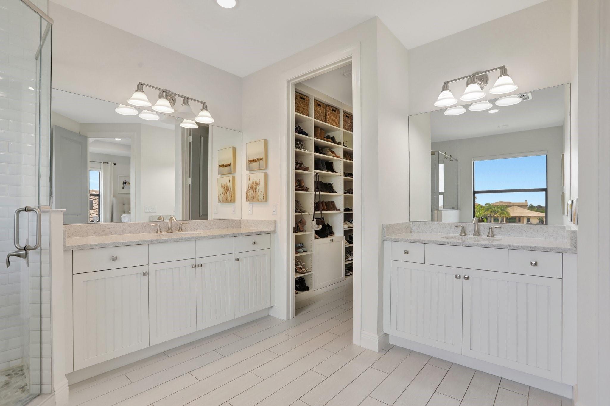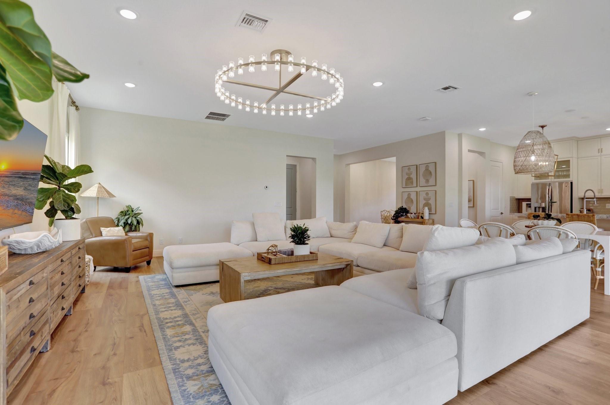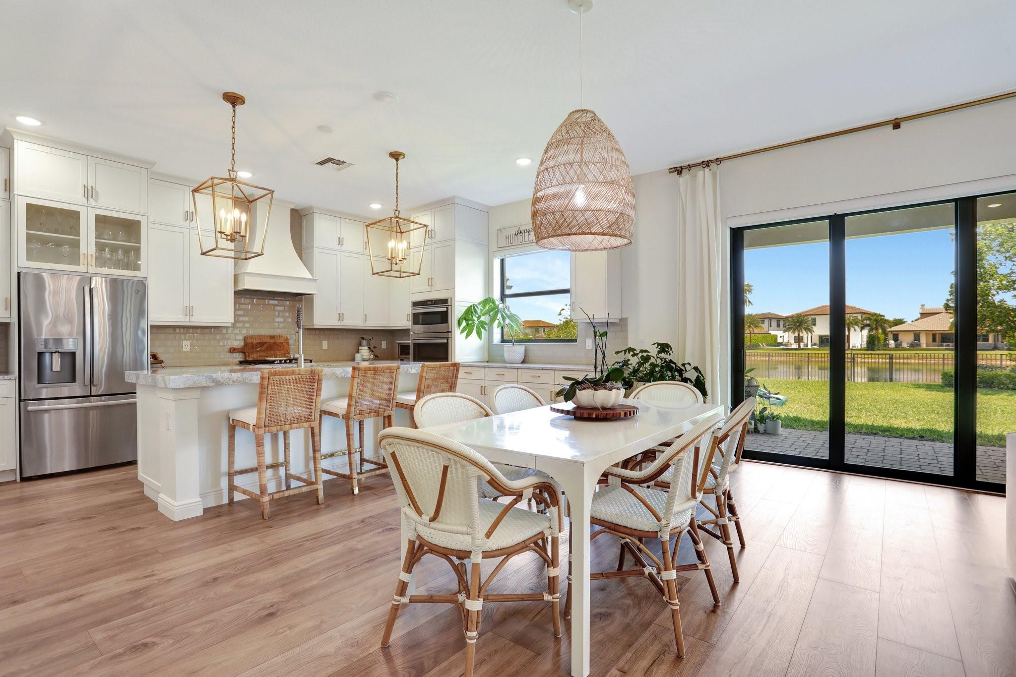 Stunning lakefront home with high-end waterproof vinyl flooring that flows throughout, enhanced by a beautiful wood staircase and elegant wainscoting. The upgraded kitchen features added upper cabinets, a stylish vent hood, and a double-thick stone countertop on the island, perfect for culinary enthusiasts. This home offers thoughtful design with custom walk-in closets, a convenient storage room under the staircase, and a versatile room downstairs currently serving as a home office. The layout includes a spacious loft, a generous great room, a formal dining area, a butler's pantry, and a mud room. Additional highlights include epoxy garage floors, an EV car charger, and a fully fenced lot with unobstructed lake views and a large grassy area across the street for children to play.