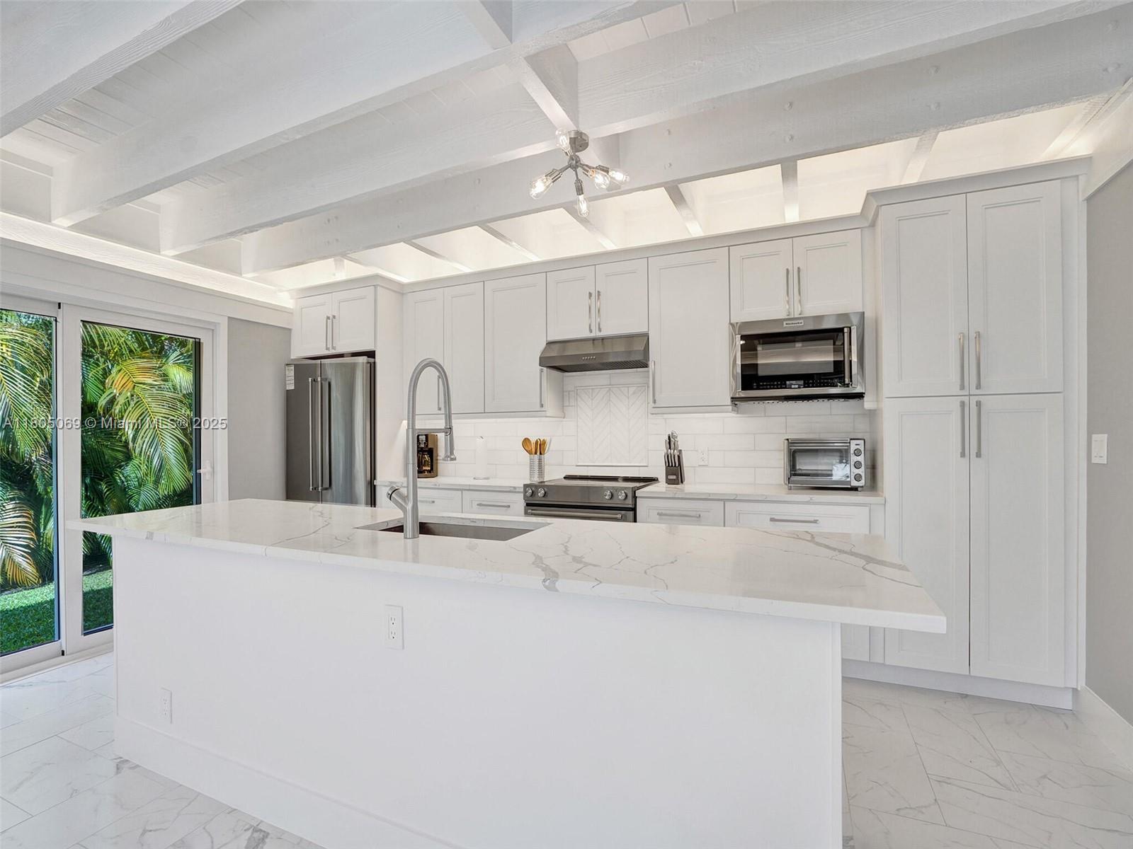 Location location location! Just steps from Wilton Drive. Beautifully renovated throughout with refinished Terrazzo floors and stylish herringbone tile. This home features a brand new roof installed in March 2025, impact windows and doors, recessed lighting, and a tankless water heater. The custom kitchen includes stainless steel appliances, a designer lighting package, and a butler’s pantry with a wine cooler. All bathrooms are updated, with custom bath fans featuring Bluetooth and night lighting. Two-inch wood-style blinds and custom closet organization systems are installed in every closet, offering exceptional storage. Enjoy a wonderful open floor plan, a generous rear patio, a large storage shed, and a fully fenced backyard perfect for private outdoor entertaining.