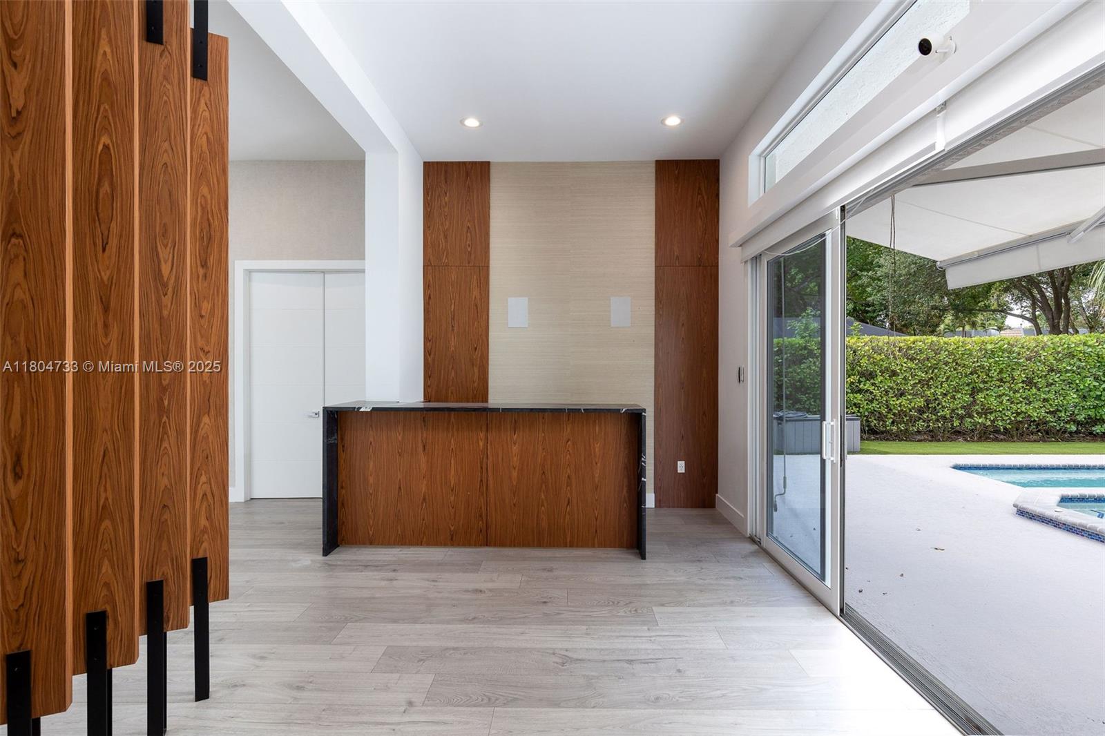 Experience luxury living in this modern 4-bedroom, 4-bath home in Palm Aire. A Sunlit open-concept living area flows into a gourmet kitchen equipped with quartz countertops and a Wolf professional range, perfect for the avid home chef. Entertain with ease in the separate bar and family room, offering ample space for gatherings, and step outside to your private garden oasis featuring a renovated pool area and pergola—ideal for relaxing or hosting outdoor get-togethers year-round. This home is equipped with impact windows and doors for peace of mind, two AC units with smart thermostats, and electric blinds to keep you comfortable in all seasons. Set on an expansive 12,144 sq ft lot, this residence combines luxury and lifestyle in the heart of the desirable Palm Aire community.