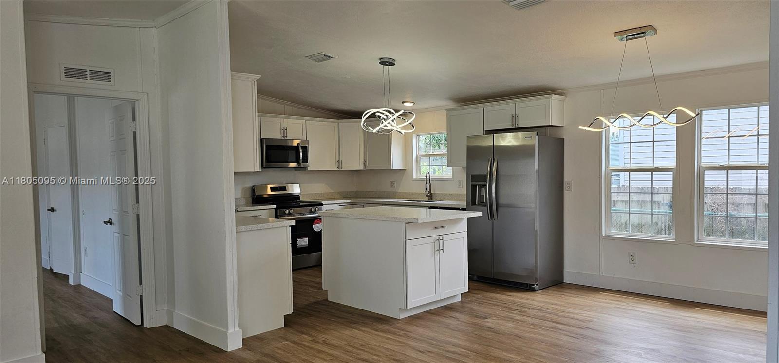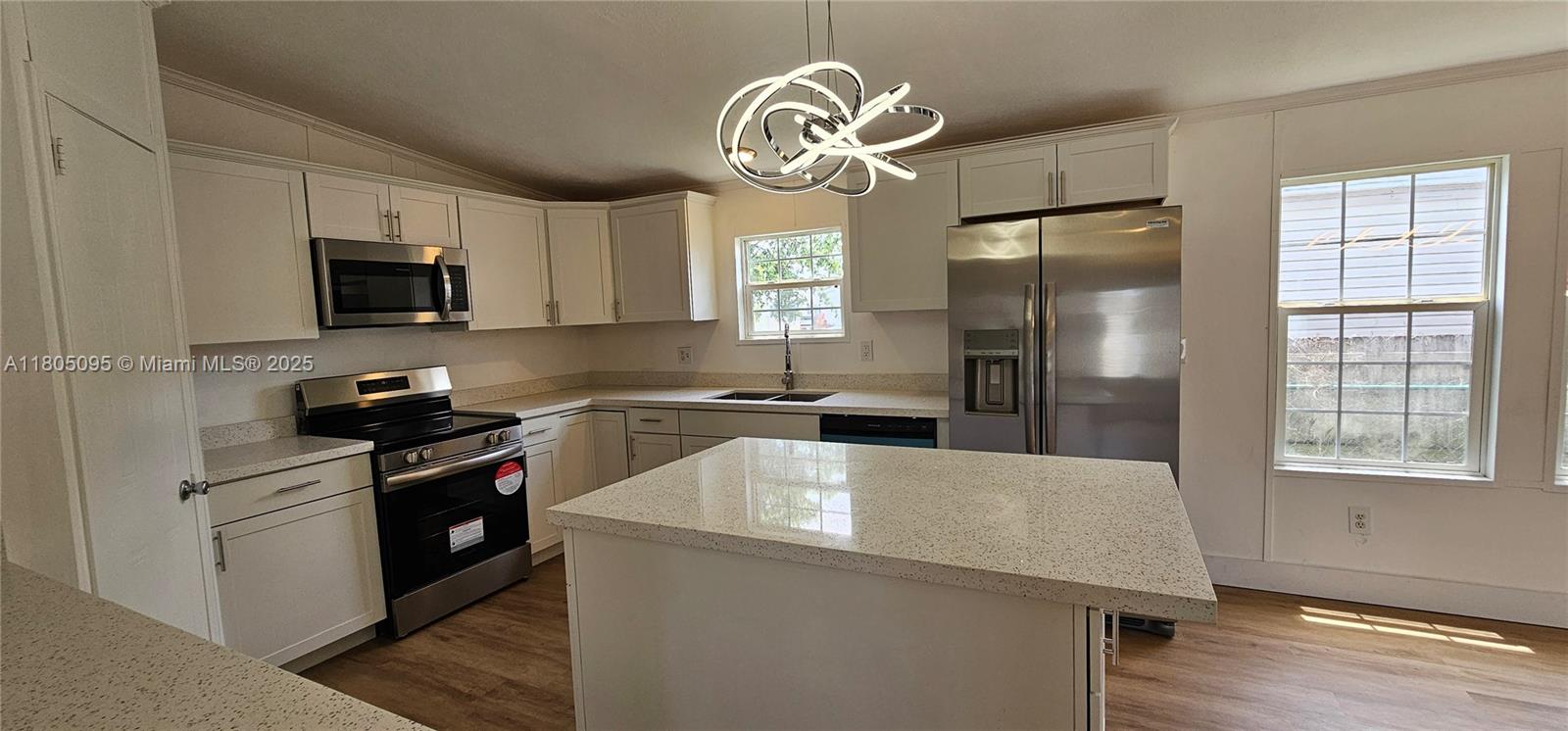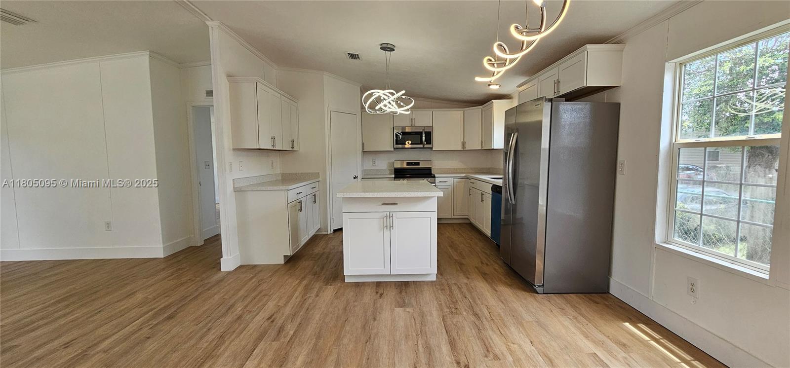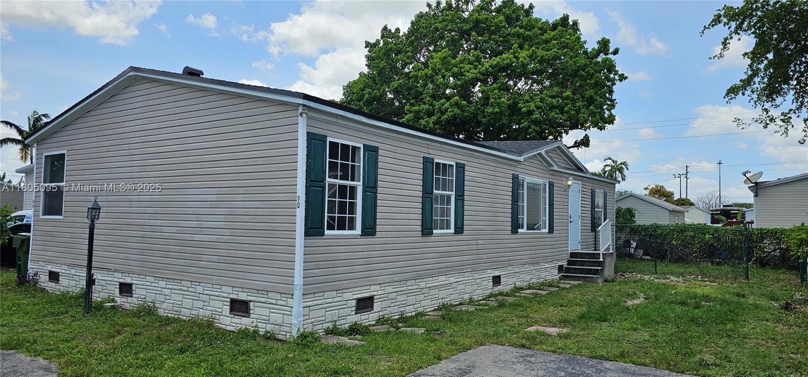 Beautifully renovated and painted home Lot # 90 Located in the Cocowalk Estates gated community. Residents own the land and pay low association fees and enjoy a well maintained, quiet community with gated access, club house and nice swimming pool. The home is 1456 Sq Ft and has 3 huge bedrooms, 2 beautiful bathrooms, New 2025 Roof, New vinyl flooring, New kitchen with a walk in pantry, quartz counter tops, cooking island, Stainless Steel appliances, washer and dryer and a large backyard shed all included. The home is spacious and the updates are gorgeous. This is a real treat for an affordable home. Accepting FHA offers after June 16th 2025. Call listing agent for financing and buyer incentives.