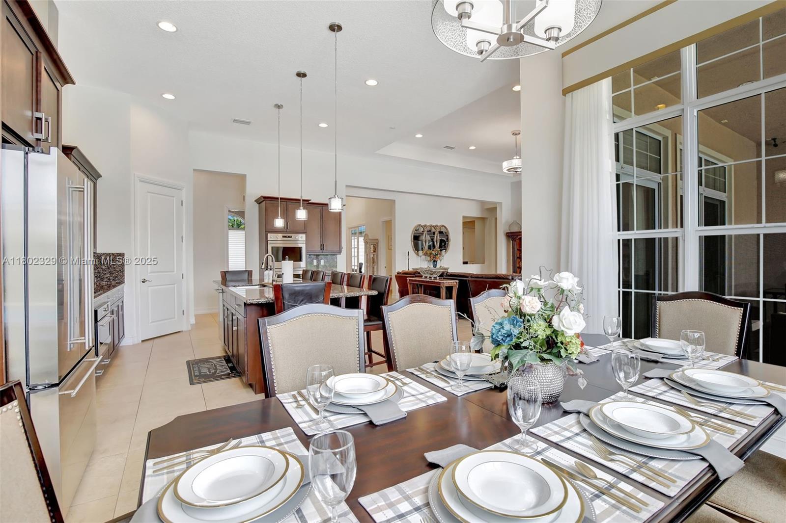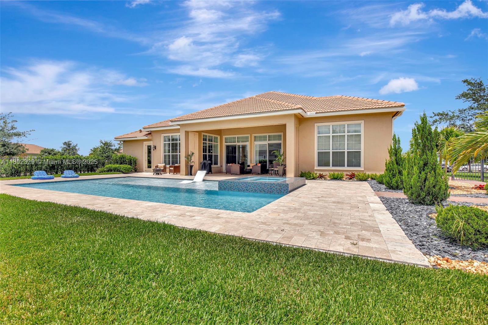 Luxurious living awaits in this magnificent resort-style home-4 beds, 3.5 baths, on just over a half-acre. There's room for the whole family! Your oasis awaits-escape outdoors to the gorgeous heated pool & spa, all surrounded by travertine-privately fenced for entertaining & play. Master suite offers custom closet cabinetry, private living and beautiful master bath. The center of the home is expansive, giving space to spread out while at the same time providing open, connected space to be together. The kitchen features a spacious island with bar seating, ample cabinets, granite countertops, and top-tier appliances. Impact doors & windows throughout. Sterling Ranch combines luxury & convenience with prime location near major highways & attractions. Welcome to your South Florida sanctuary!