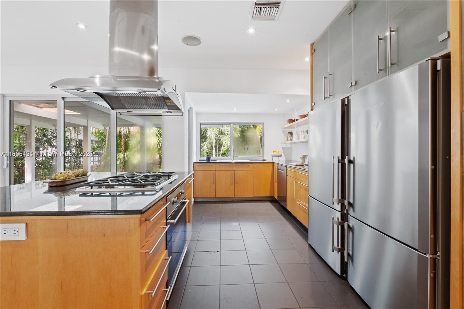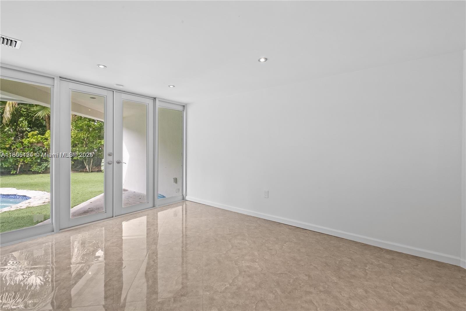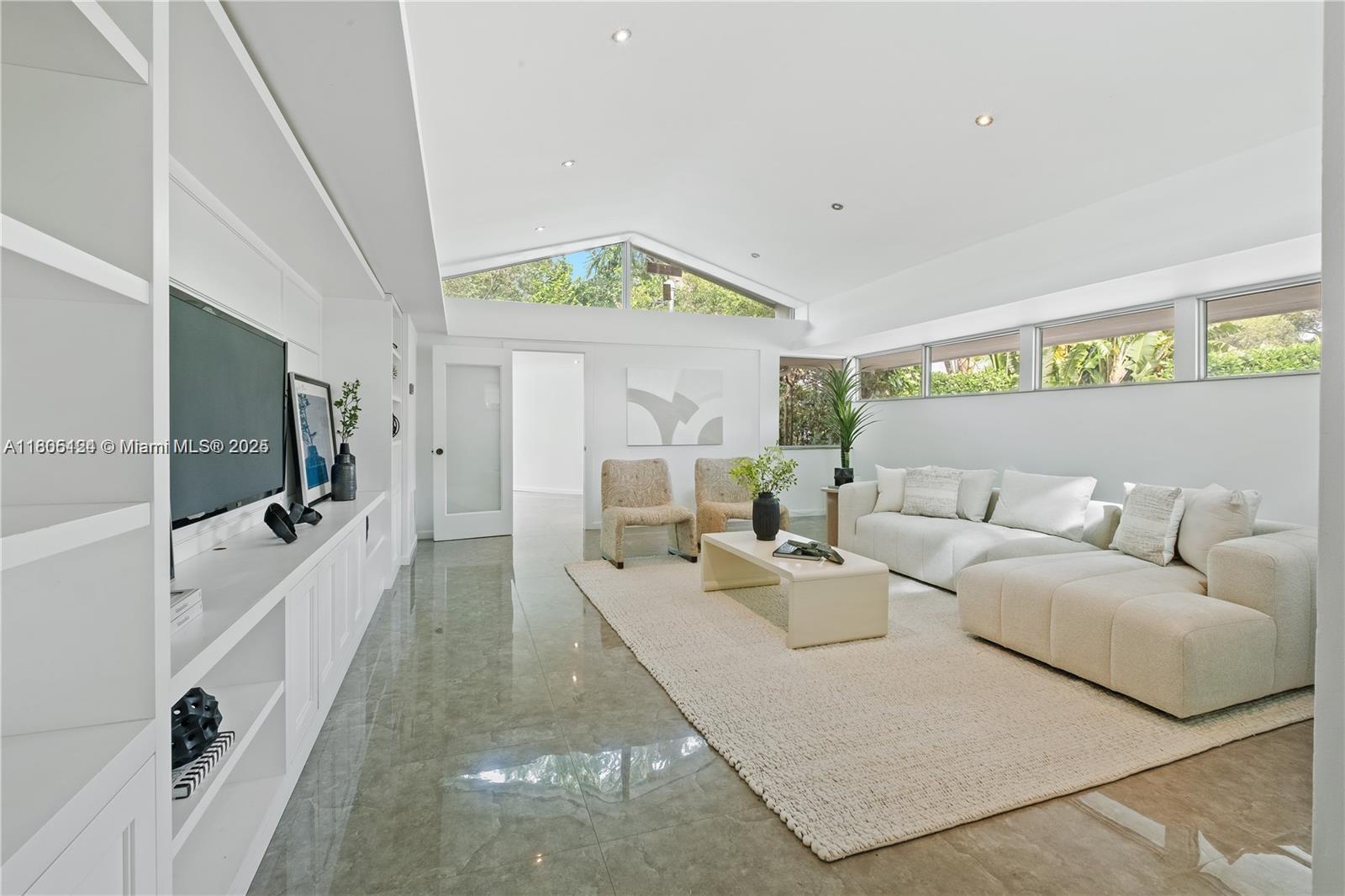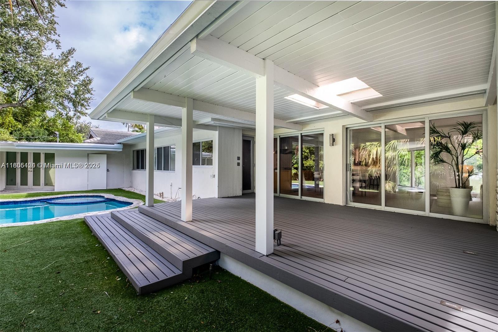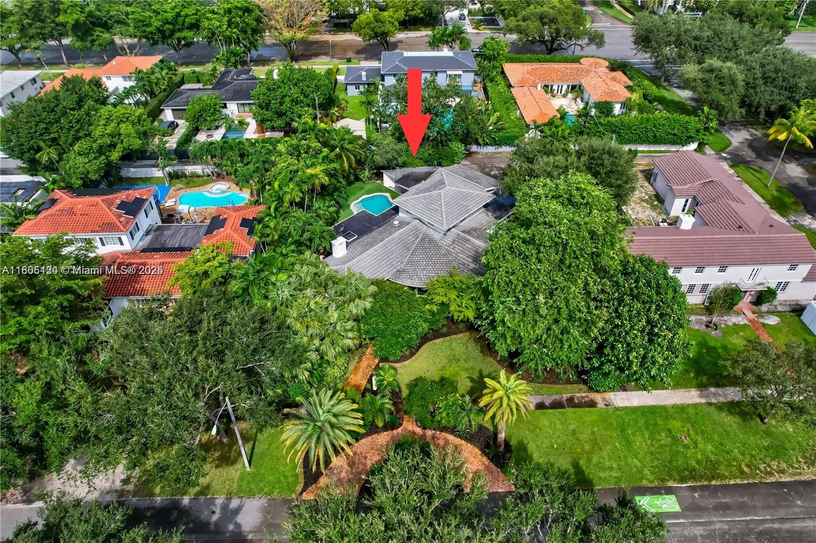 4 bedroom, 3 full bath Miami Shores home. This home is architecturally significant, not your average ranch or box-style home. Fenced yard has a covered patio, lush landscaping, and a private pool area, great for entertaining. Hurricane impact windows allow the outside in with lush green views from every window. Big open living spaces, the kitchen is open to the living room with a fireplace. Giant family/media room, great for a big screen or projector with surround sound. The primary bedroom has a spa-like bath and a walk-in closet the size of the average bedroom. There is one bedroom upstairs that has a huge closet and ensuite bath. Newer roof, updated plumbing and electric, 3 zones of a/c, and a natural gas hookup. Parking in the front and back. Inside laundry with laundry tub.