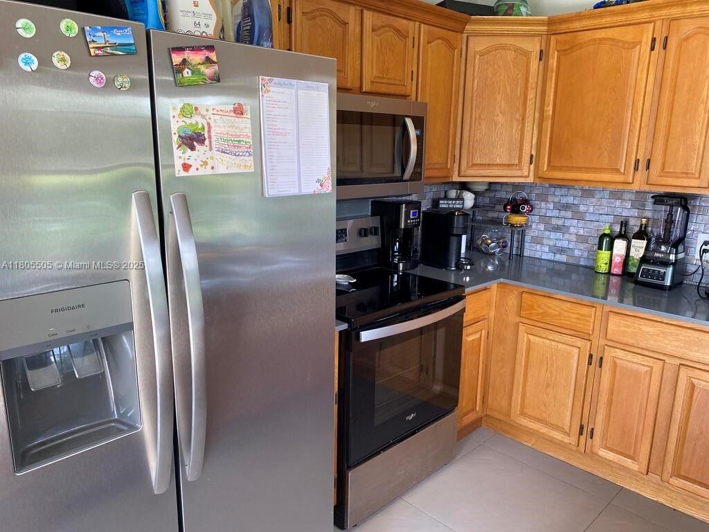 Welcome to this beautifully maintained 3-bedroom, 2 full bathroom lakefront home in the heart of Weston, FL. This home offers a spacious layout with modern finishes (including 26-inch tiles throughout), and lake views from most rooms. The kitchen features updated appliances (2024) with in-unit washer/dryer and ample storage. Step into the backyard and enjoy the beautiful lake and lush foliage from the comfort of a tiled patio and partially covered porch. You're steps from Peace Mound Park, A-rated Weston schools, Town Center, shopping and dining. The HOA fee is among the lowest in Broward County.