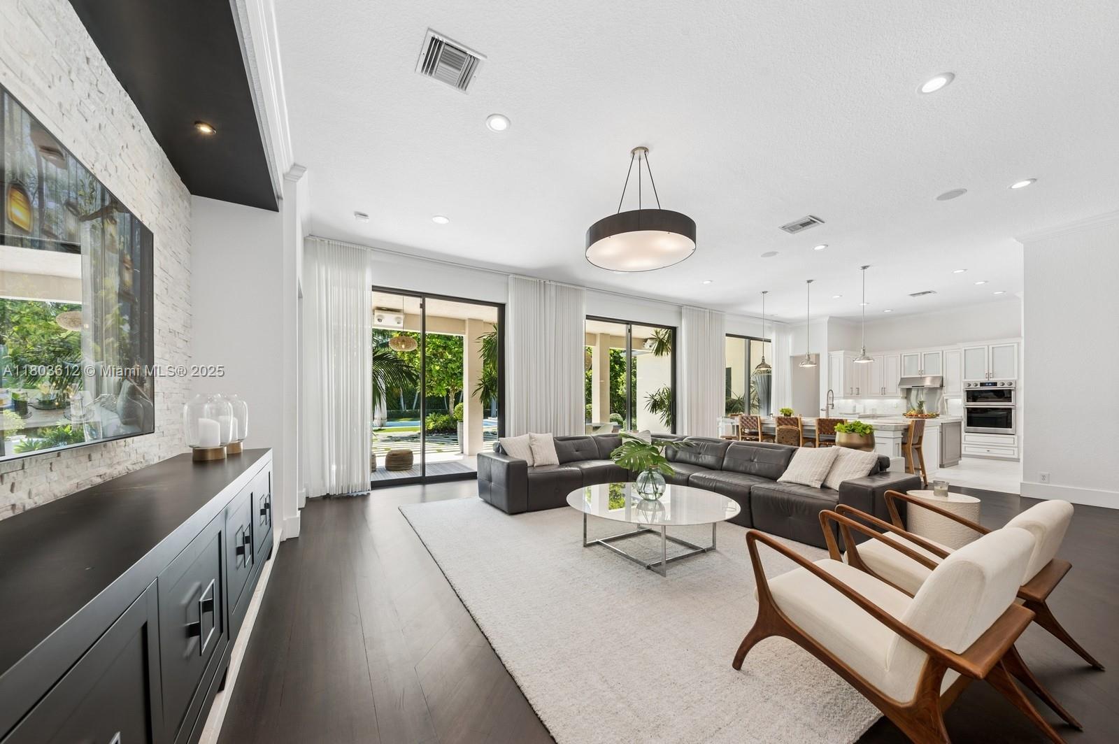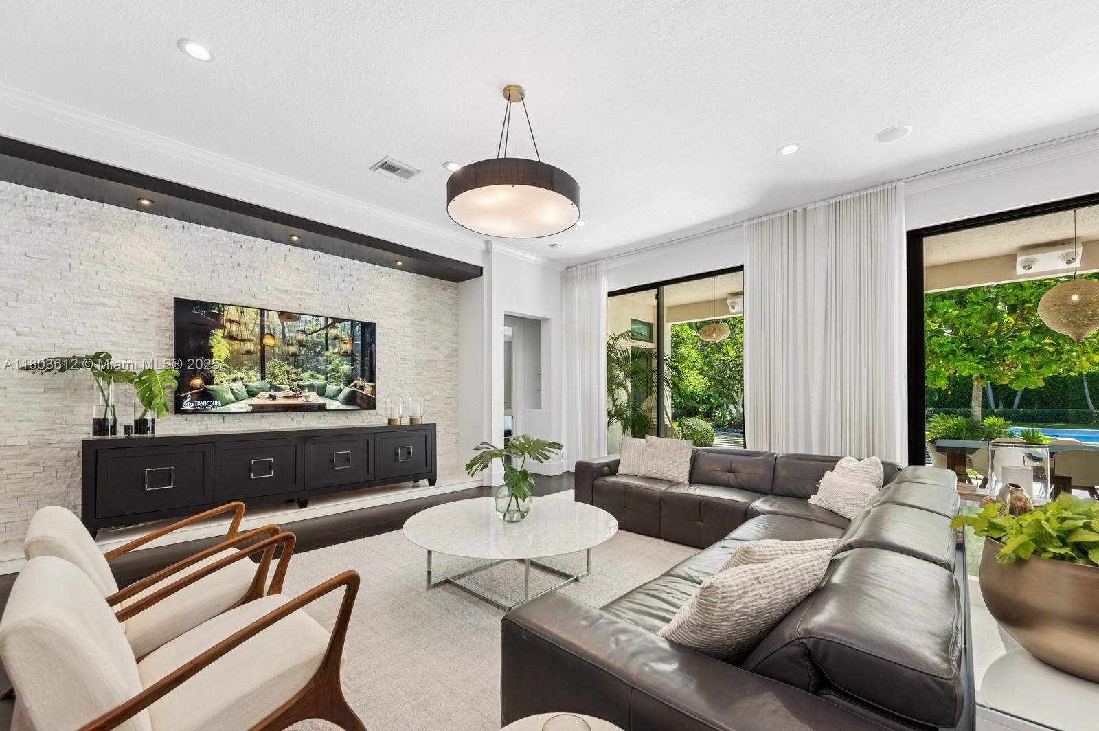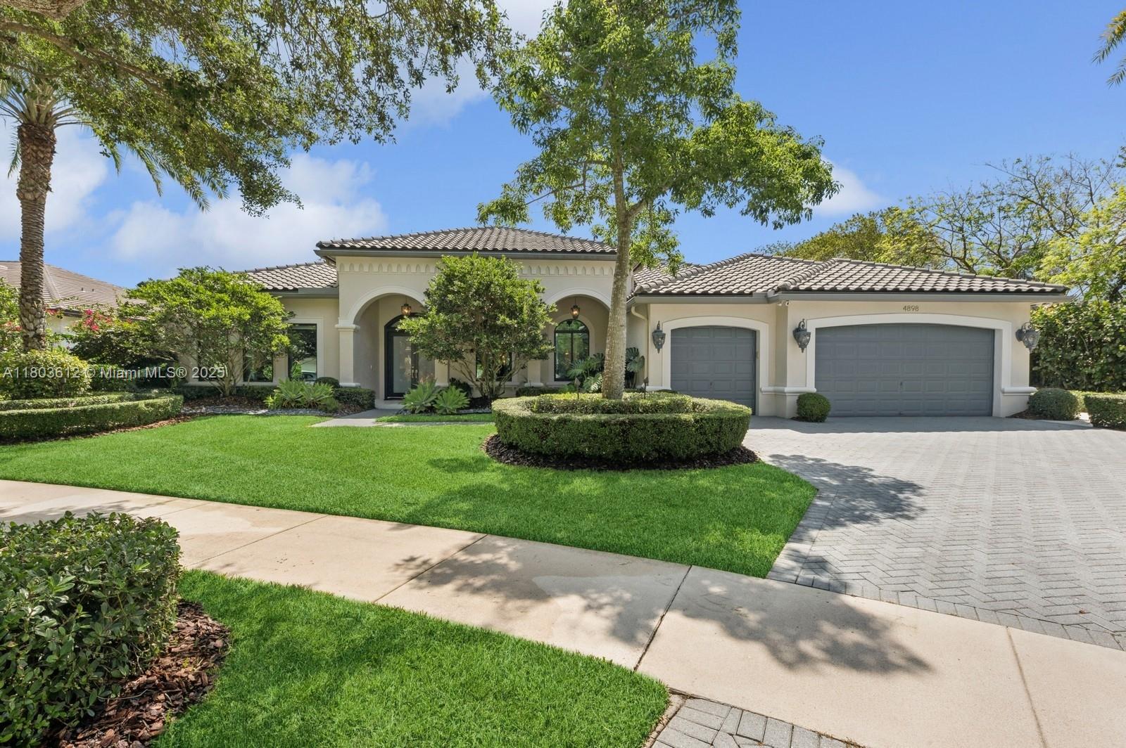 Spectacular Renovated Home | Move-In Ready | Gated Community. This stunning 5BR, 3.5BA home blends modern elegance with cozy family living. Set on a 25,810 SF lot, it offers 5,343 SF of total space and over $700K in premium renovations. Enjoy a new roof, impact windows, Lutron smart home system, and high-end A/V throughout. The open-concept kitchen features top-tier appliances and an eat-in island. Elegant wood floors flow through spacious living, family, dining, den, and office areas. Fully updated bathrooms add a spa-like touch. The resort-style backyard boasts a gorgeous pool, custom pergola, and lush landscaping. Equipped 3-car garage. Located in a gated community with excellent access—this move-in ready home is a rare find. Every detail has been professionally crafted. A must-see!