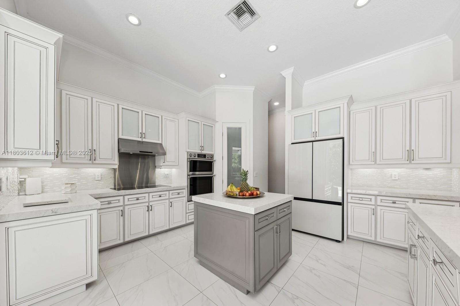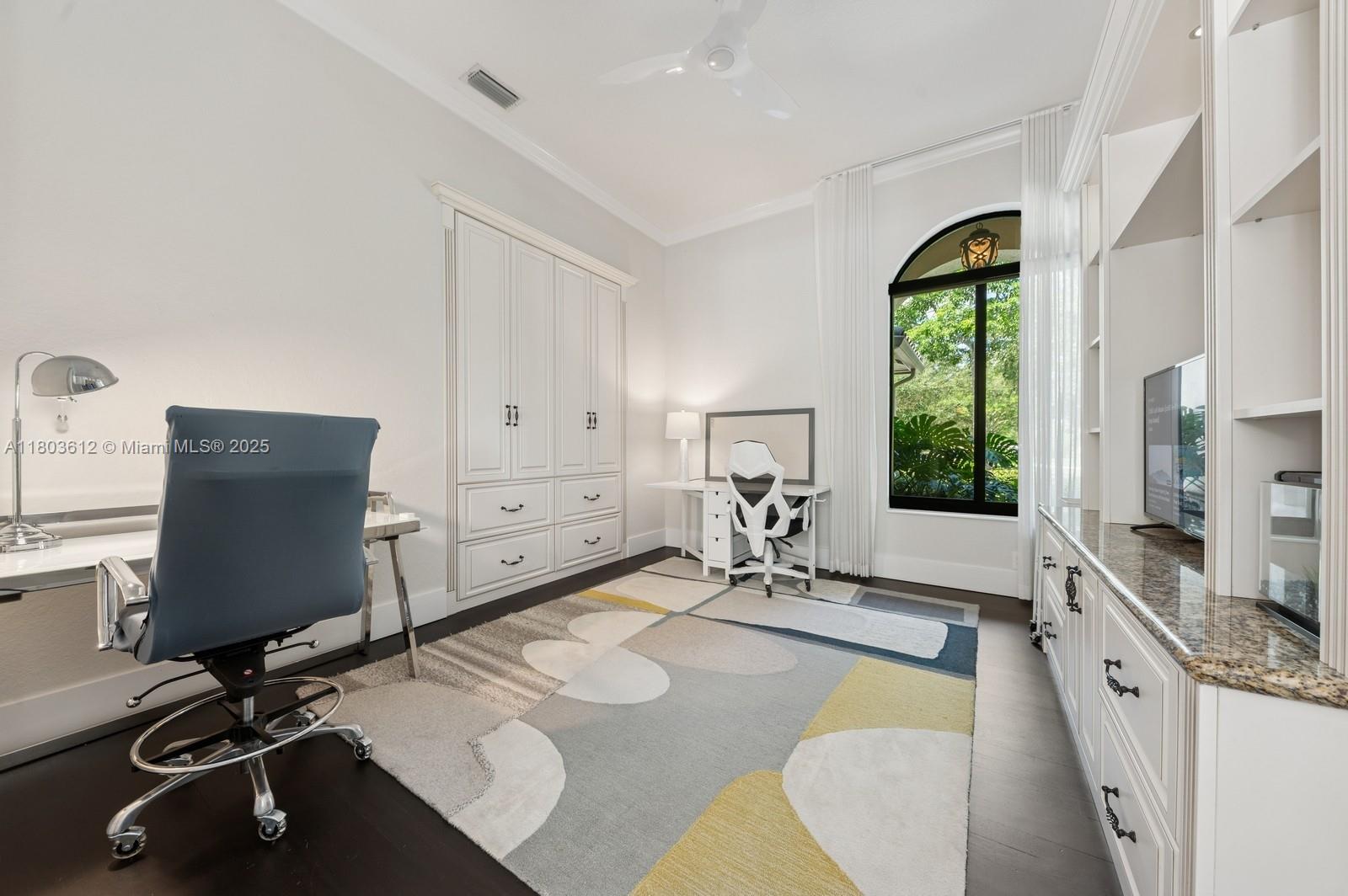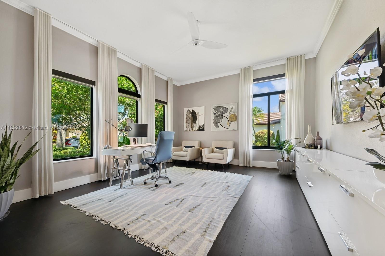 Spectacular Renovated Home | Move-In Ready | Gated Community. This stunning 5BR, 3.5BA home blends modern elegance with cozy family living. Set on a 25,810 SF lot, it offers 5,343 SF of total space and over $700K in premium renovations. Enjoy a new roof, impact windows, Lutron smart home system, and high-end A/V throughout. The open-concept kitchen features top-tier appliances and an eat-in island. Elegant wood floors flow through spacious living, family, dining, den, and office areas. Fully updated bathrooms add a spa-like touch. The resort-style backyard boasts a gorgeous pool, custom pergola, and lush landscaping. Equipped 3-car garage. Located in a gated community with excellent access—this move-in ready home is a rare find. Every detail has been professionally crafted. A must-see!