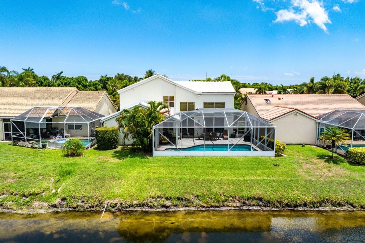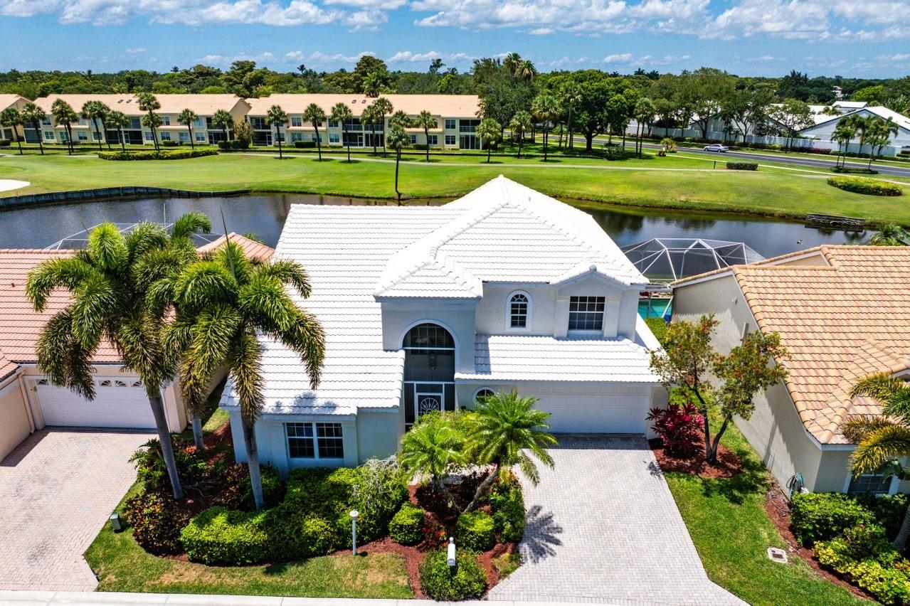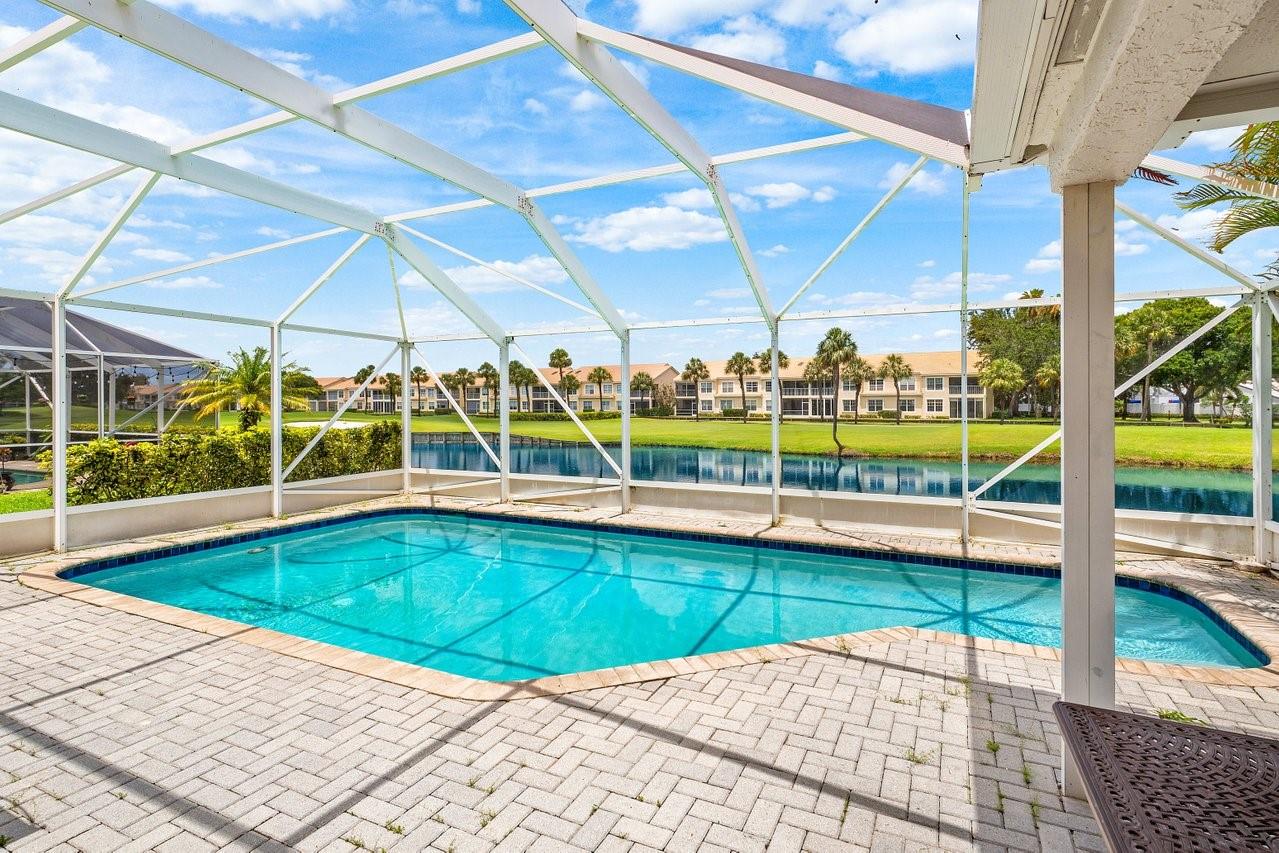 With serene views of the water and golf course, a 2021 roof, and a coveted first-floor primary suite, this pool home is perfect for enjoying the quintessential Florida lifestyle. Soaring 2 story ceilings and expansive windows/glass doors. resulted in a light airy interior with peaceful views of the pool, water and golf course throughout. The open kitchen and family room seamlessly flow to a spacious screened-in porch with a pool—perfect for indoor/outdoor living and entertaining. The flexible design provides an excellent opportunity to add your personal touches and truly make this home your own. Located in a resort-style community just minutes from the beach, dining, shopping, and entertainment, this home beautifully combines comfort, & convenience.