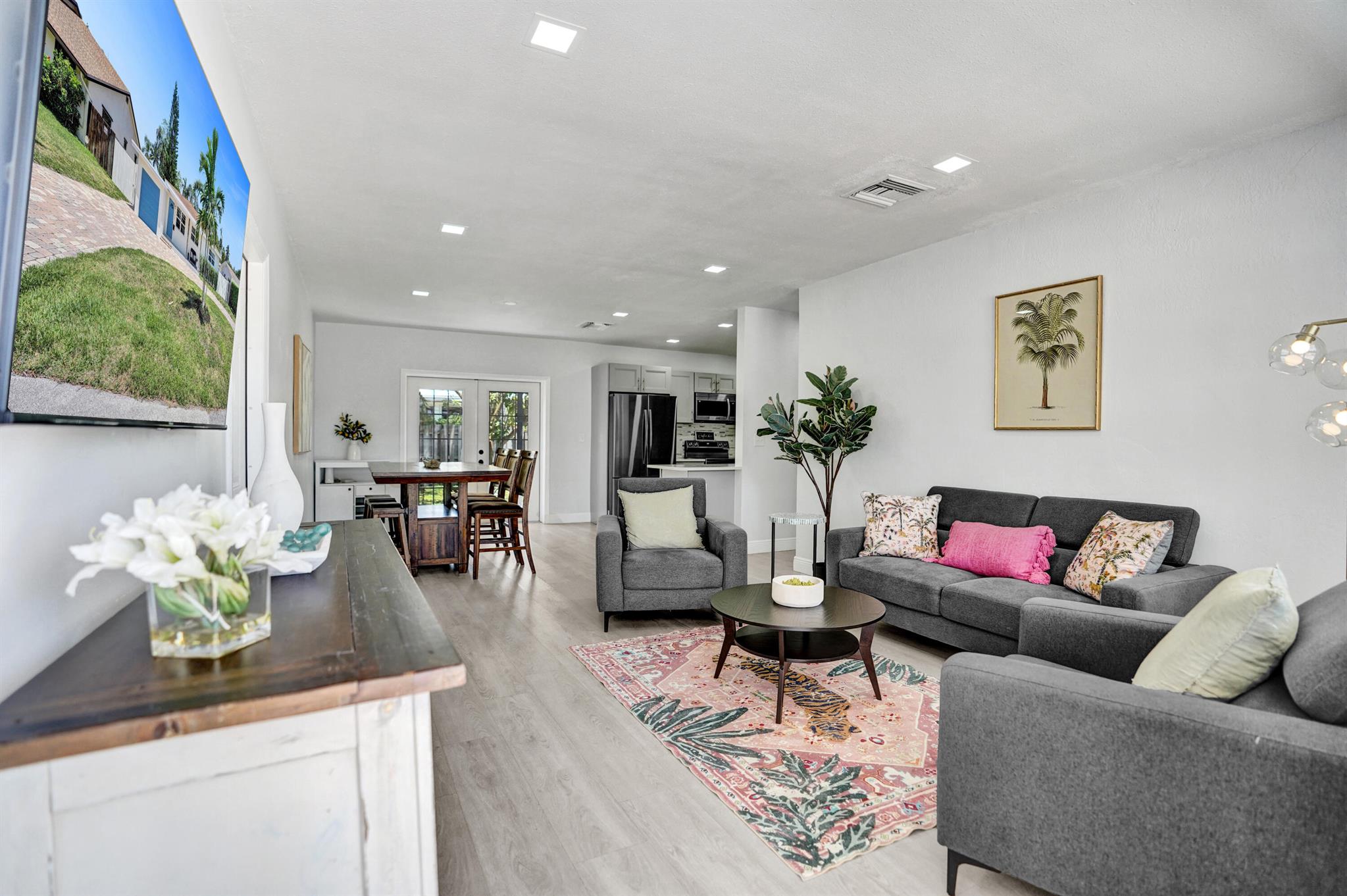 This beautifully upgraded 3-bedroom, 2-bath home in Pompano Beach offers a perfect mix of style, comfort, and location. Inside, you'll find waterproof vinyl flooring throughout, a modern open-concept kitchen with quartz countertops, stainless steel appliances, and central electric cooling and heating. The home is fully furnished and move-in ready, making it an effortless choice for any buyer.Additional features include a newer roof, panel shutters, a 1-car garage with extra driveway parking, and a generous backyard with plenty of space to add a pool. With no HOA and no rental restrictions, this property is ideal for a full-time residence, seasonal getaway, or income-producing rental.Located just minutes from the booming Pompano Beach boardwalk and oceanfront area