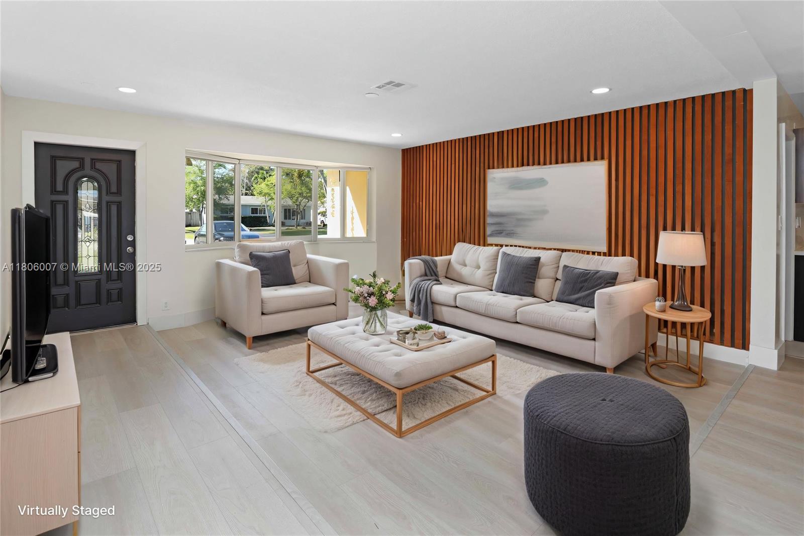 Beautiful 3-bed, 2-bath home with recent upgrades just minutes from Publix, shops, and Hollywood/Ft. Lauderdale Airport! Featuring impact windows, new flooring, fresh paint, and updated electric, this home is move-in ready. The spacious primary suite offers patio access and a luxurious marble-tiled bath with a rain shower. The kitchen with an eat-in island shines with quartz countertops, stainless steel appliances, and a pass-through to the formal dining room. Outside, enjoy a large fenced backyard with a Jacuzzi tub, covered patio, and room for a pool, perfect for entertaining and relaxing in your own privacy. Large circular driveway and 1 car garage for added space and storage.