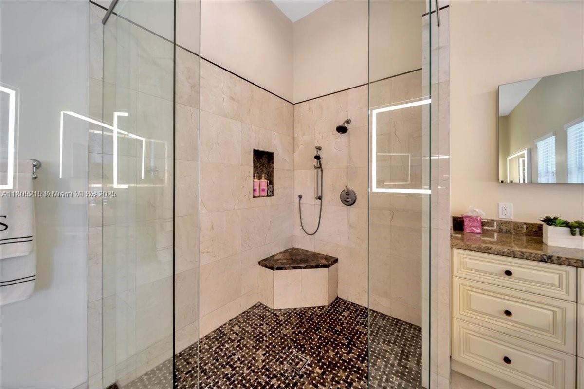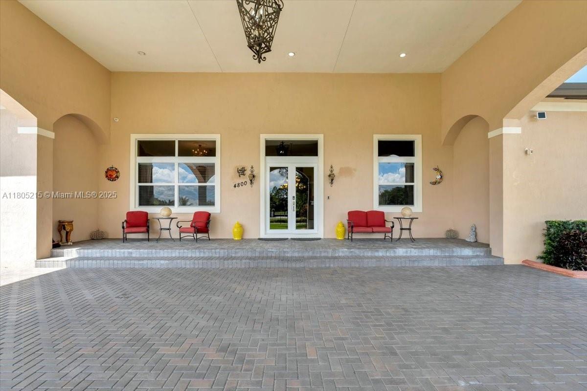 Custom-built estate with 6 beds, 4 full & 2 half baths in the main home, plus a 1-bed, 1-bath guest house with full kitchen and great room. Interior features include volume ceilings, split bedroom plan, office with built-ins, and a luxurious master suite with fitness room, huge walk-in closets, and spa-like bath with Neptune tub, large shower, double sinks, and bidet. Gourmet kitchen boasts top-tier appliances, granite counters, wood cabinetry, and breakfast bar. South wing has 5 beds, 3 baths (1 en-suite). Large laundry leads to 3-car garage. Exterior offers heated pool/spa, electric gates, porte-cochère, RV parking, 600-gal gas tank, whole-house generator, and circular drive. A welcoming open front porch area leads you in to a home offering so much. Horses are allowed.