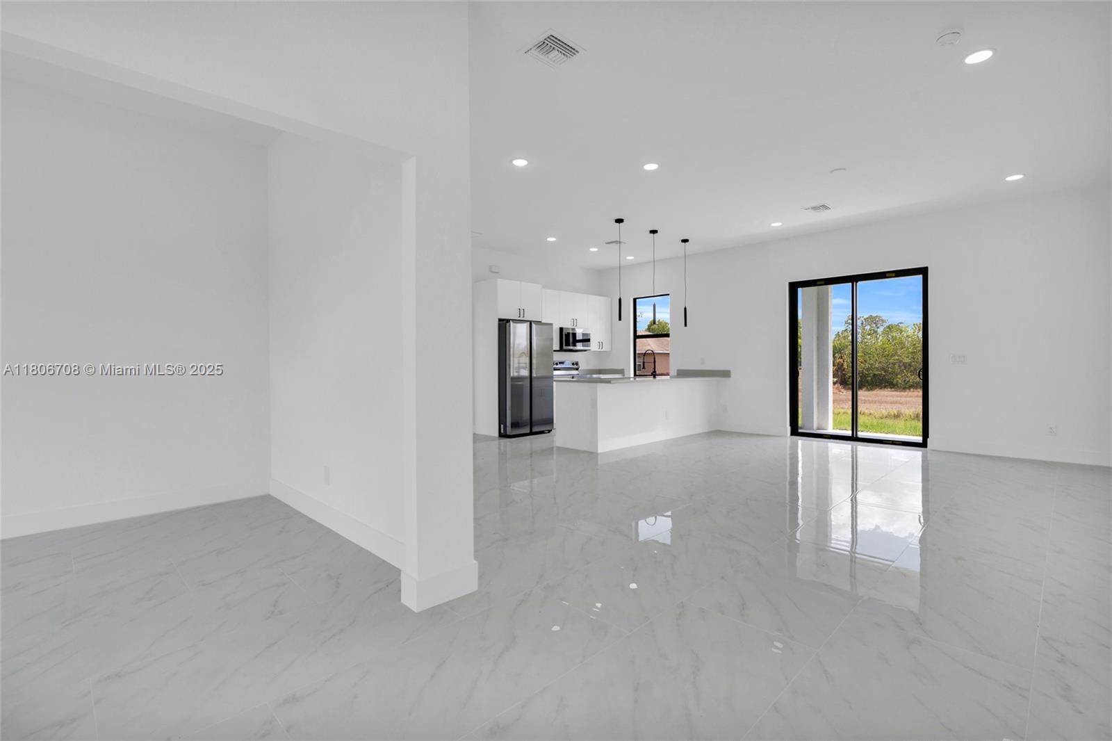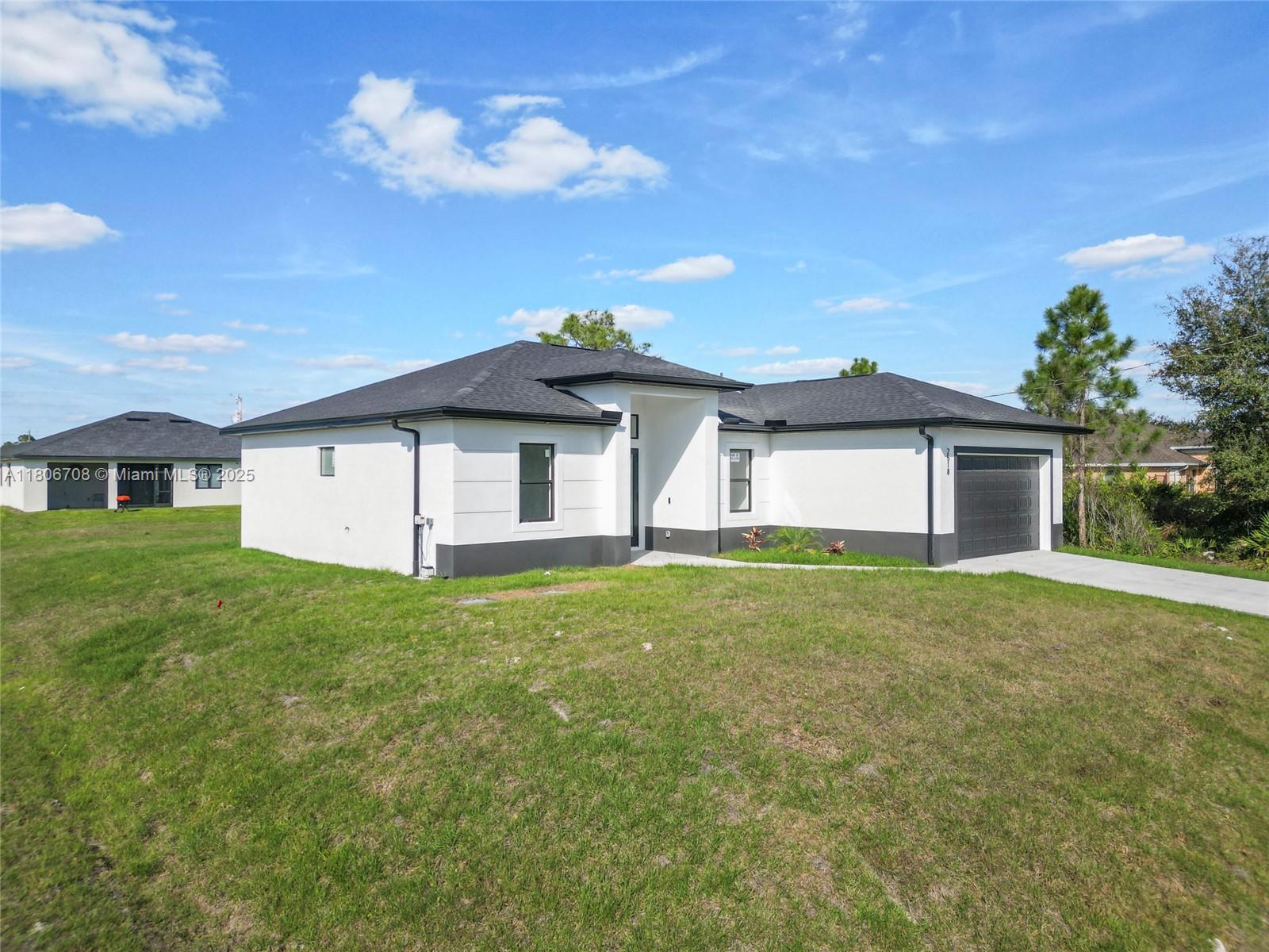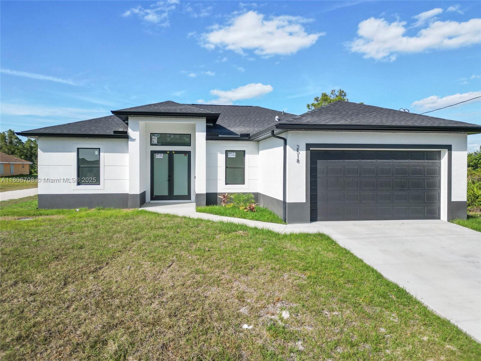 *CORNER LOT* Do not miss this unique opportunity to own a new construction in the best location in West Lehigh Acres near Sunshine Blvd. This property features 3 Bed + Den, 2 baths, white polished porcelain flooring, quartz countertops, stainless steel appliances and impact doors and windows. Schedule a private showing today!