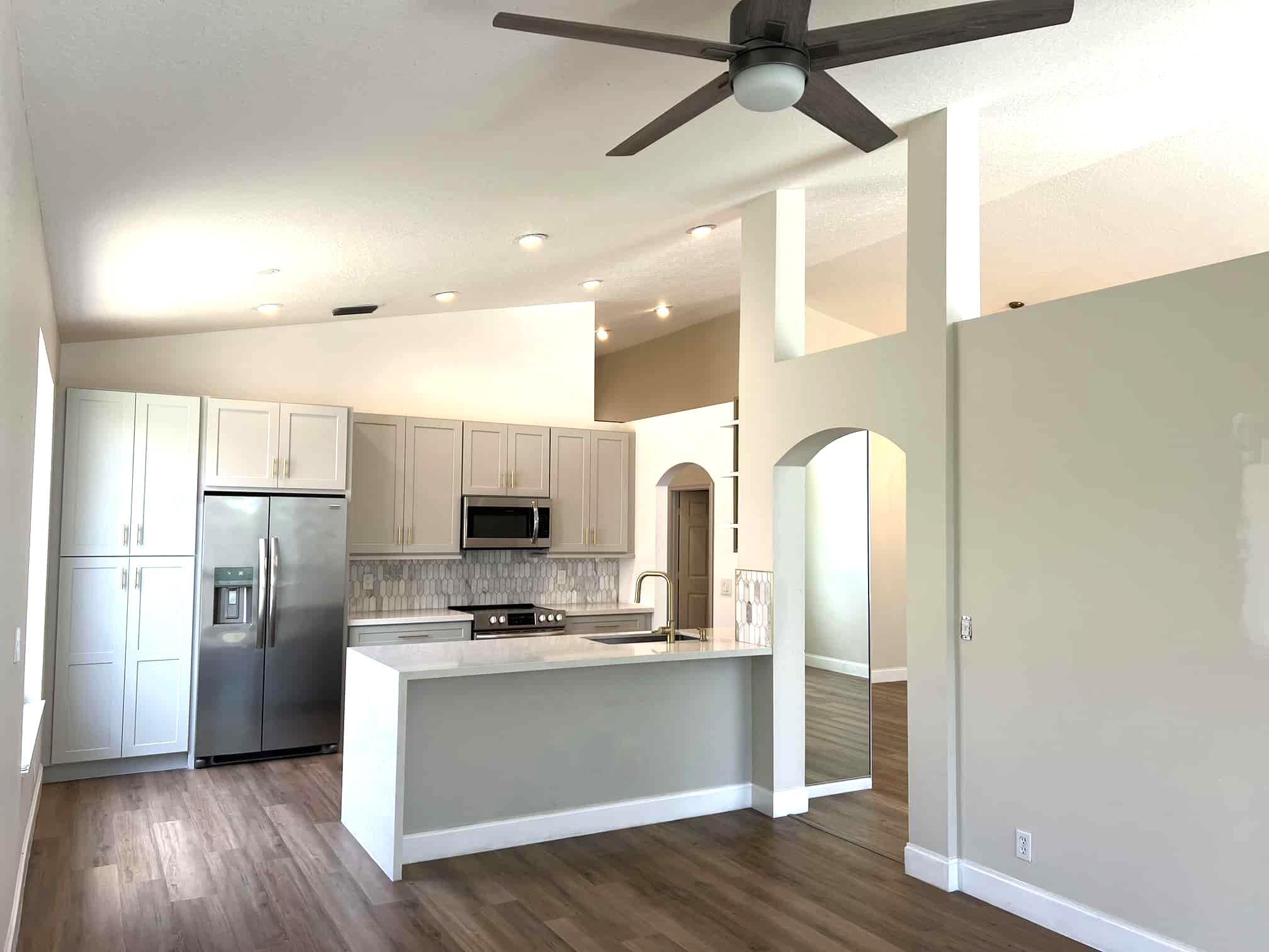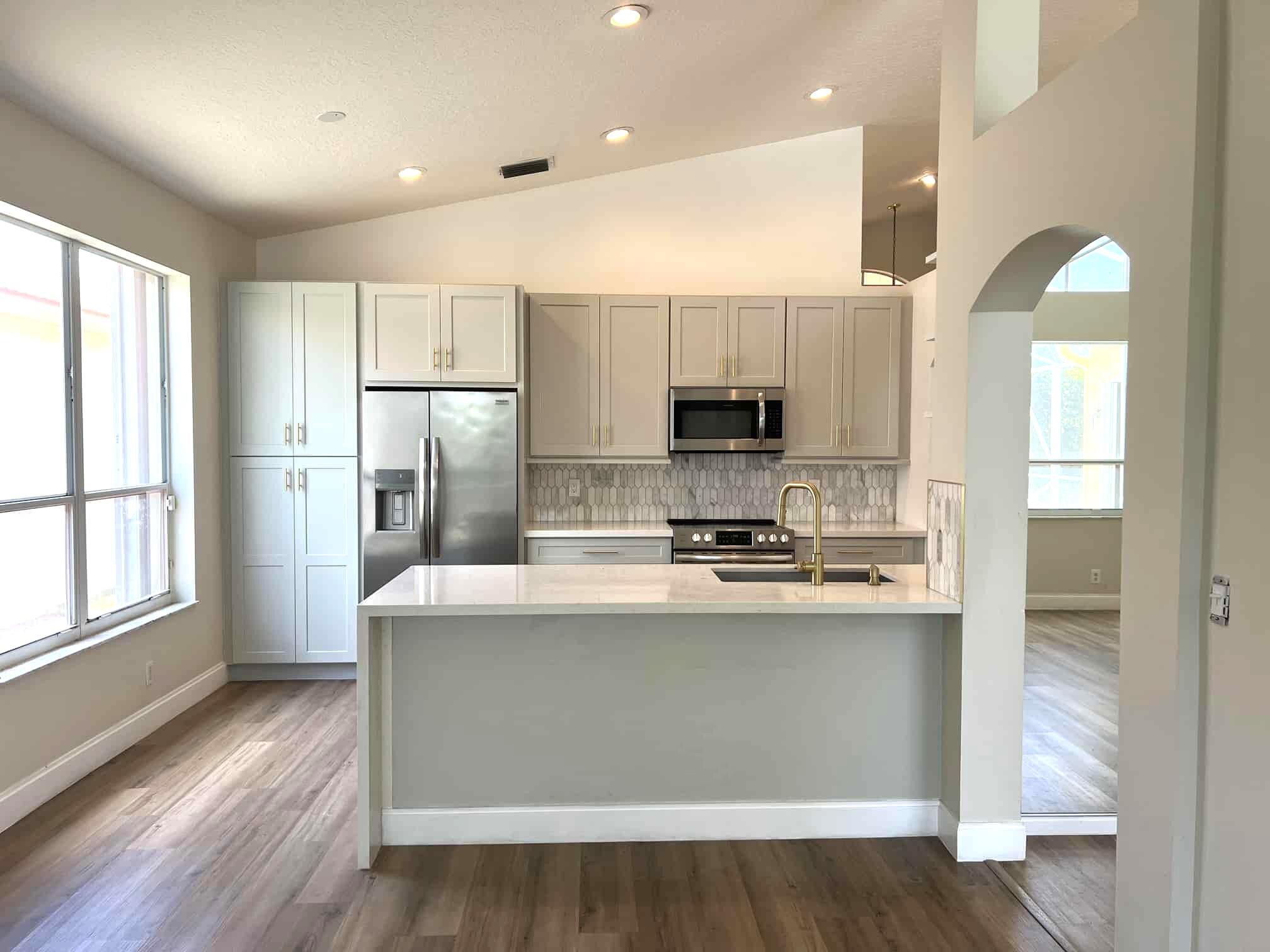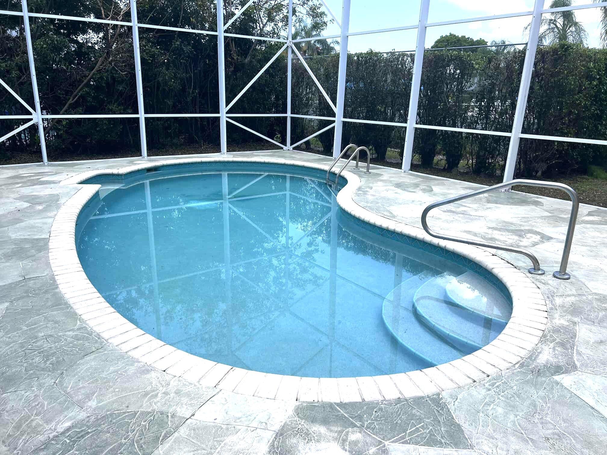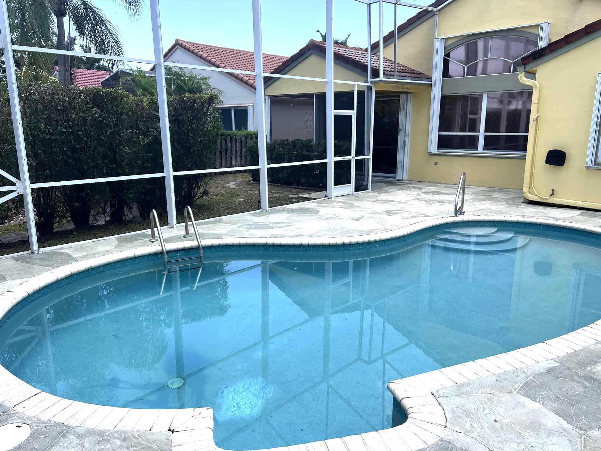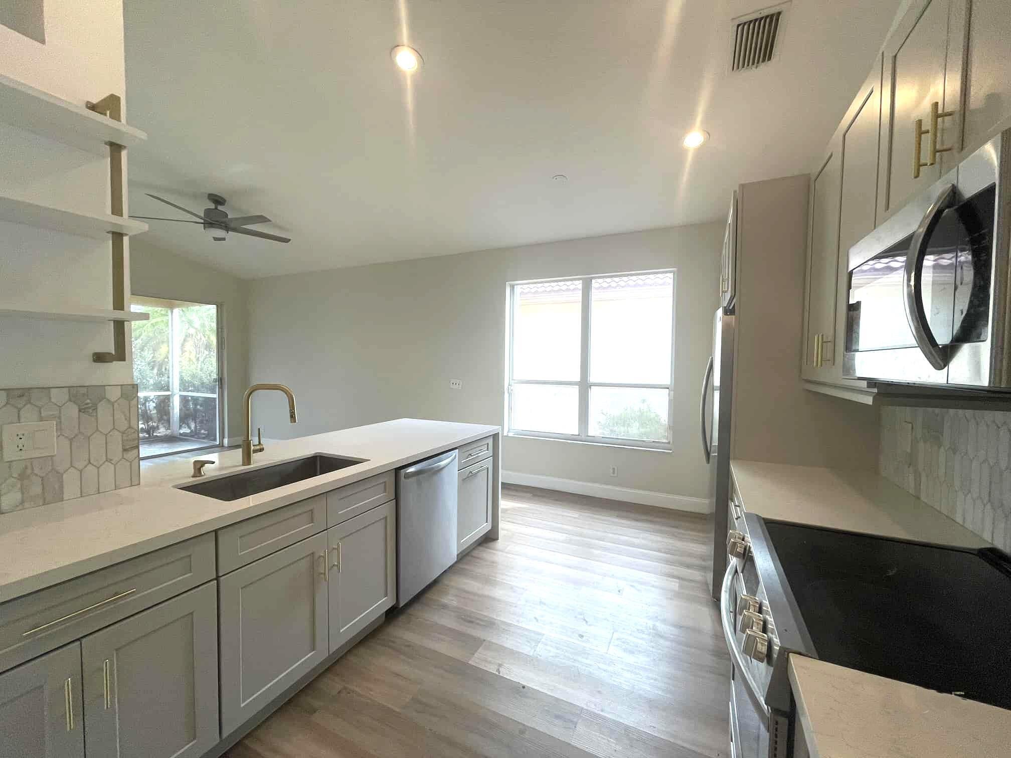 Discover this spacious 3-bedroom, 2-bath single-family home with a 2-car garage, complete with a sparkling pool under a domed screen enclosure. Inside, laminate flooring flows throughout the home. The kitchen features elegant quartz countertops, shaker-style cabinetry, and sleek stainless-steel appliances, ideal for both everyday living and entertaining. The primary suite offers a luxurious retreat with a Roman tub, separate shower, dual vanities, and a large walk-in closet. Located in the Starlight Cove neighborhood where residents enjoy access to a clubhouse, community pool, and pickleball court. Situated just 7 miles from the Boynton Harbor Marina and popular waterfront dining and only 8 miles from Ocean Front Park and beach. 7 miles to