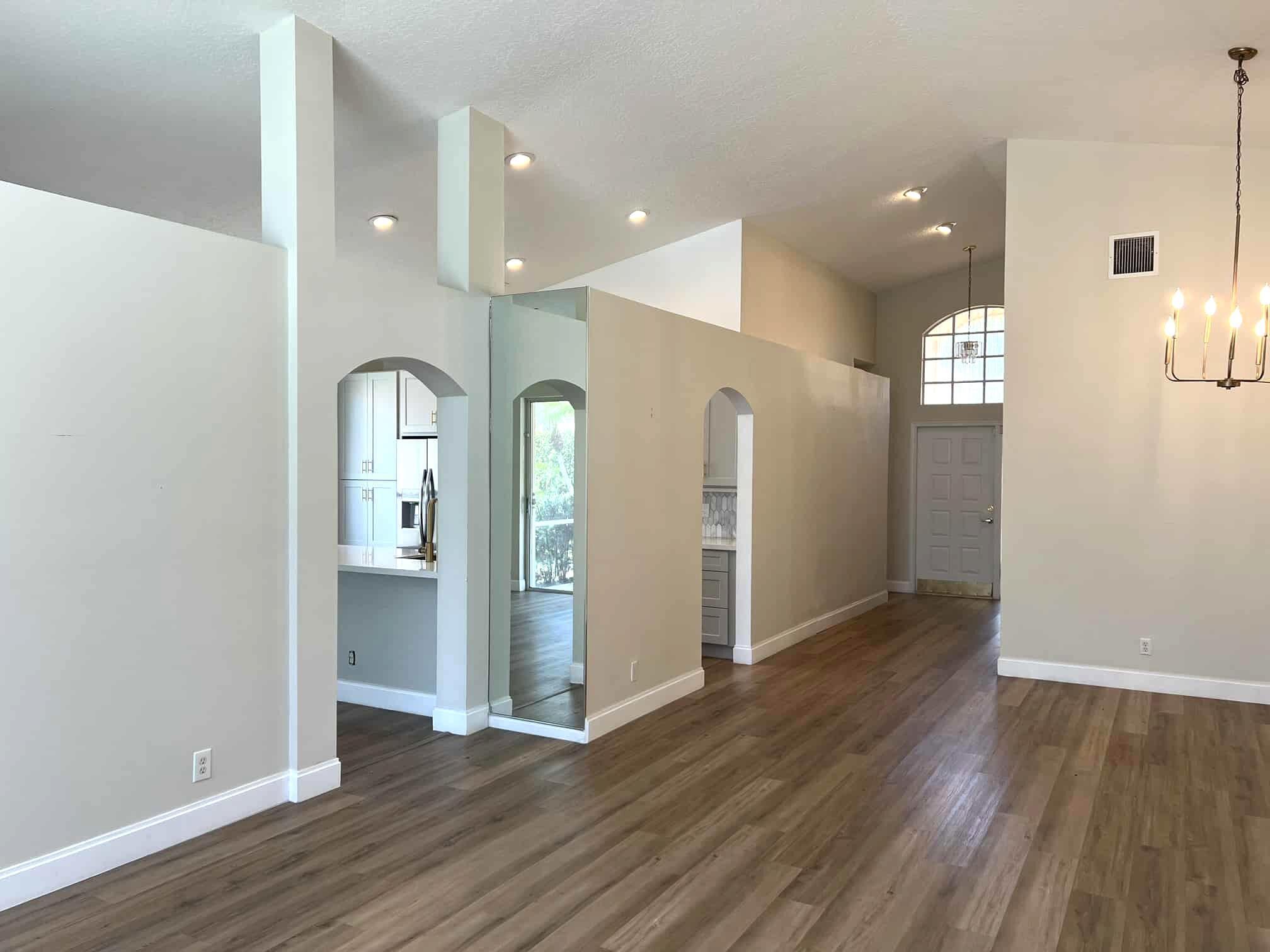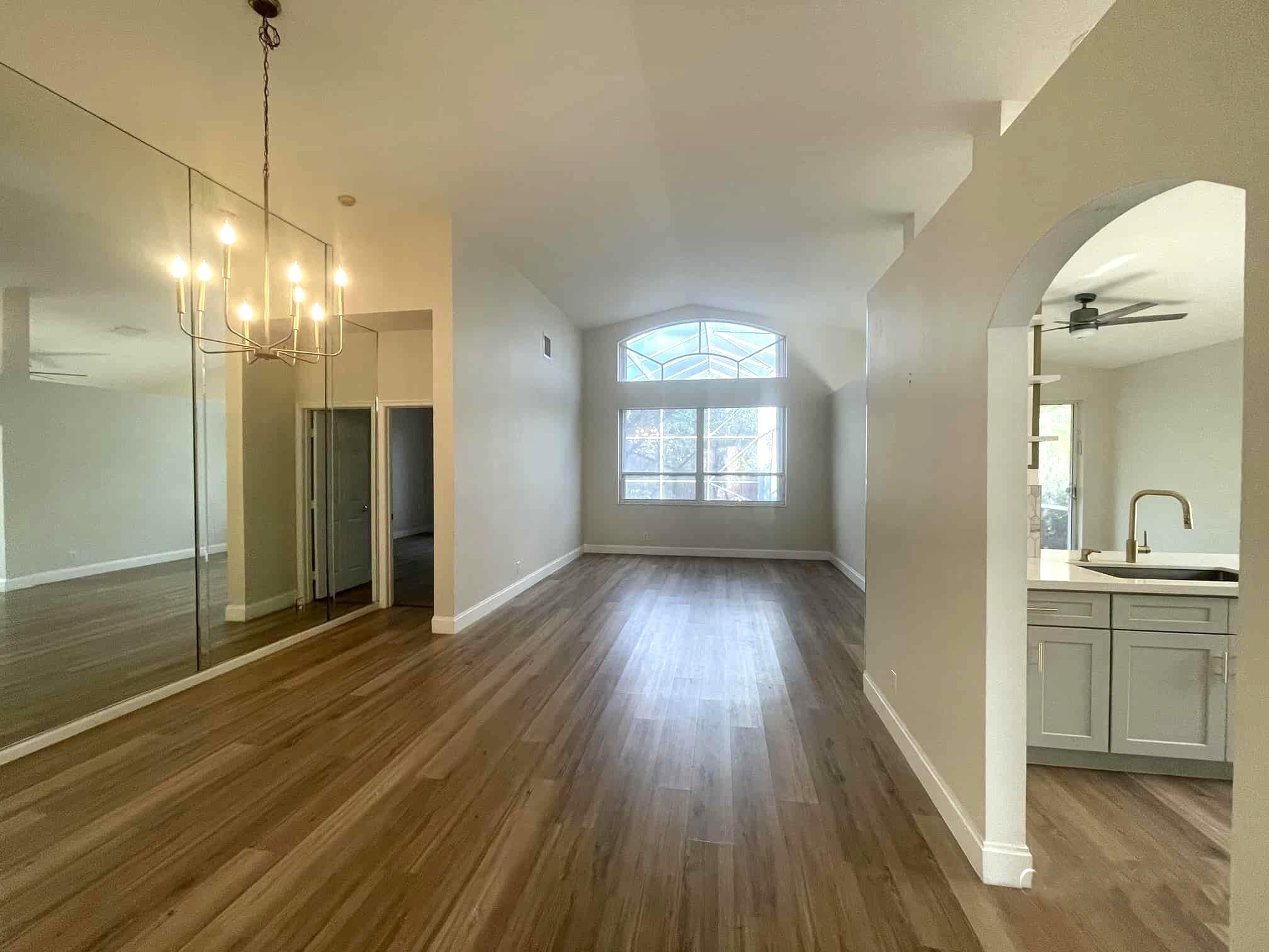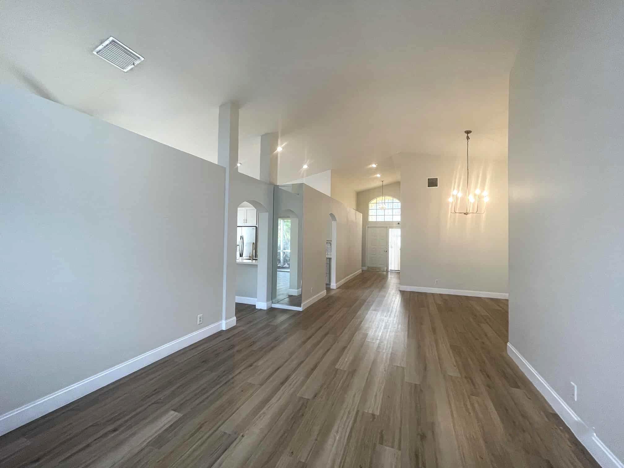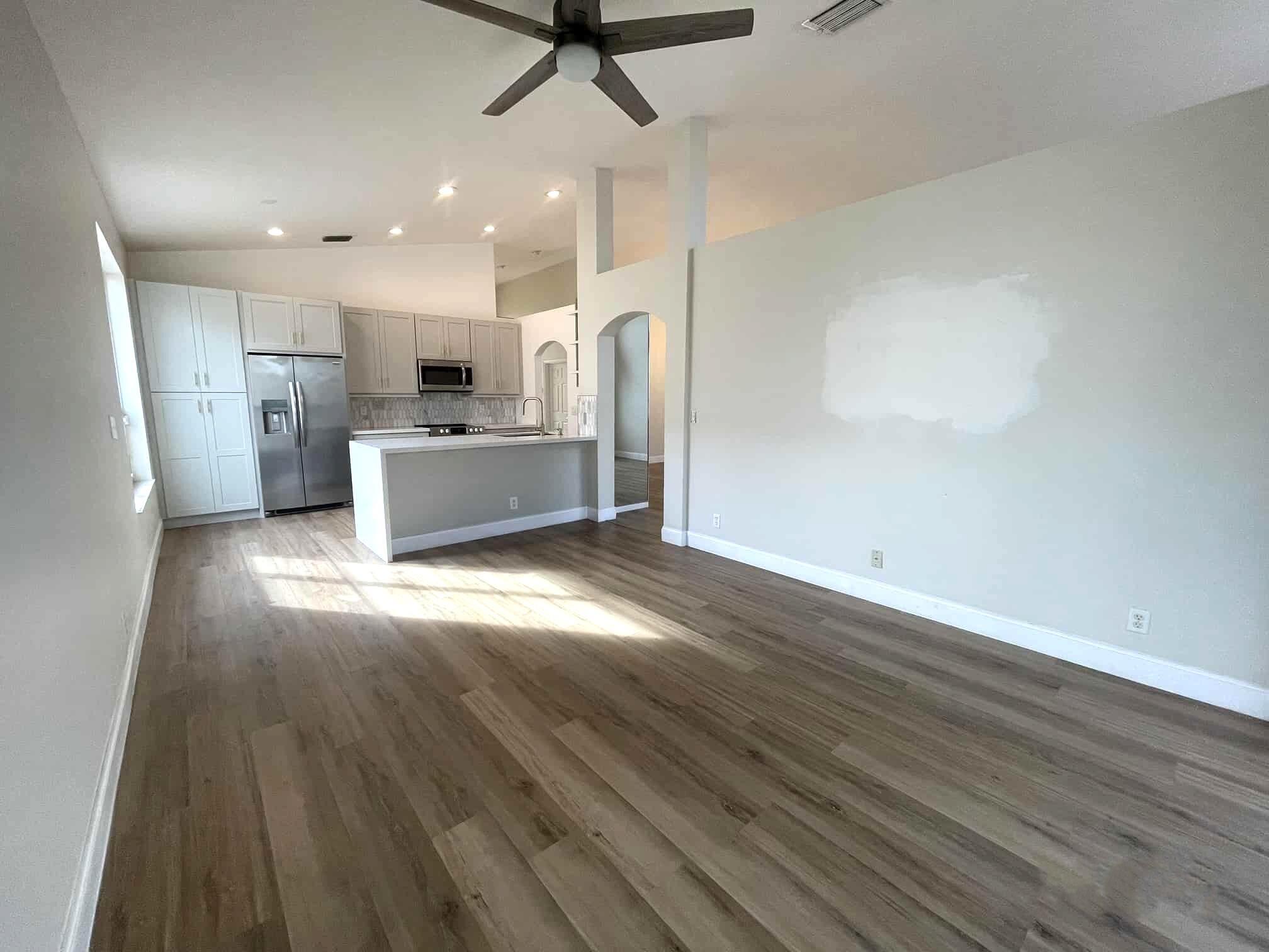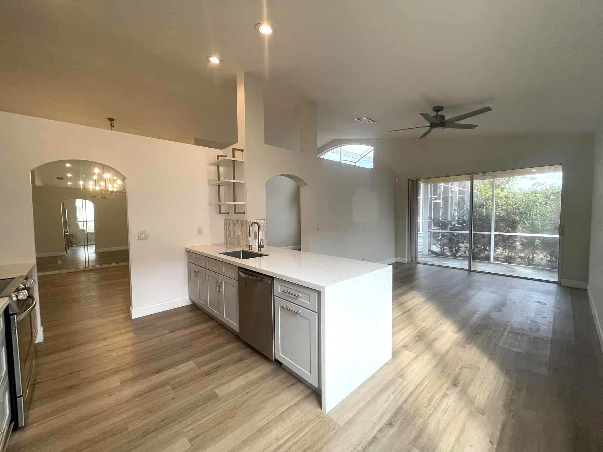 Discover this spacious 3-bedroom, 2-bath single-family home with a 2-car garage, complete with a sparkling pool under a domed screen enclosure. Inside, laminate flooring flows throughout the home. The kitchen features elegant quartz countertops, shaker-style cabinetry, and sleek stainless-steel appliances, ideal for both everyday living and entertaining. The primary suite offers a luxurious retreat with a Roman tub, separate shower, dual vanities, and a large walk-in closet. Located in the Starlight Cove neighborhood where residents enjoy access to a clubhouse, community pool, and pickleball court. Situated just 7 miles from the Boynton Harbor Marina and popular waterfront dining and only 8 miles from Ocean Front Park and beach. 7 miles to