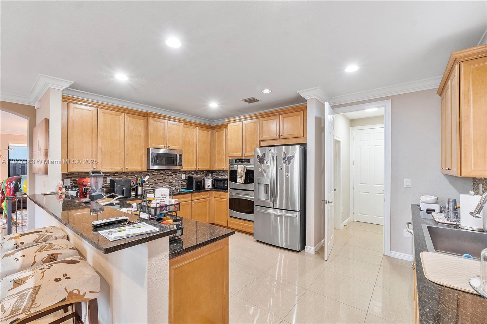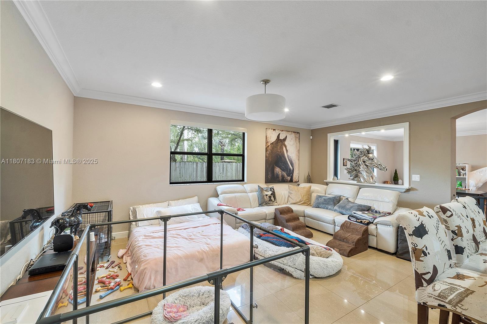 Fall in love with this home in Doral's desirable gated community of Grand Bay Estates. This stunning residence offers 5 spacious bed & 4.5 baths, including a unique mini-apartment with its own private entrance—perfect for guests, extended family, or income potential. Inside, you'll find expansive living areas, large closets throughout, updated kitchen & more. The home also features two laundry rooms, each with its own washer & dryer, ample parking with 4 dedicated spaces plus guest parking. Landscaped backyard, ideal for relaxing or hosting. Residents of Grand Bay Estates enjoy access to a luxurious clubhouse with tennis, basketball, & soccer courts, a state-of-the-art gym, party rooms, & multiple recreational areas. This home truly has it all—space, style, & a vibrant community lifestyle.