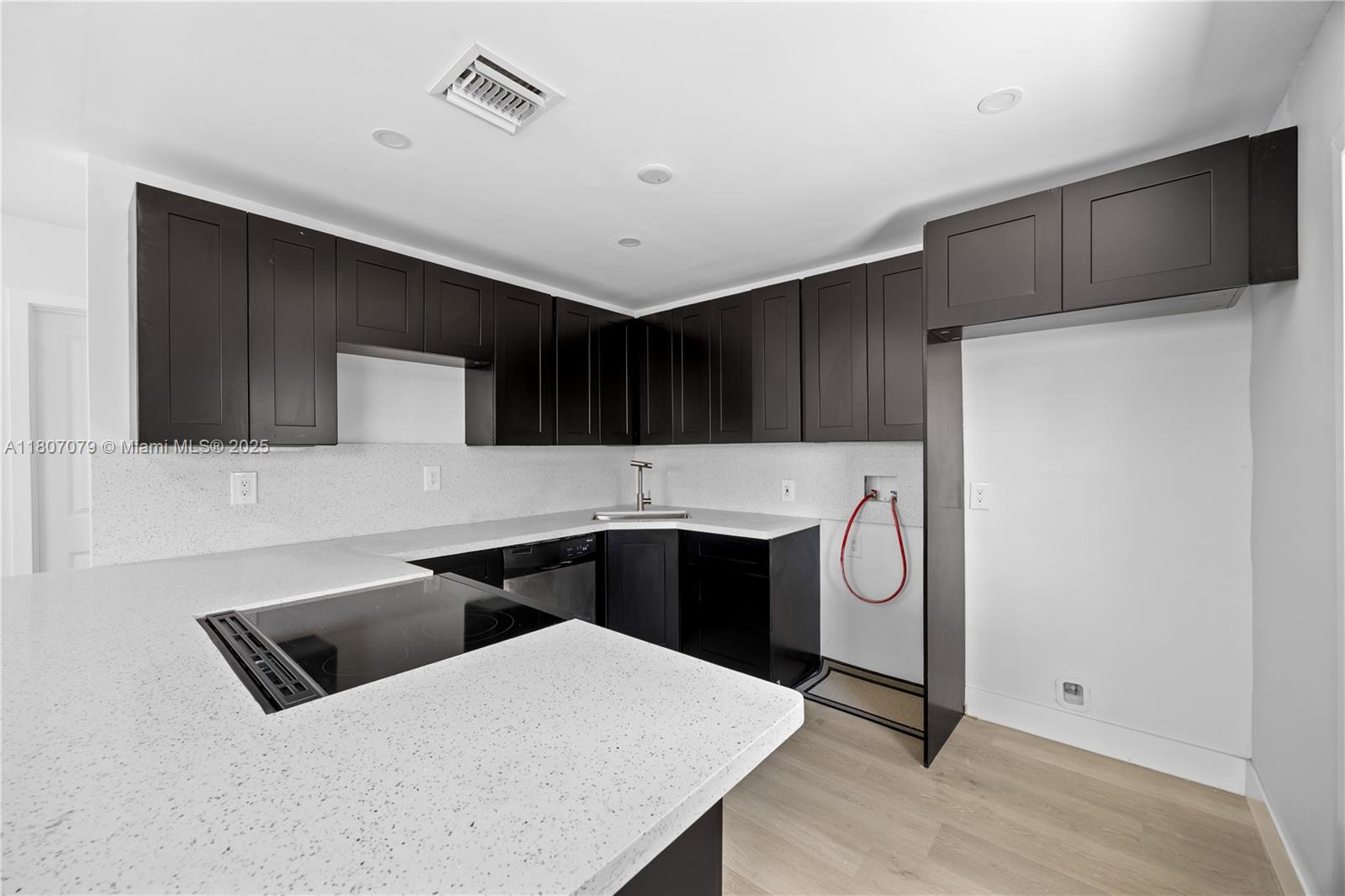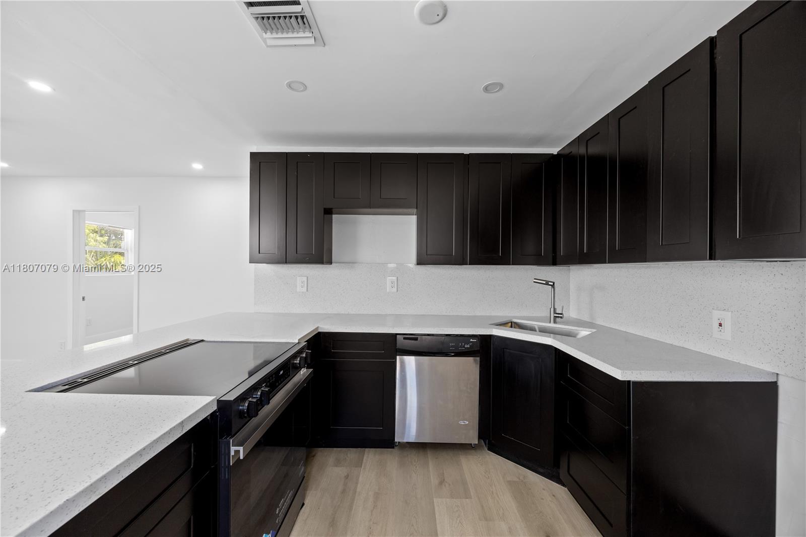 Freshly re-imagined 4/2 bungalow delivers modern style & peace-of-mind updates, no HOA. Curb appeal pops with crisp white stucco, charcoal trim and an big driveway; double gates open to an oversized, big backyard—room for pool, pets, boat or RV. Inside, sunlight dances off wide-plank LVP floors and LED lighting. The show-stopper kitchen boasts 42-in espresso Shaker cabinets, sparkling quartz counters/backsplash, peninsula seating for four and a full stainless appliance package (range & fridge installed before closing). Two spa-inspired baths feature floor-to-ceiling porcelain tile, rainfall showers and sleek vanities—one with dual sinks.