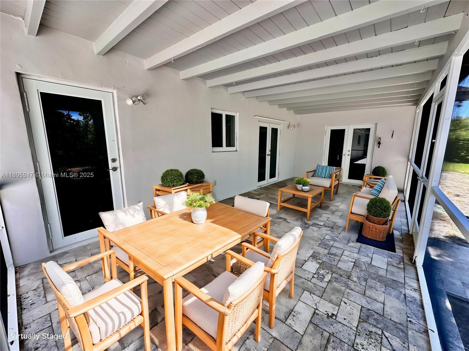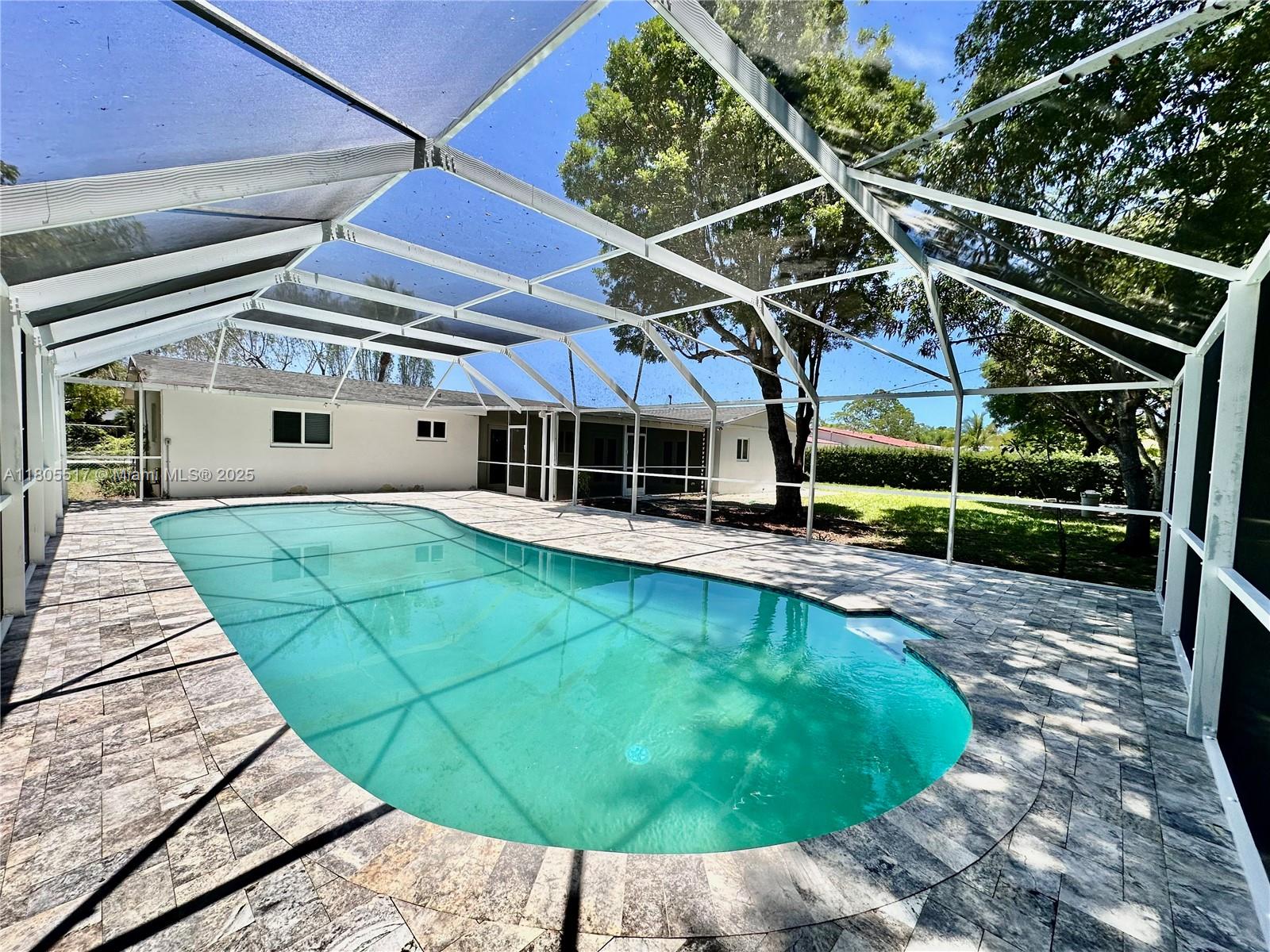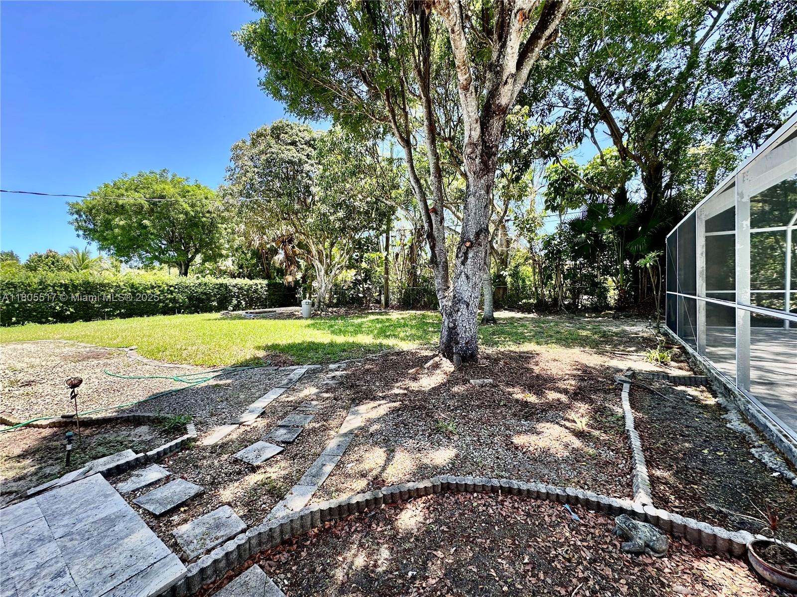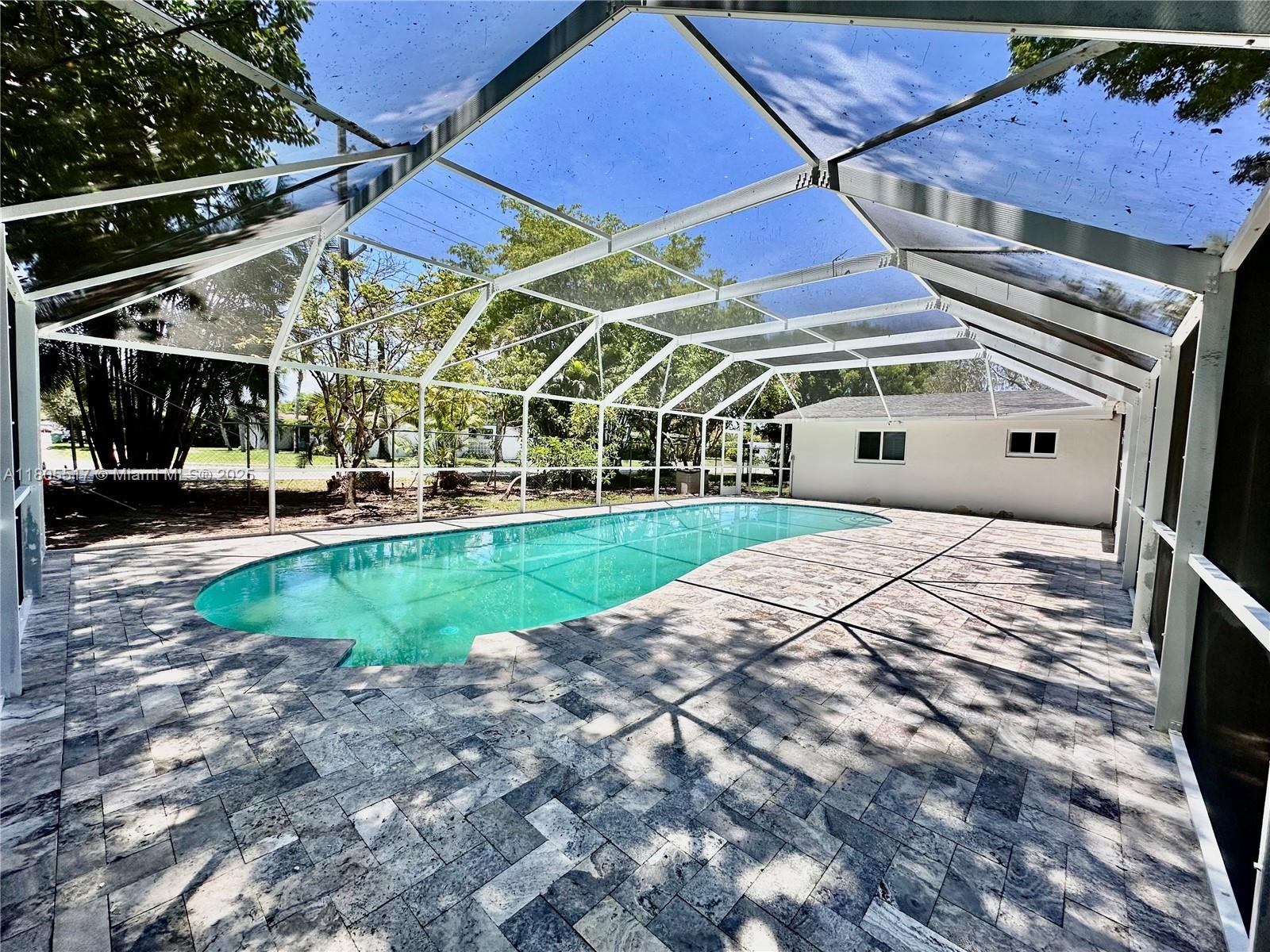 Welcome to this ideal open-concept home, perfectly located on an 18,000+ sq ft corner lot in a wonderful neighborhood. Featuring 3 bedrooms, 2 bathrooms, and a flexible room perfect for an office, playroom, or guest space with the addition of a barn door. The open layout gives new homeowners the freedom to design a space that fits their lifestyle. The updated kitchen features rich dark wood cabinetry, stainless steel appliances, and quartz countertops. A breakfast nook and coffee bar next to the kitchen offer extra dining and entertaining space. Both bathrooms have been tastefully updated. Enjoy the screened-in saltwater pool year-round. The backyard includes fruit trees and a concrete slab—ideal for a shed or RV parking. A new roof and septic tank are underway, expected completion Dec.