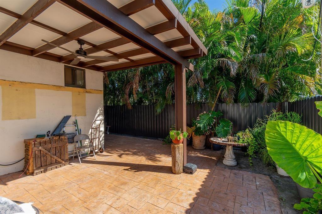 3-bedroom, 2-bath single-family home, updated kitchen, wood-look tile flooring throughout, and modern ceiling lights. Hurricane-impact windows and doors provide safety and energy efficiency. Covered pergola and a fully fenced metal yard. Additional highlights include a paved driveway, updated A/C, tankless water heater, and upgraded electric panel. Roof 2015.