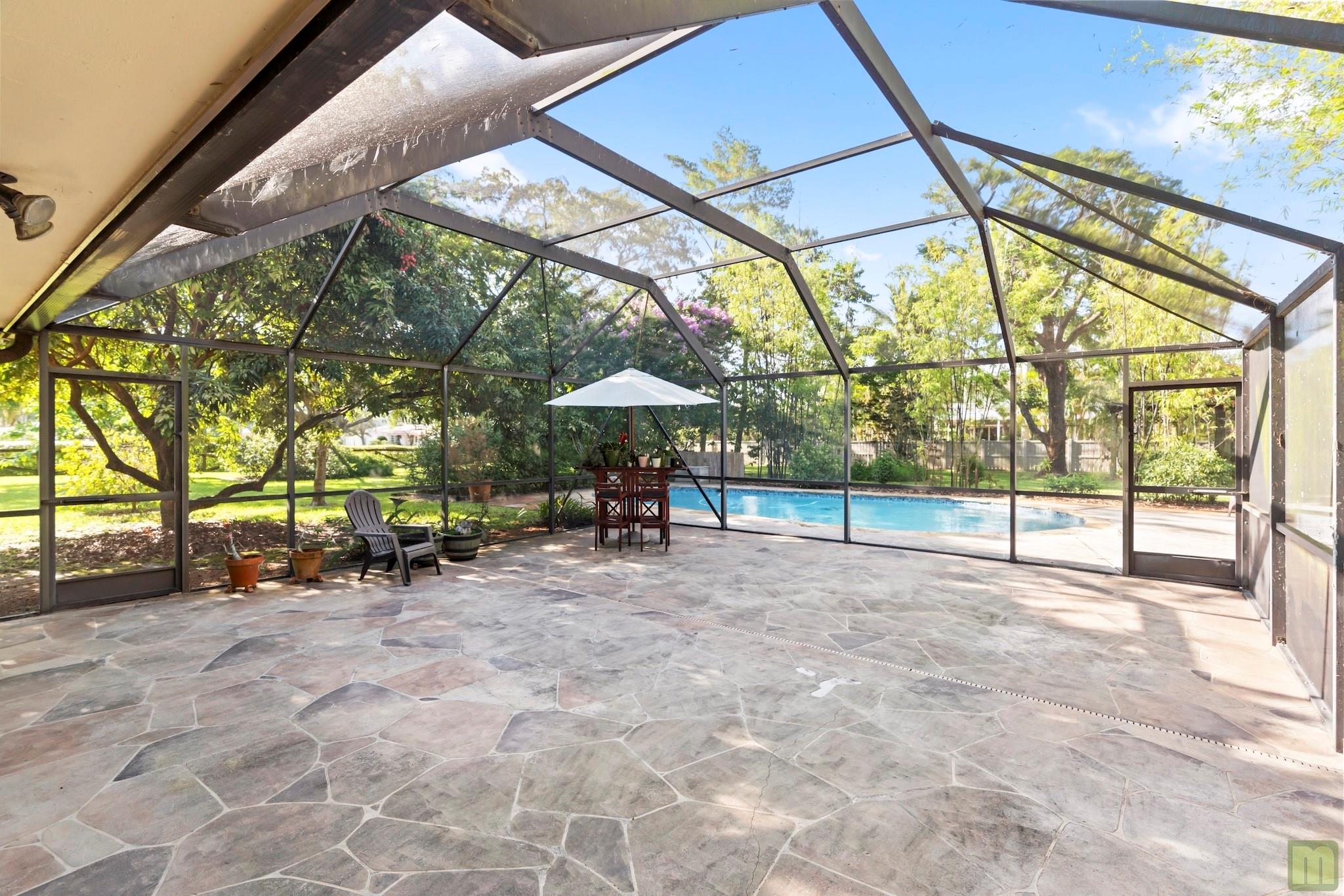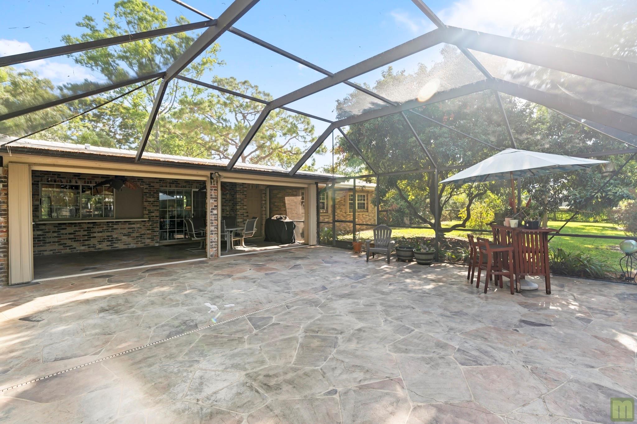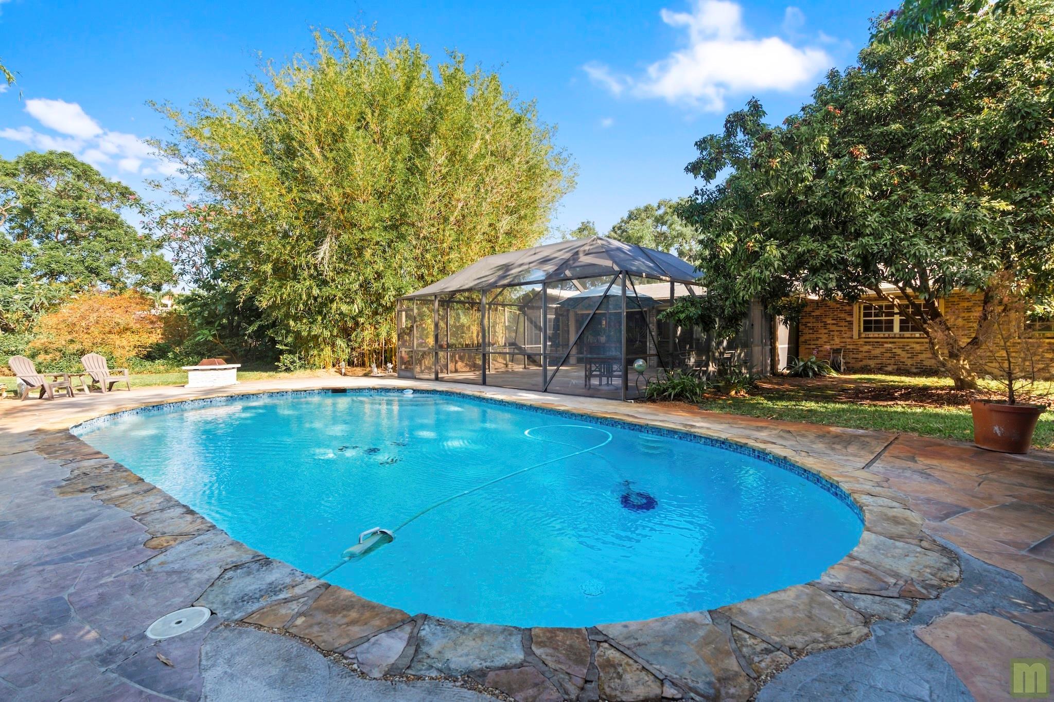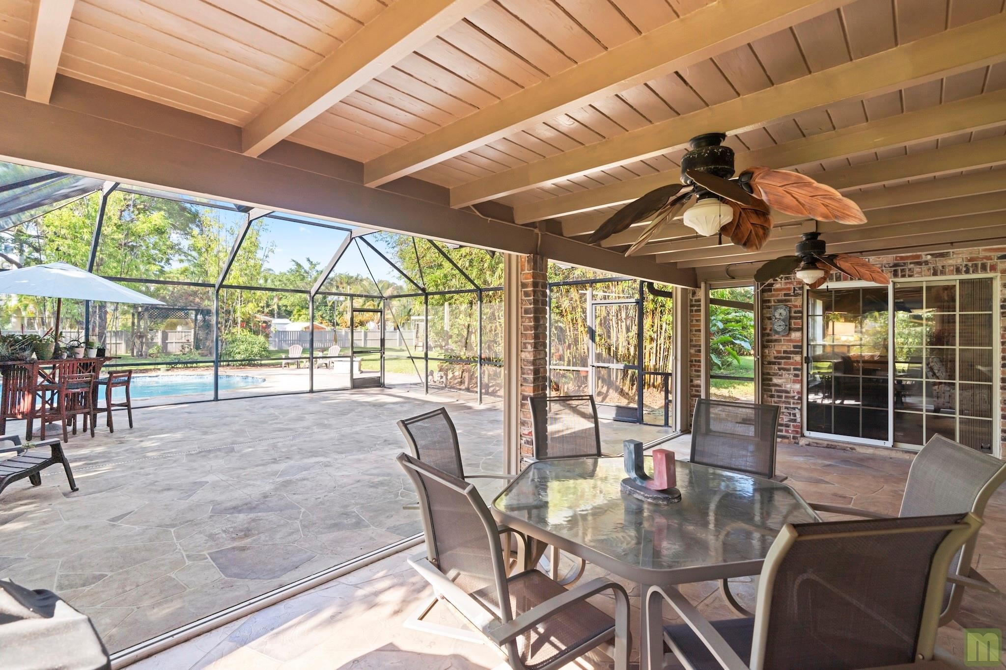 RARELY AVAILABLE - This beautiful ranch-style 4 bedroom, 2.5 bath home sits on a whopping 1.08 acres in the heart of South Creek. Spacious layout with formal living and family rooms, pass-through galley-style kitchen with granite countertops, stainless steel appliances and maple cabinetry. Large primary suite with walk-in closet, updated bathroom, 2 more bedrooms on the same side plus guest bathroom and on the opposite side of the home, a 4th bedroom with en-suite 1/2 bath that is perfect for an office or when guests come to visit. Outside you'll enjoy lush tropical landscaping, a massive screened-in flagstone patio with covered portion, gorgeous pool, gazebo, shed and so much yard space you'll wonder where your neighbors are. No HOA, close to schools, shopping and just 7 mi to the beach