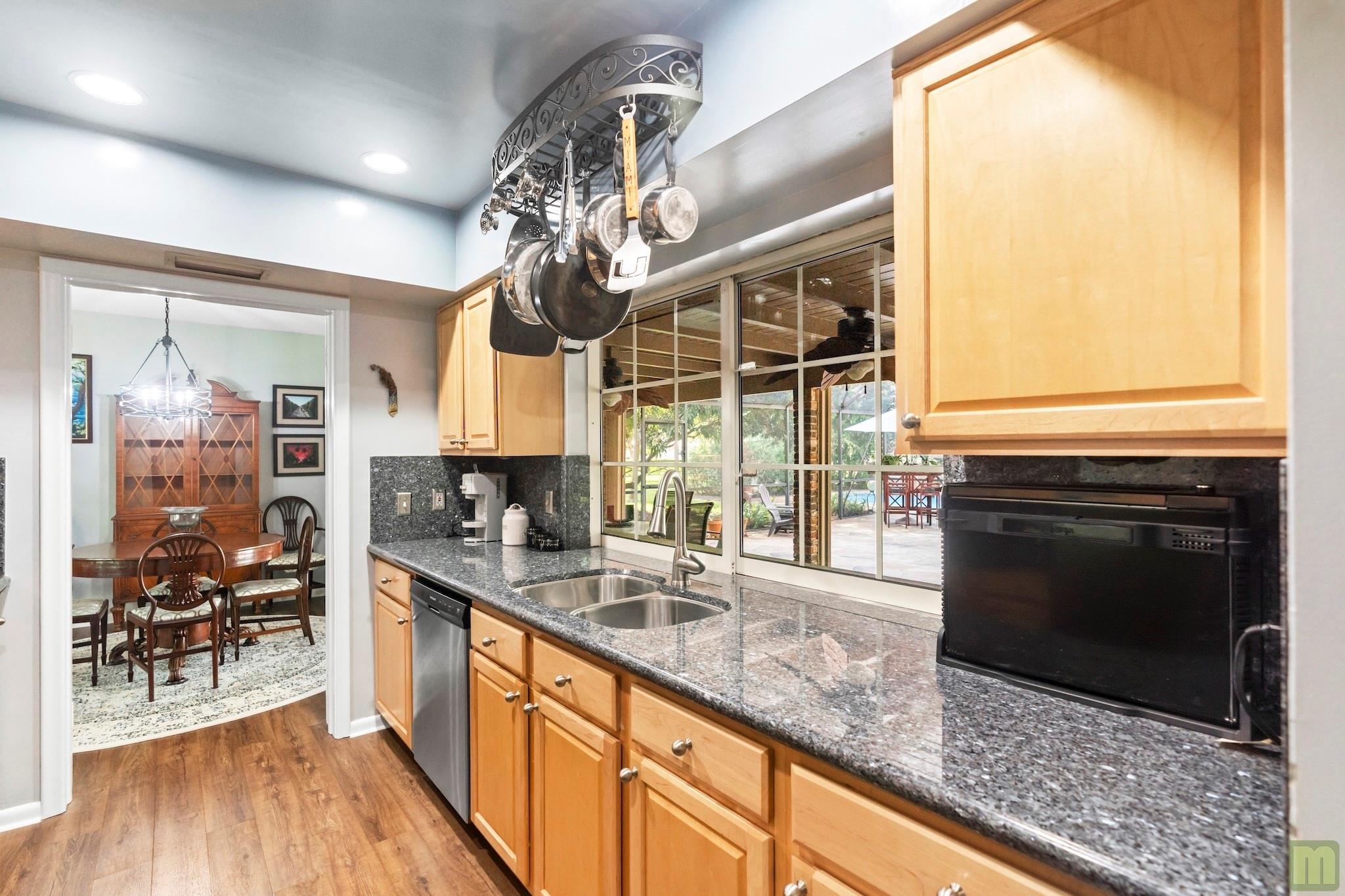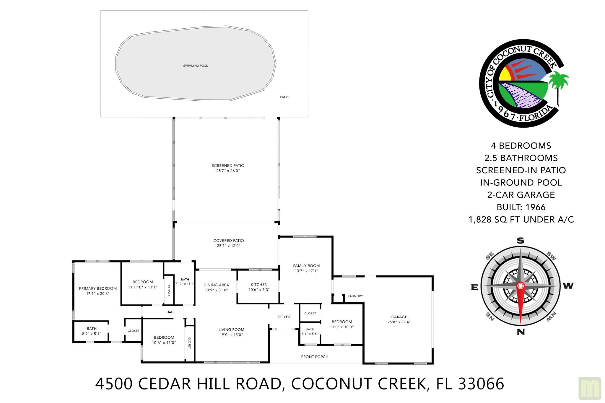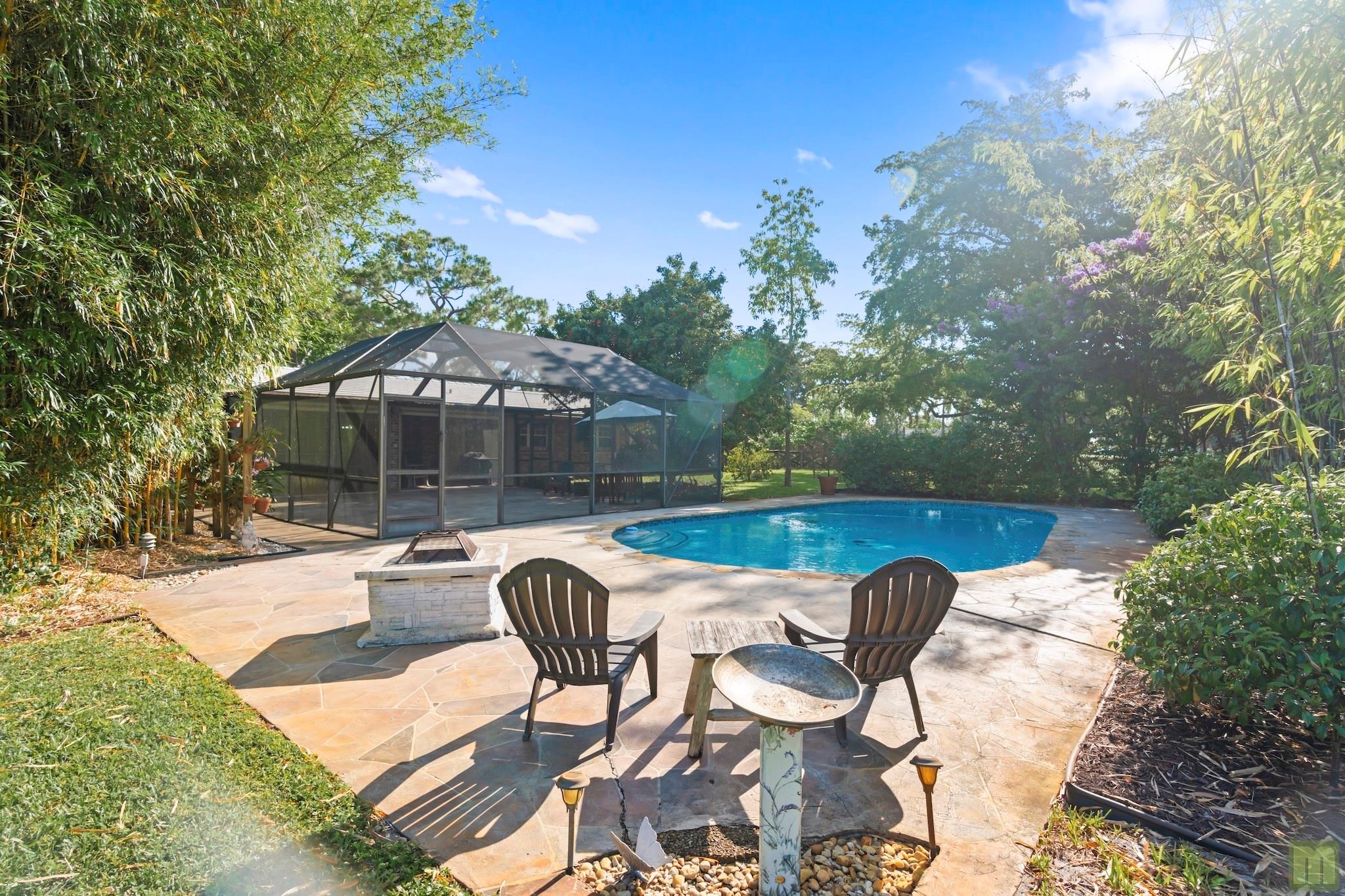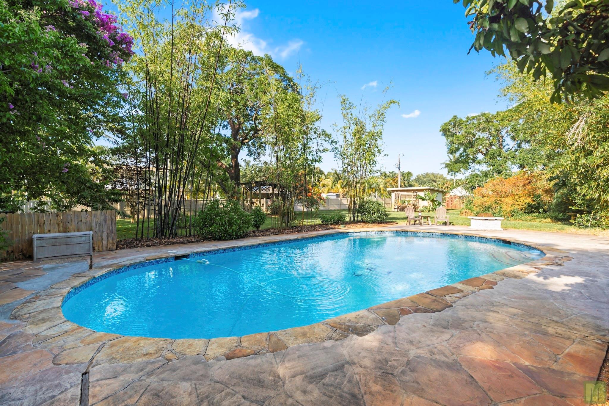 RARELY AVAILABLE - This beautiful ranch-style 4 bedroom, 2.5 bath home sits on a whopping 1.08 acres in the heart of South Creek. Spacious layout with formal living and family rooms, pass-through galley-style kitchen with granite countertops, stainless steel appliances and maple cabinetry. Large primary suite with walk-in closet, updated bathroom, 2 more bedrooms on the same side plus guest bathroom and on the opposite side of the home, a 4th bedroom with en-suite 1/2 bath that is perfect for an office or when guests come to visit. Outside you'll enjoy lush tropical landscaping, a massive screened-in flagstone patio with covered portion, gorgeous pool, gazebo, shed and so much yard space you'll wonder where your neighbors are. No HOA, close to schools, shopping and just 7 mi to the beach