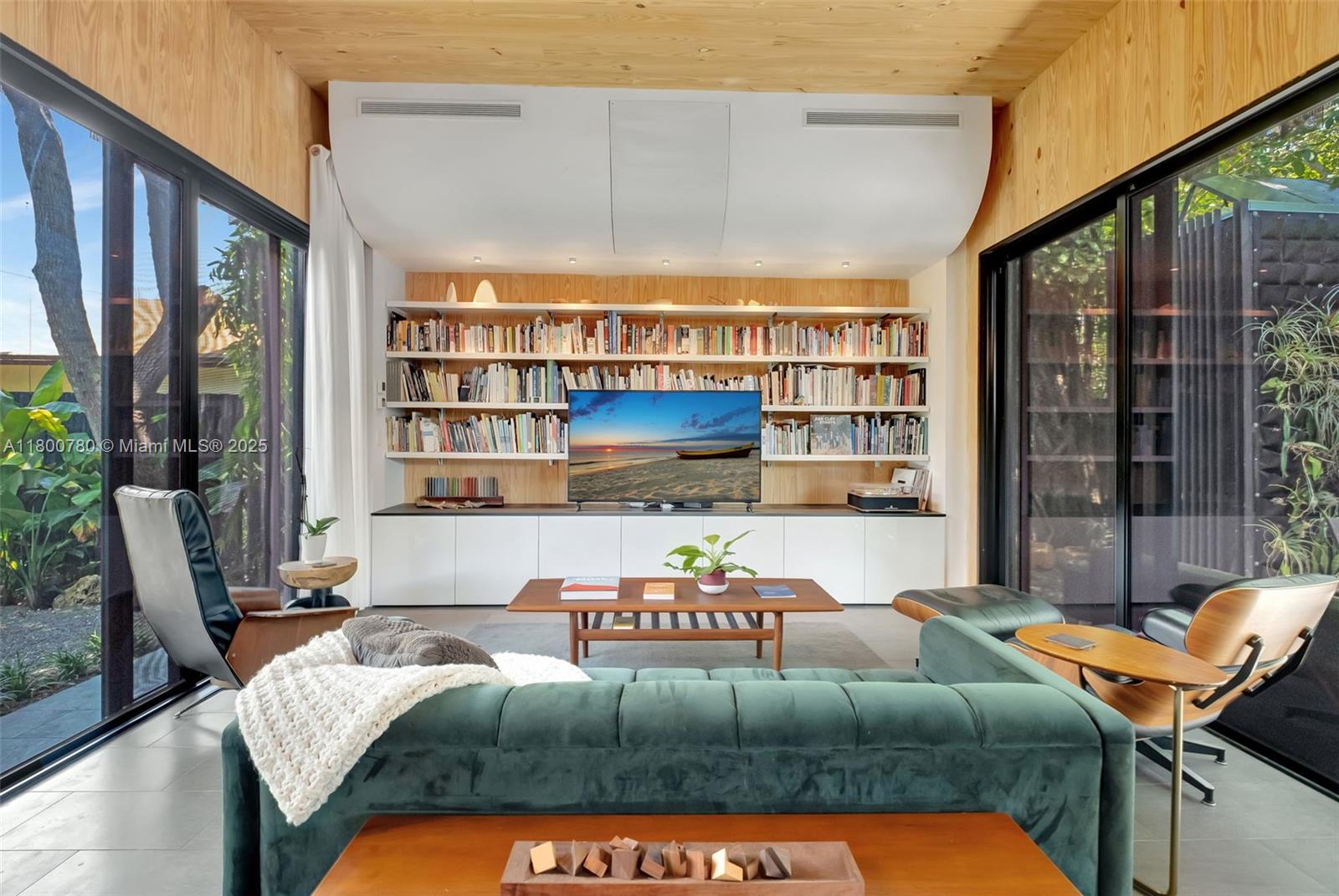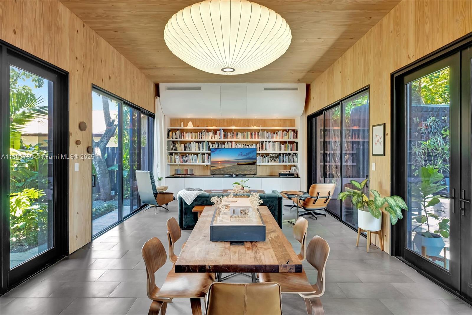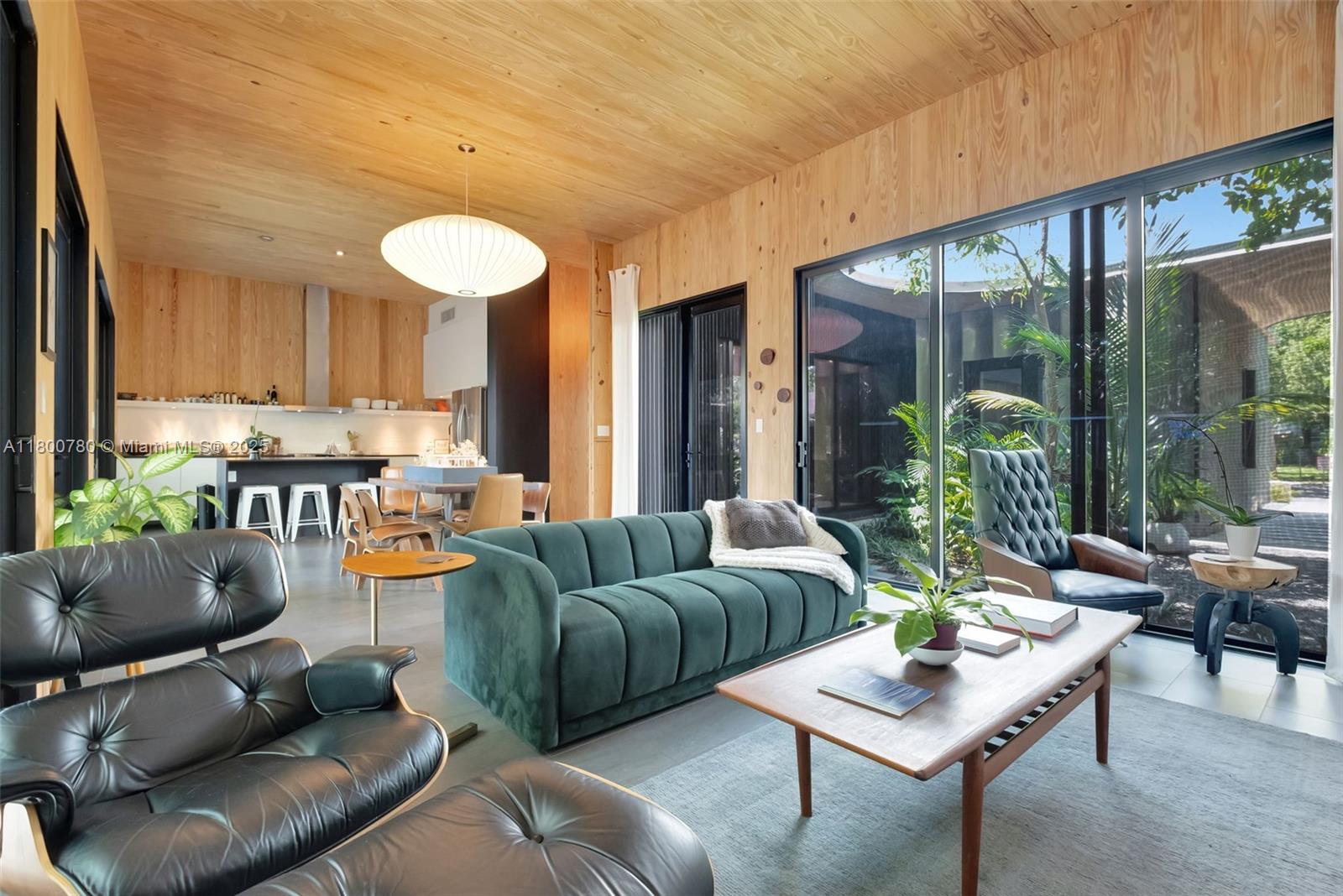 House In A Garden is a distinctive 4-bedroom, 3-bath pool home in Coconut Grove, designed by renowned local architecture firm Atelier Mey and crafted from sustainable mass timber with soaring 11'+ ceilings throughout. This thoughtfully designed single-story home pays homage to the Grove’s Bahamian roots with a full-width front porch that fosters a connection to the community. At its heart, an open-air courtyard brings natural light and lush garden views into every room. The layout wraps around the courtyard, promoting passive cross-ventilation from the south pavilion through the living spaces. Blending indoor comfort with outdoor tranquility, the home offers timeless architectural appeal. Near top schools, parks, dining, and all the charm of Coconut Grove’s ongoing renaissance.