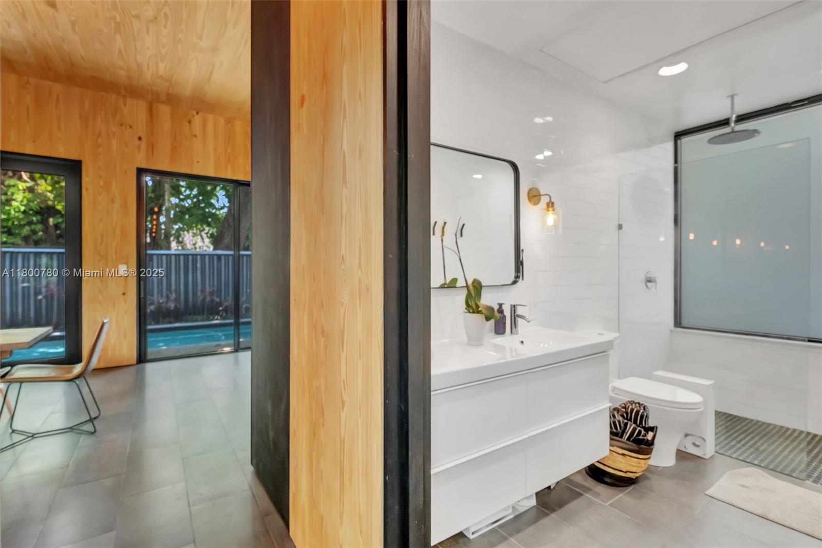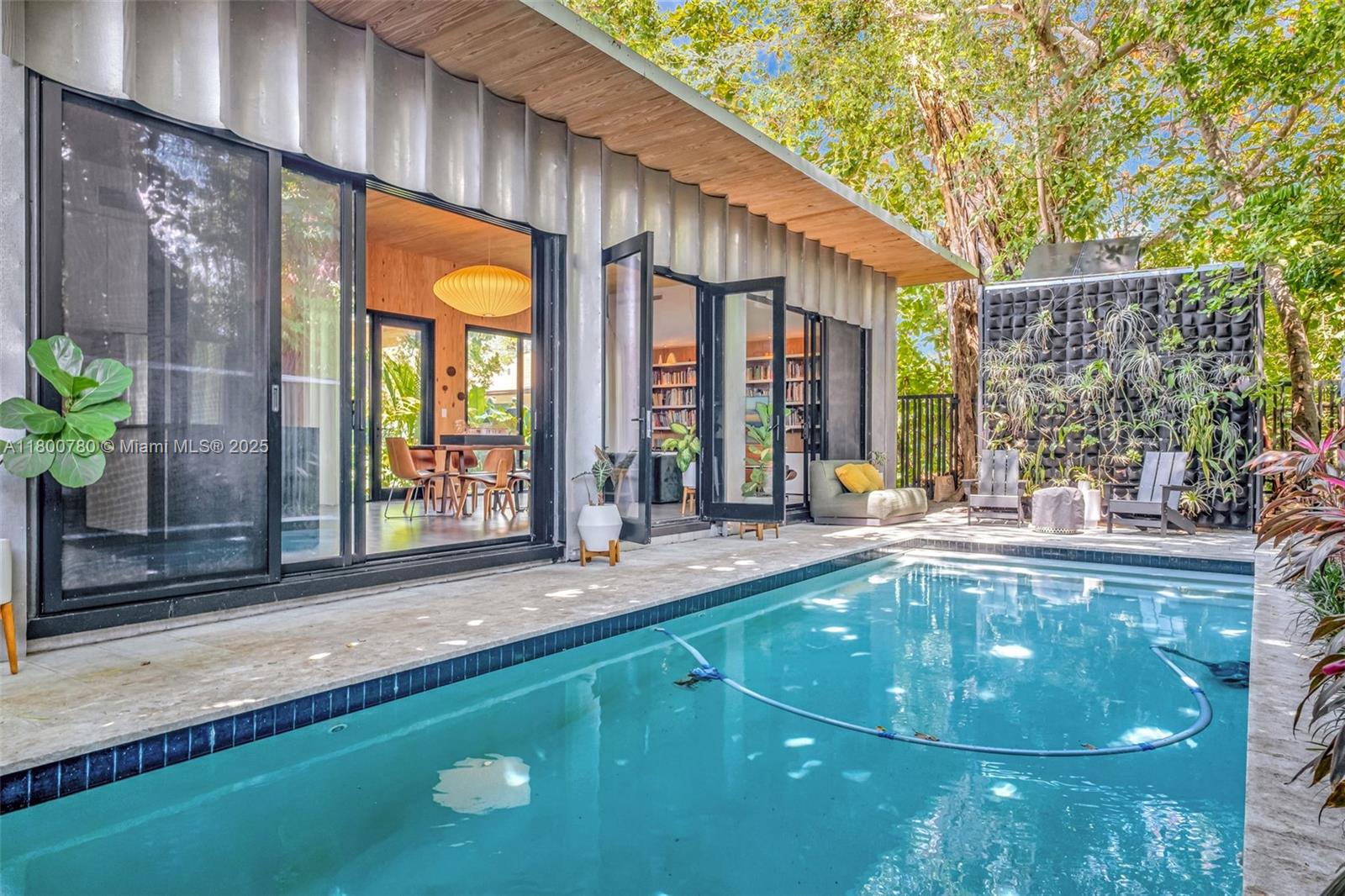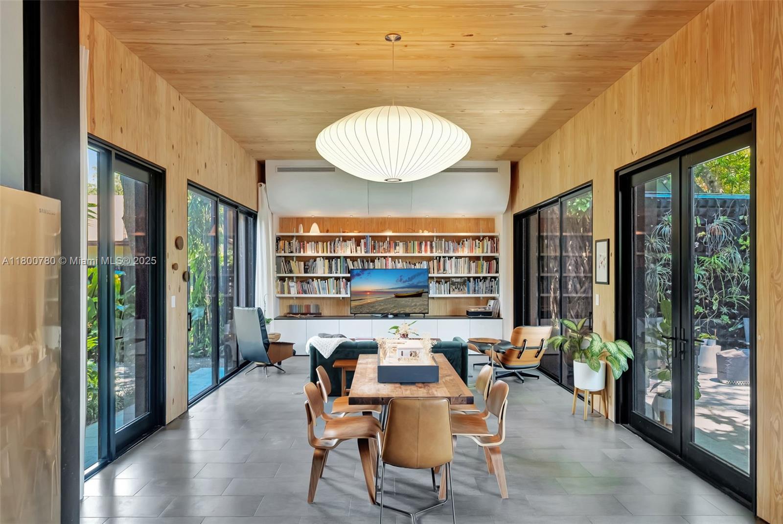 House In A Garden is a distinctive 4-bedroom, 3-bath pool home in Coconut Grove, designed by renowned local architecture firm Atelier Mey and crafted from sustainable mass timber with soaring 11'+ ceilings throughout. This thoughtfully designed single-story home pays homage to the Grove’s Bahamian roots with a full-width front porch that fosters a connection to the community. At its heart, an open-air courtyard brings natural light and lush garden views into every room. The layout wraps around the courtyard, promoting passive cross-ventilation from the south pavilion through the living spaces. Blending indoor comfort with outdoor tranquility, the home offers timeless architectural appeal. Near top schools, parks, dining, and all the charm of Coconut Grove’s ongoing renaissance.