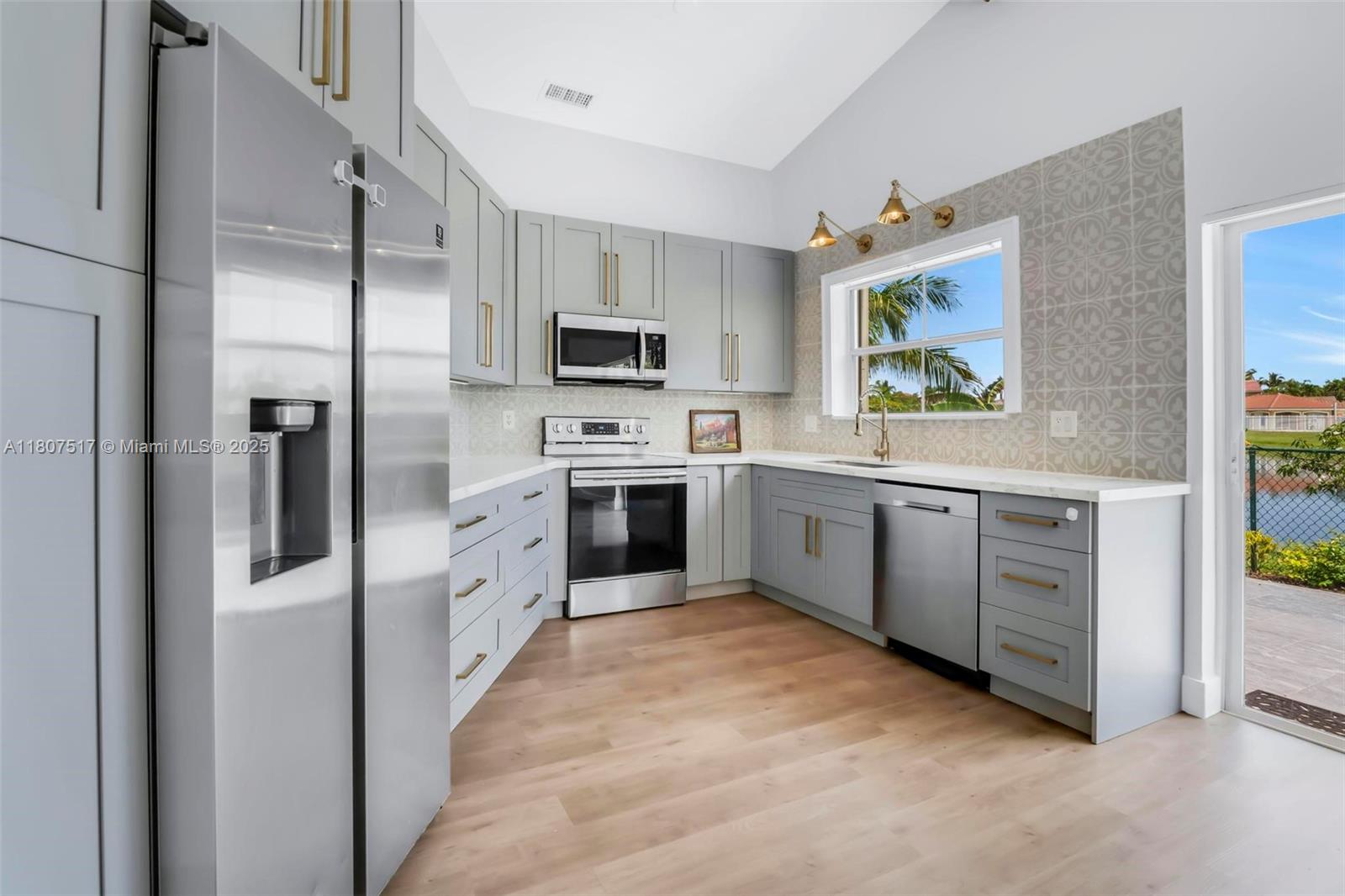 Charming 3BR/2BA one story-lakefront home that's been beautifully updated. Home features: New roof installed in 2022, elongated wood kitchen cabinets and quartz countertops, tankless water heater, new A/C, triple split bedroom layout and more! Enjoy this home's airy and bright open feel with an ample lake view and stylish upgrades throughout. Excellent location near shops and restaurants,, A+ schools, Memorial Hospital and major highways.