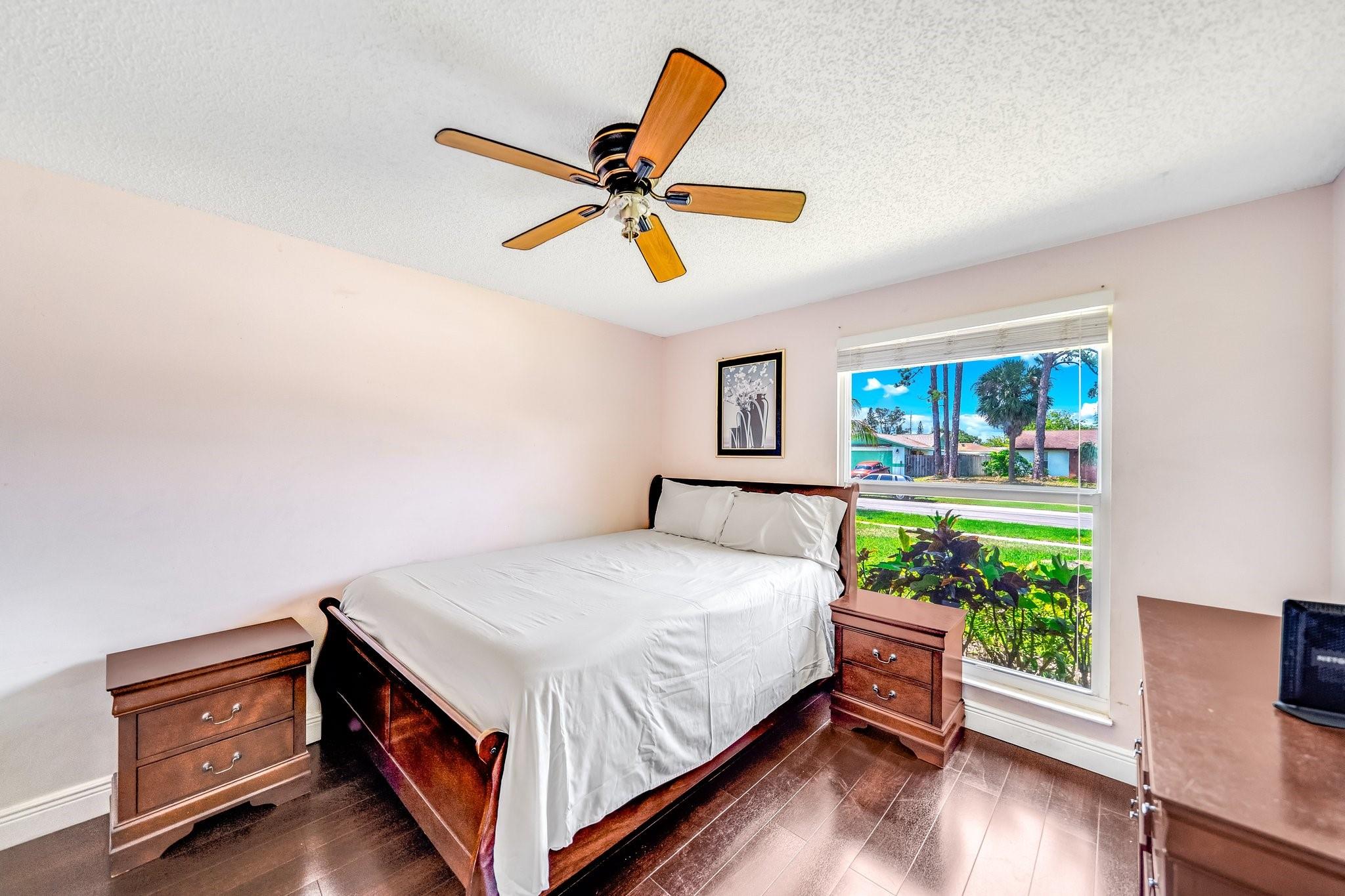WELCOME TO YOUR DREAM HOME in the highly sought-after Lone Pine Estates! This stunning nearly 1500 Sq ft home features new wood flooring throughout all bedrooms, adding warmth & charm. Embrace energy efficiency with fully installed solar panels (paid by sellers at closing) that reduce your utility costs. Hurricane proof windows & doors provide peace of mind and protection. The spacious, sunlit floor plan showcases beautiful granite countertops and stainless steel appliances in the kitchen, perfect for any home chef. Unwind on the patio overlooking a lush backyard oasis filled with mature mango, soursop, & other fruit trees. Located near Rapids Water Park, perfect for kids, family fun, shopping, dining, & easy I-95 access. This home effortlessly combines comfort, style, & smart living!