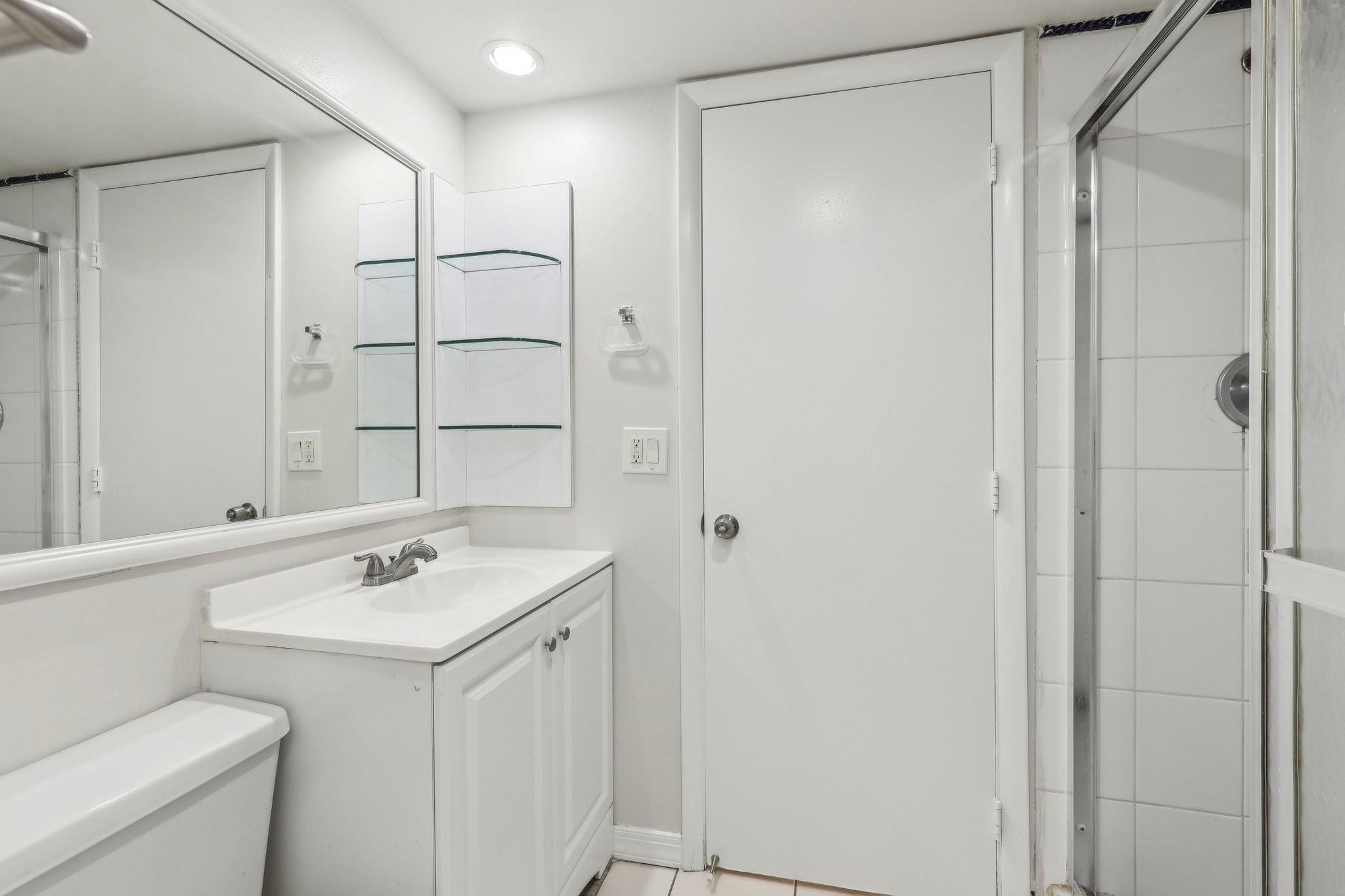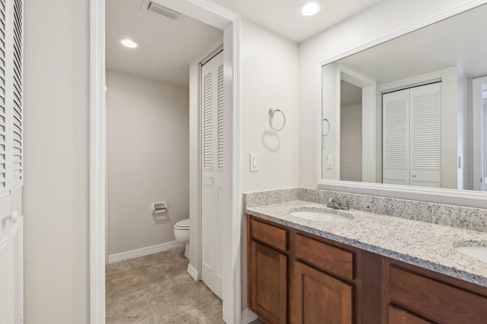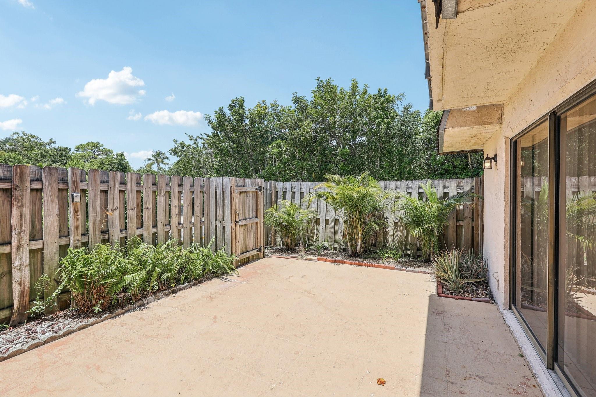 Tastefully updated 2-bedroom, 2-bath townhouse in Forest Lakes with 1,236 sq ft of well-designed space. Features include a modern kitchen with soft-close cabinets, granite counters, and stainless steel appliances; porcelain tile on the main level; and carpeted stairs. Both bathrooms offer floor-to-ceiling tiled walk-in showers and sleek vanities. Enjoy lake views from both bedrooms and a newly fenced private courtyard. Additional upgrades include a tankless water heater, fresh interior paint, and updated ceiling fans. Located at the back of the community for added privacy and just minutes from I-95, PBI Airport, shopping, dining, and the beach. Please note: HOA fee is $345.51 quarterly, plus $950.50 quarterly for HOA insurance.