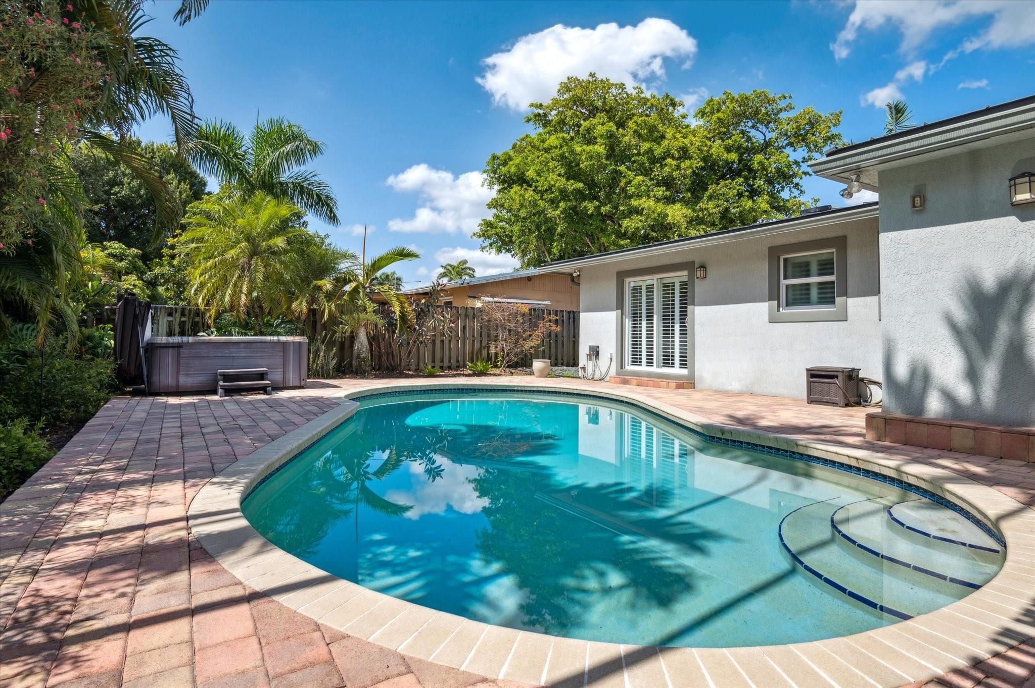 Beautifully renovated 3BR/2BA home in desirable Lauderdale Isles. Updated in 2014 with new plumbing, electrical, impact windows and sliding glass doors, bathrooms, kitchen, and hardwood, travertine, and carpet flooring. Metal roof added in 2023. Gourmet kitchen with granite counters, Viking gas stove, and KitchenAid French door fridge. Custom plantation shutters throughout. Enjoy a heated saltwater pool and pergola-covered patio. Close to beaches, marinas, and downtown—luxury living made easy!