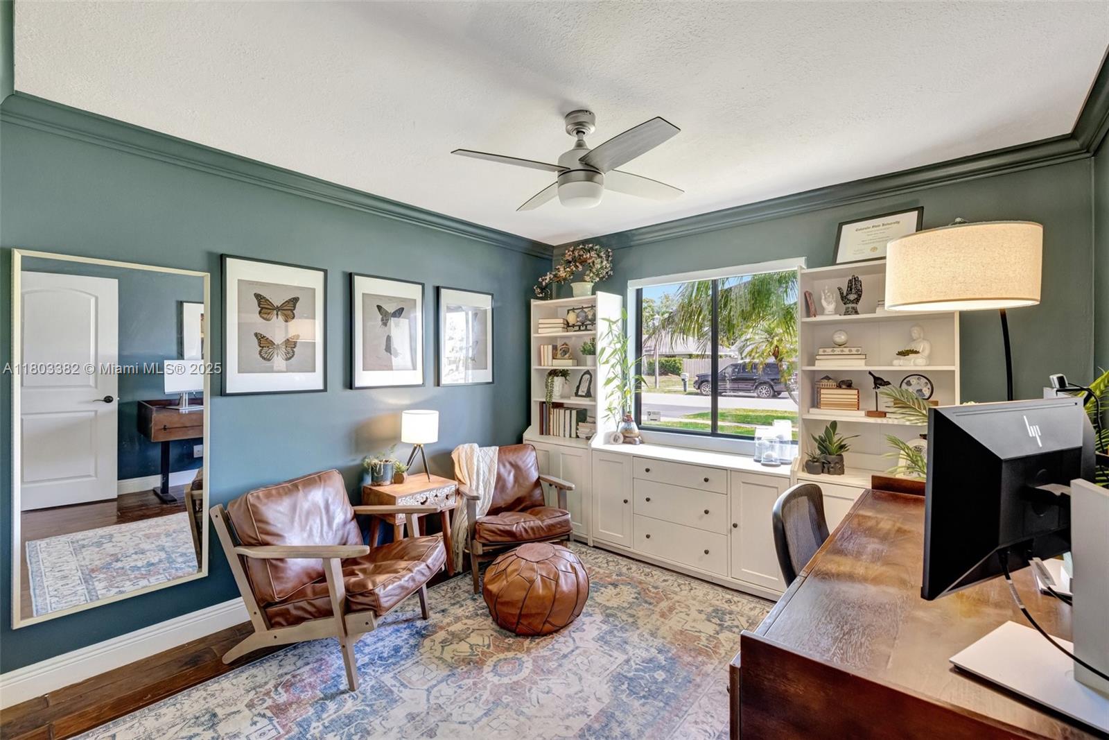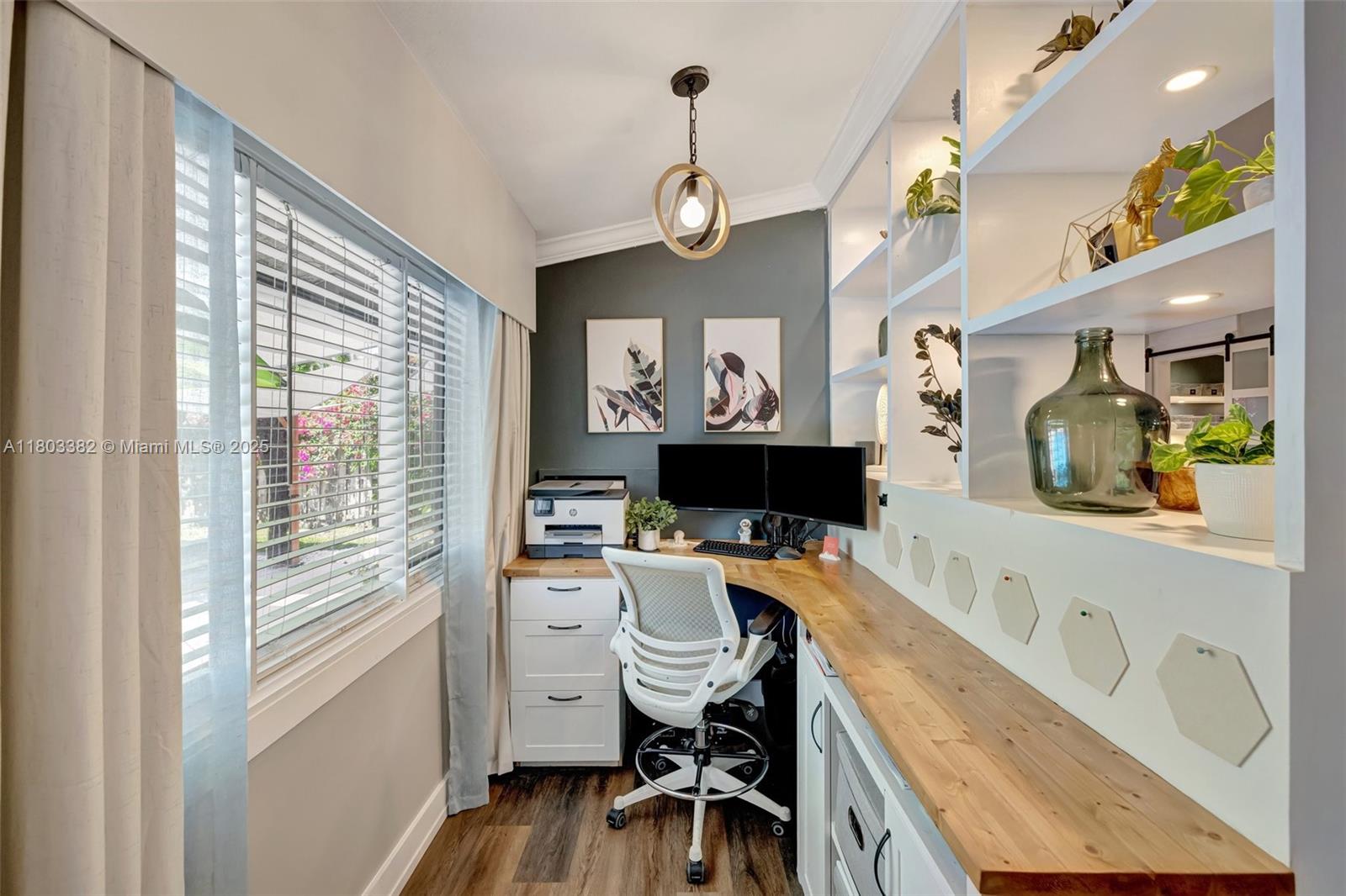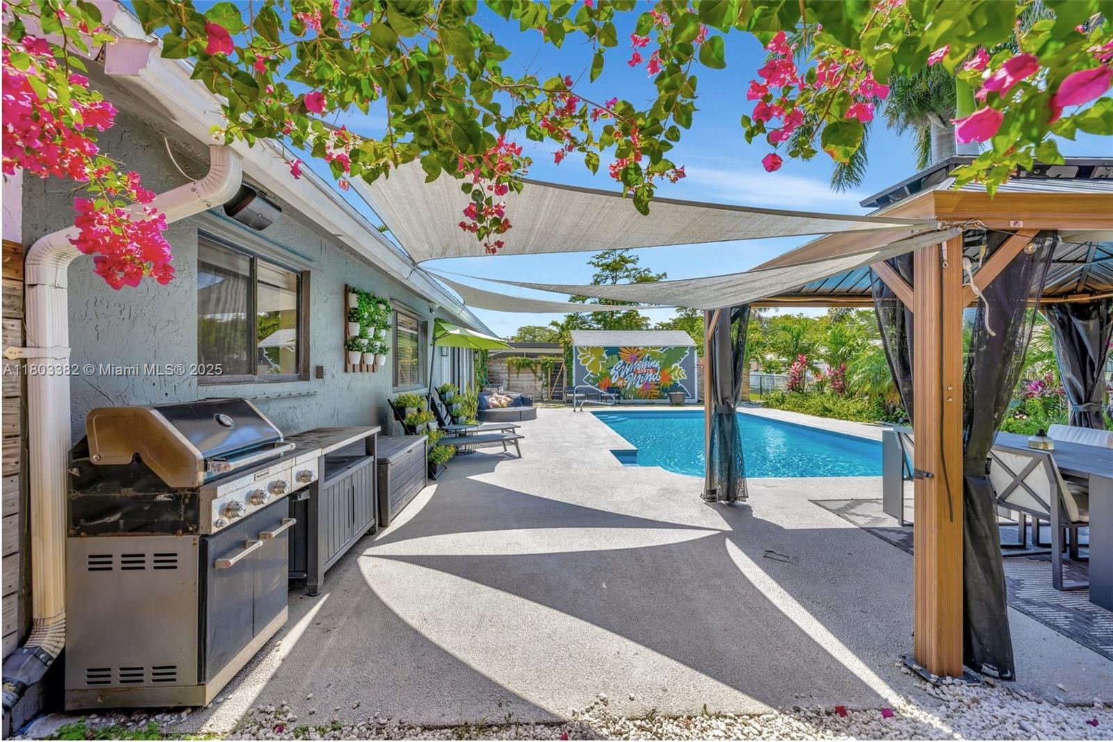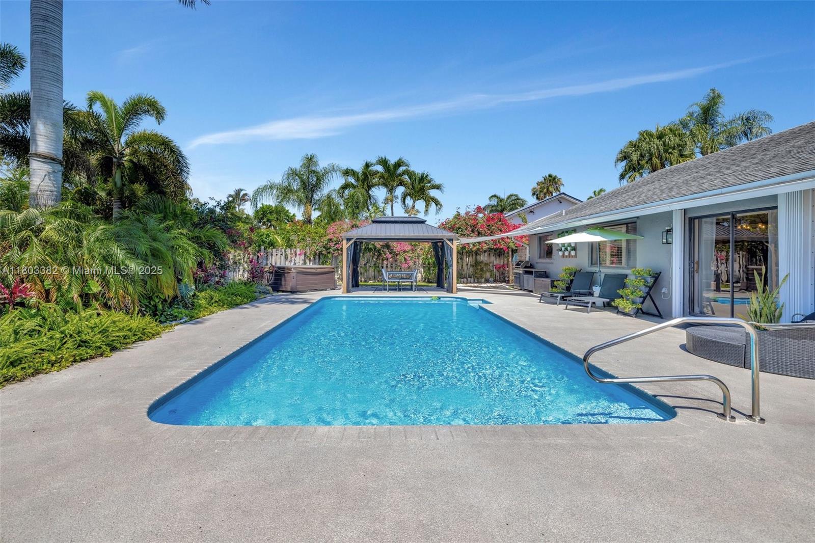 Move-in ready and beautifully updated! This 3-bedroom, 2-bathroom home features a modern open kitchen with sleek finishes, an oversized pantry, and an office nook integrated into the living room. The primary bathroom is a true retreat, offering a spacious double shower, soaking tub, and dual sinks. Step outside to a large heated pool, hot tub, and a tranquil pond, creating the perfect space for relaxation or entertaining. The removable pergola stays with the home, and there's potential to add an outdoor kitchen for even more versatility. A perfect blend of comfort, style, and function—ready for you to call home!