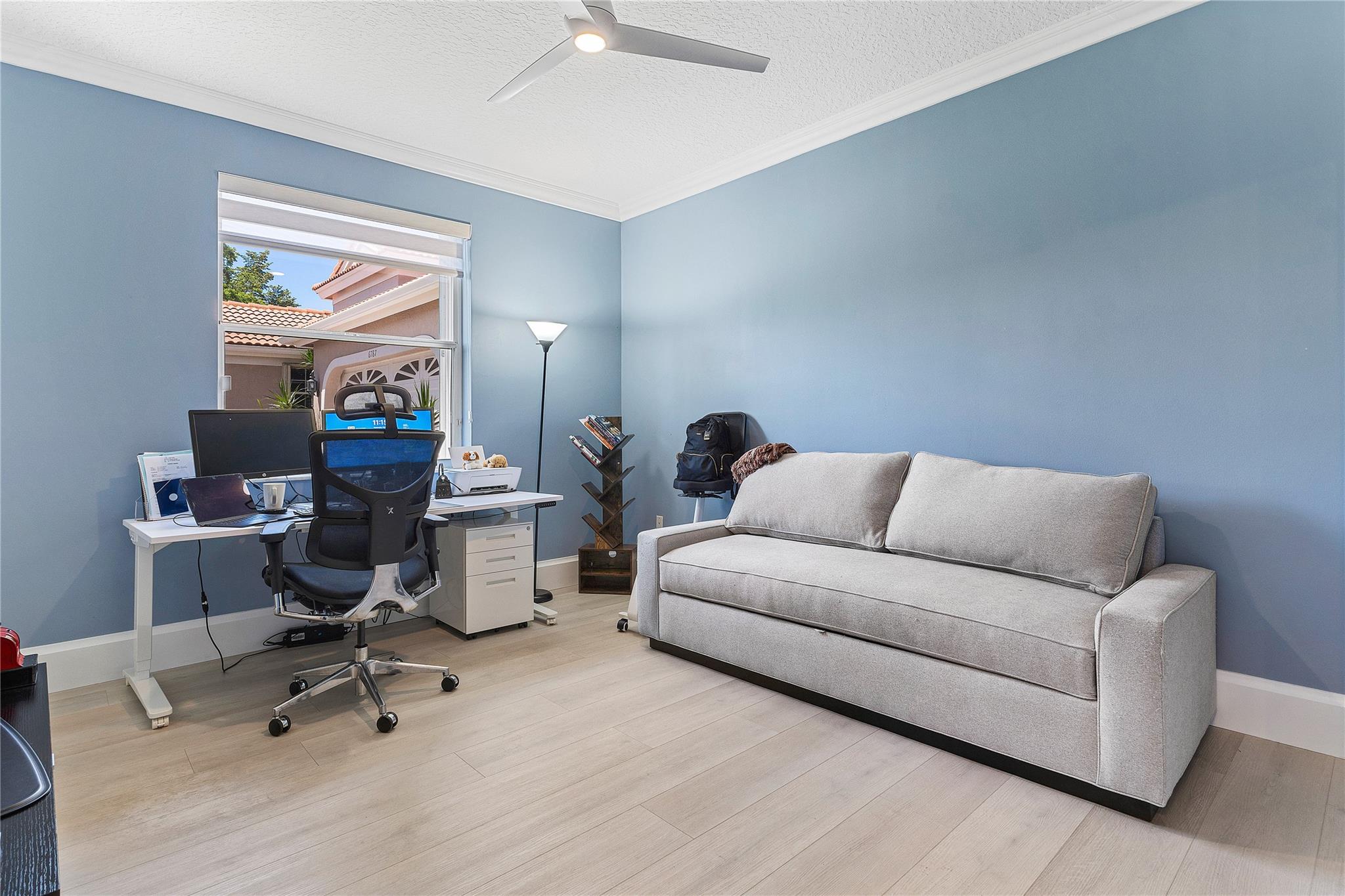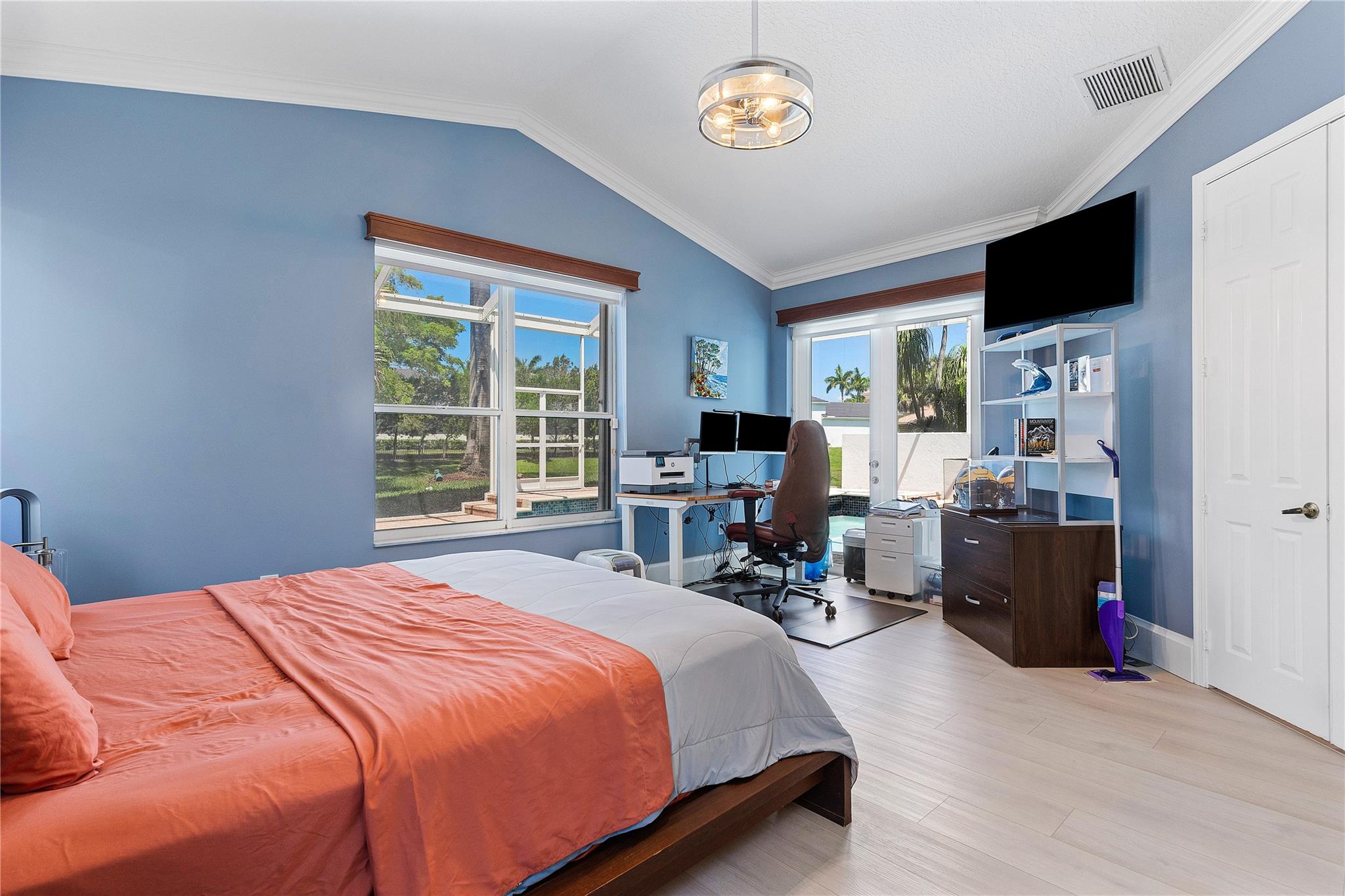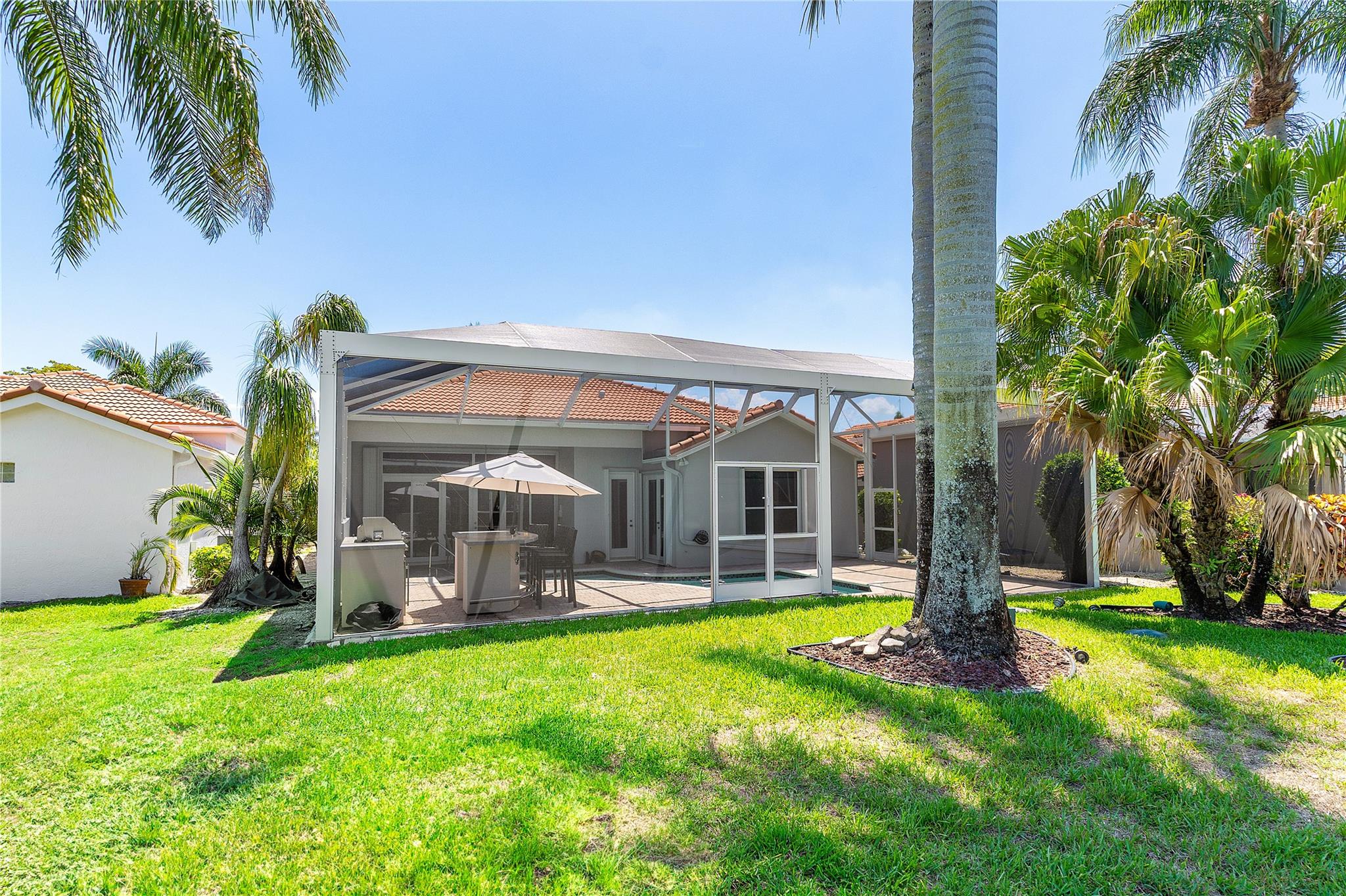 This move-in-ready home is ideal for family living & entertaining! 3 bedrooms (4 large closets), 2.5 baths, a SCREEN-ENCLOSED pool & outdoor kitchen. The open floor plan features new appliances, custom cabinets, a 2019 roof & an expanded living room (2021). Some impact glass & accordion shutters add protection. Freshly painted inside & out (2025), w/new washable laminate flooring & oversized baseboards. Includes formal dining, living & family rooms, plus an open kitchen overlooking the pool-perfect for sunsets. The spacious master suite has pool access, a soaking tub, separate shower, dual vanities & walk-in closets. Add’l rooms include a stylish guest room, 3rd-bedroom w/a walk-in closet & a den/office. The pool area has dining space, outdoor kitchen, bar seating + Whole House generator.