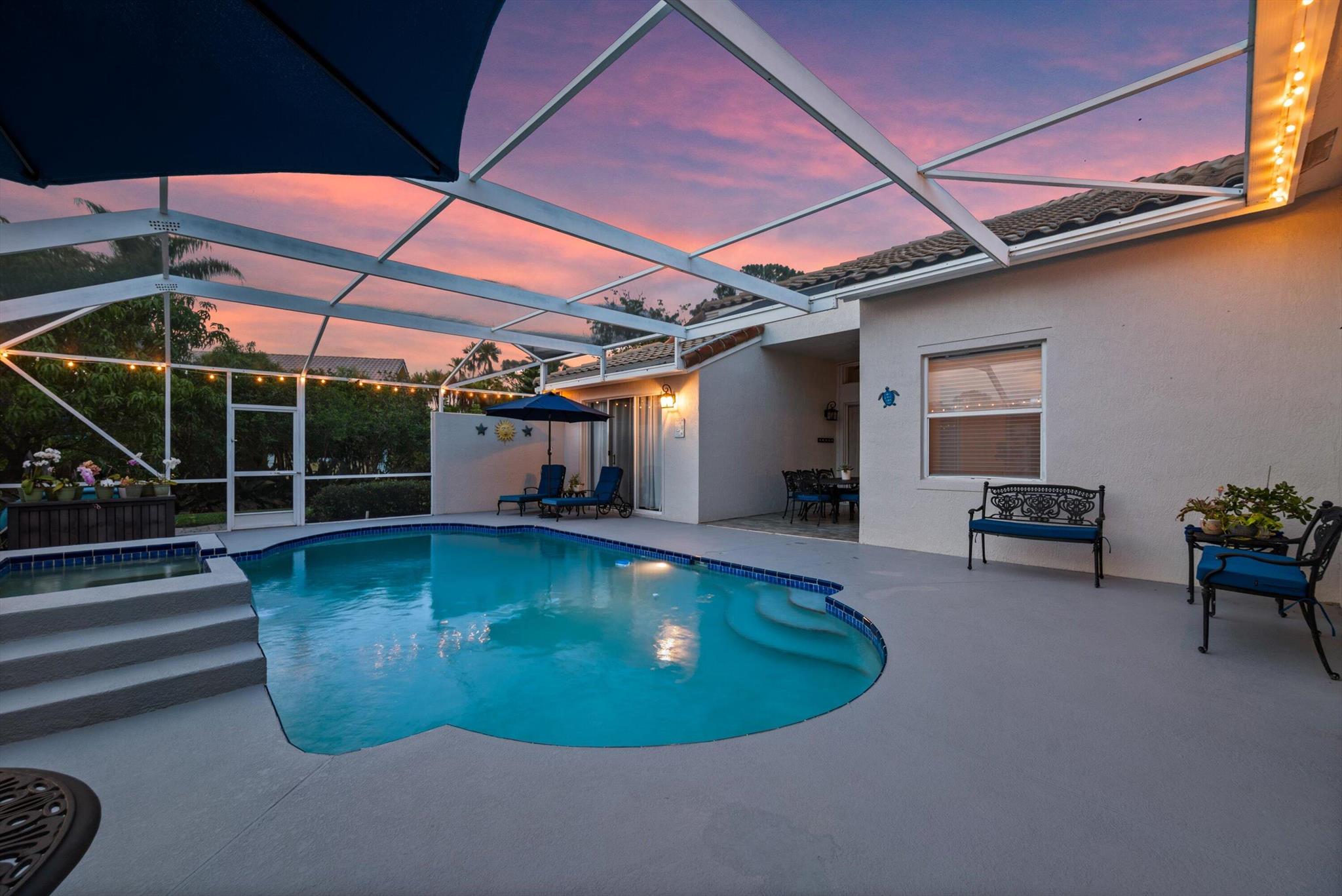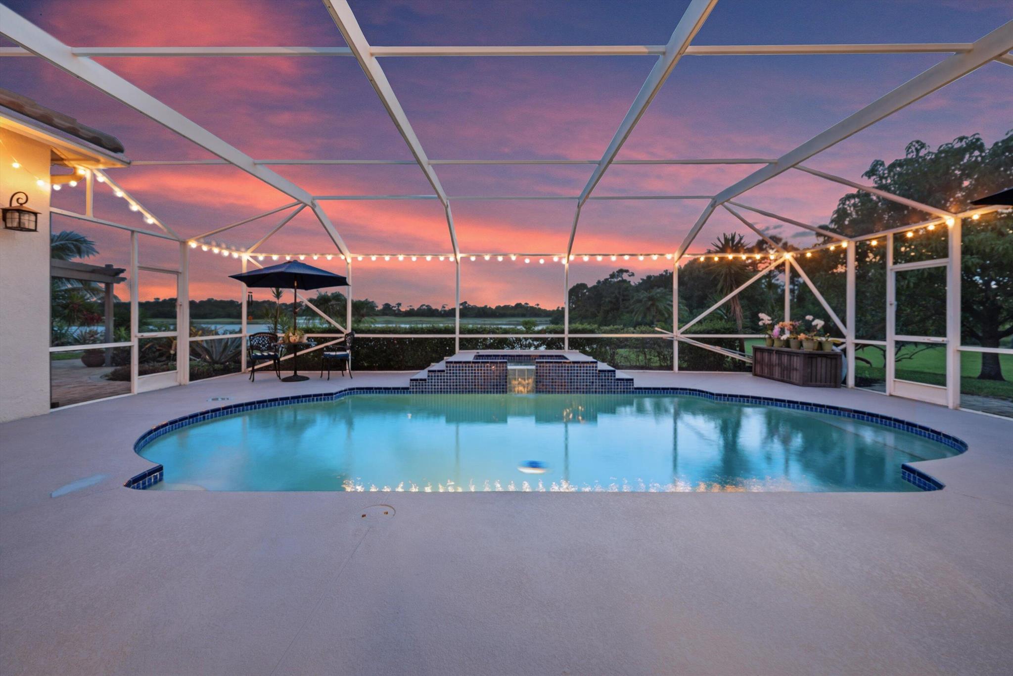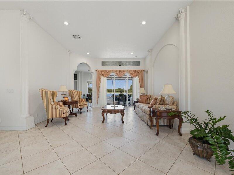 Elegant lakefront estate nestled in a tranquil cul-de-sac, offering sweeping sunset views over a private 20 acre lake. Set on serene .68-acre lot, this residence boasts 4 bedrooms(possible 5), 3 full baths, 2 spacious primary suites w/walkin closets, plus an office/den. The lanai w/pool, spa, outdoor pergola w/builtin grill, firepit creates the ultimate retreat. Features include 2 new AC units,new well, newer appliances, LED lighting, updated kitchen w/granite, reverse osmosis,fresh interior paint, outside painted 2021, circular driveway, 3 car garage, complete hurricane protection to add peace of mind, fruit trees and garden.The Cape Club golf membership is avalable not mandatory. 24/7 guardgated community w/low HOA. Experience unapparelled privacy, elegance, lakeside living at its finest