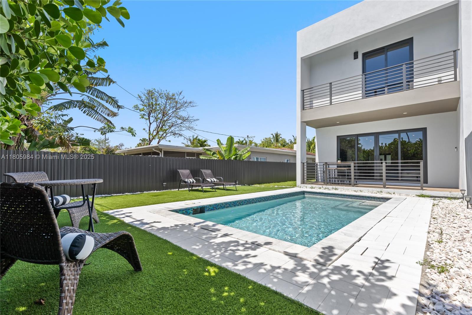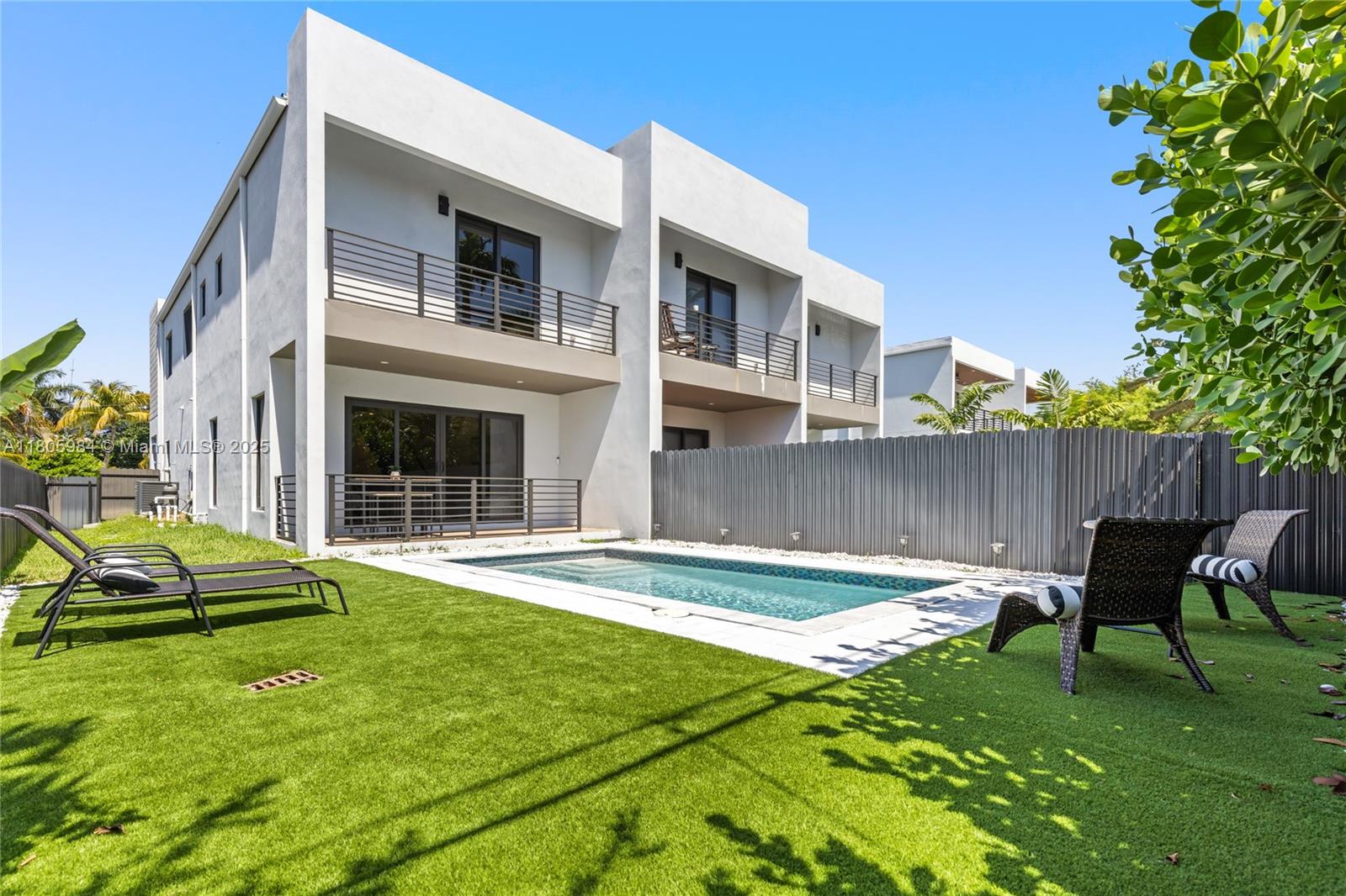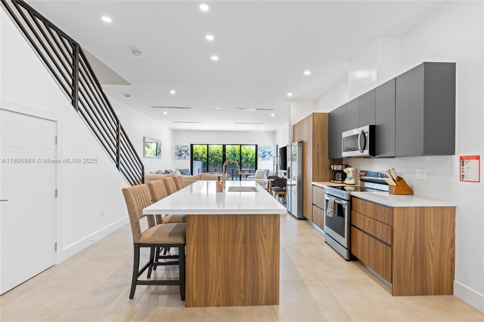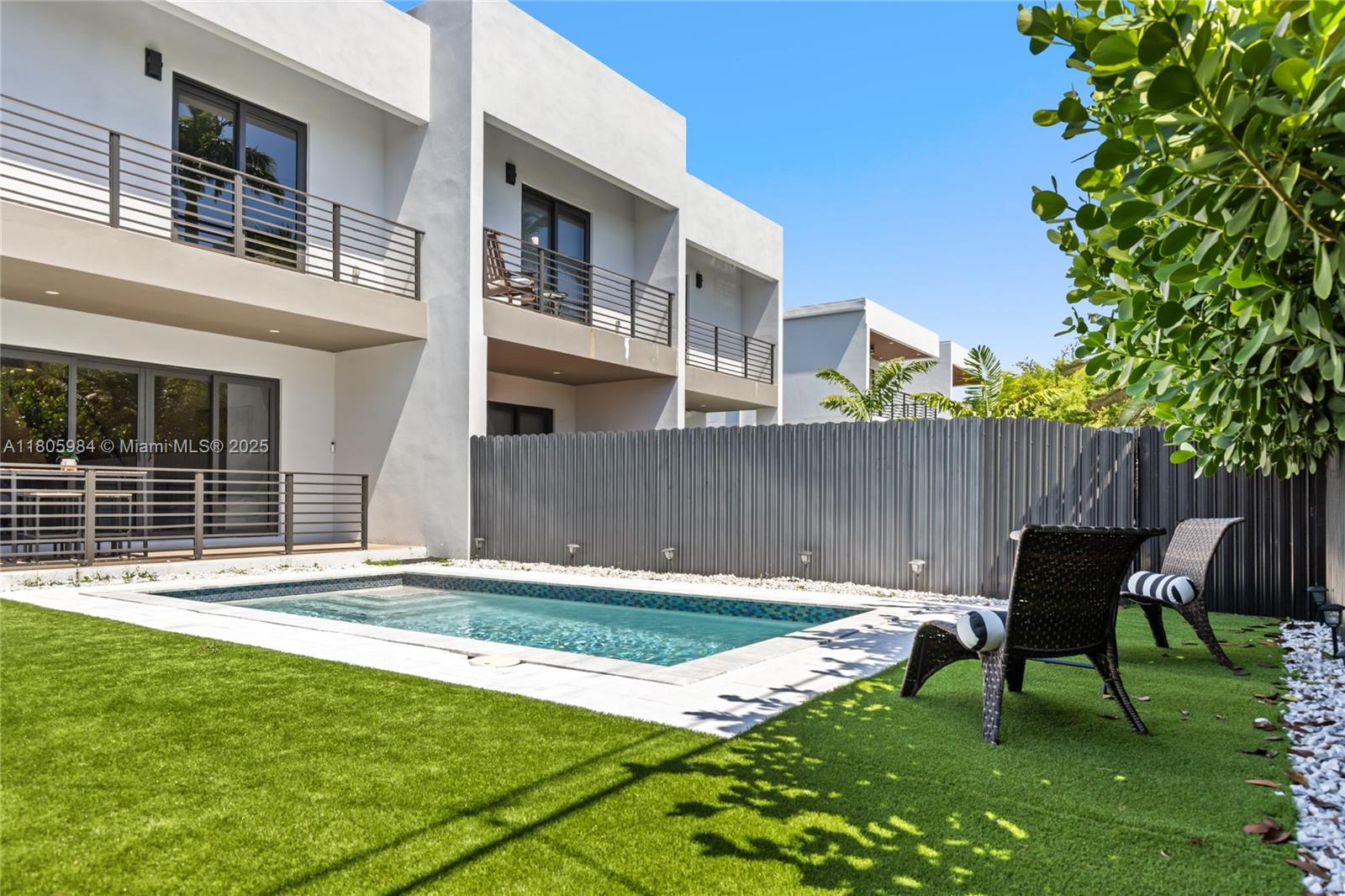 Experience modern luxury in this stunning corner-lot townhome located in Fort Lauderdale’s desirable Lake Ridge neighborhood—home to Bijou Lake Ridge, a one-of-a-kind modern new construction development known for its bold design and impeccable craftsmanship. With over 2,300 sq ft of thoughtfully designed living space, this 4-bedroom, 3.5-bath residence offers high ceilings, hurricane impact windows, and high-end finishes throughout. The first floor features sleek porcelain tile, while the second level showcases warm wood-style vinyl flooring. A chef-inspired kitchen is equipped with smart stainless steel appliances and opens seamlessly to the living and dining areas. Large sliding glass doors lead to a private turfed backyard and sparkling pool, perfect for entertaining or relaxing.