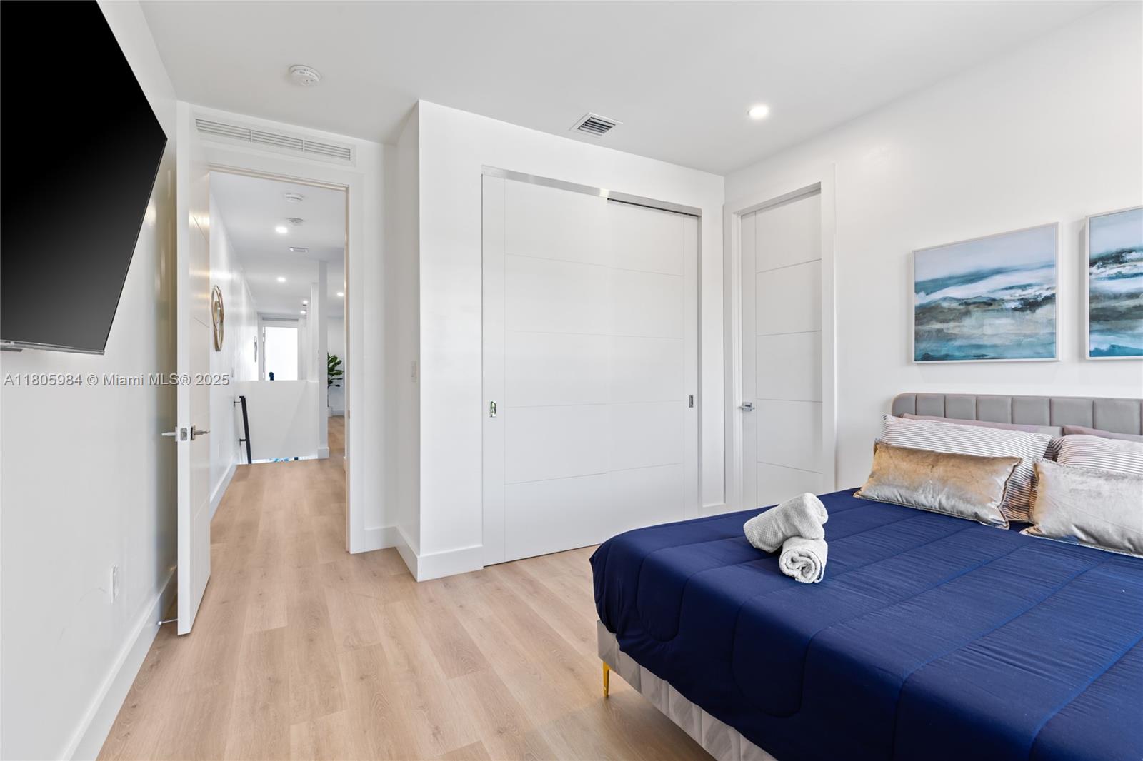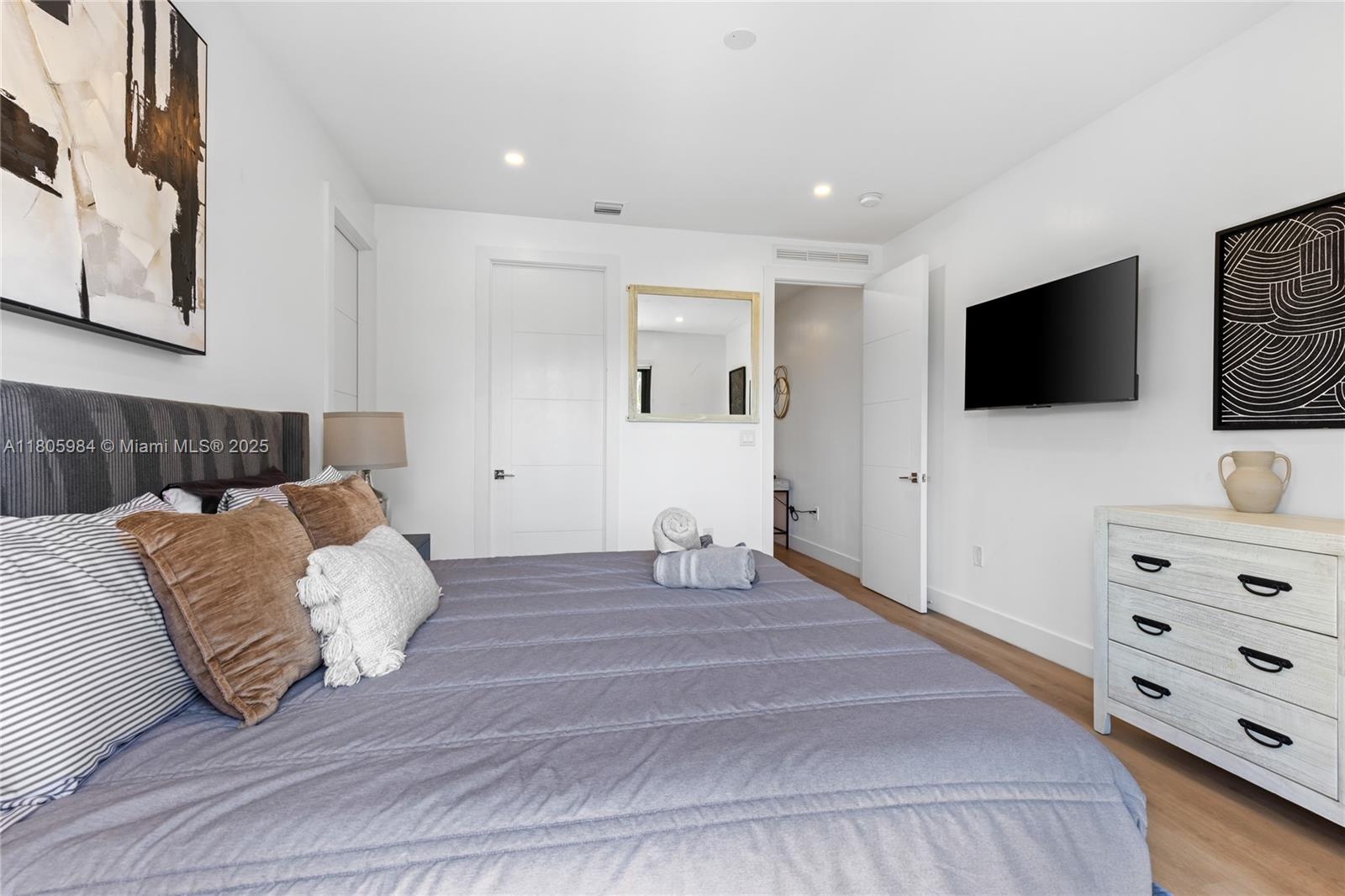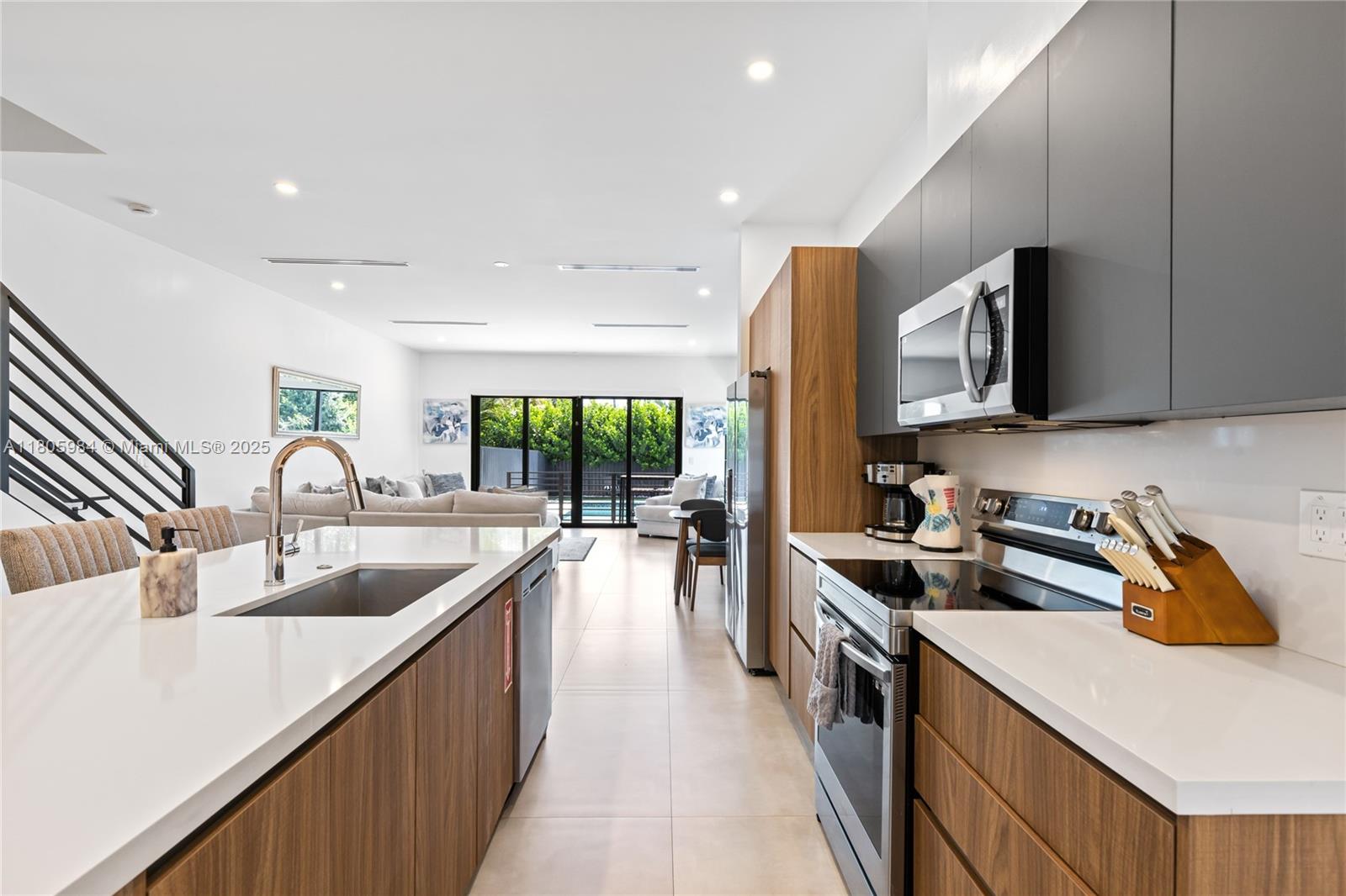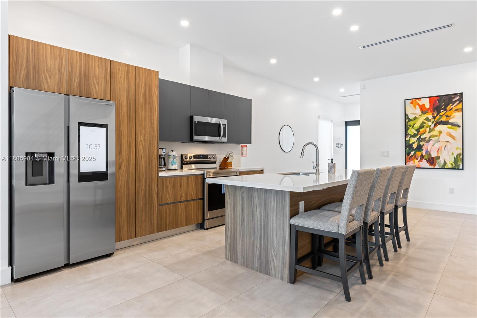 Experience modern luxury in this stunning corner-lot townhome located in Fort Lauderdale’s desirable Lake Ridge neighborhood—home to Bijou Lake Ridge, a one-of-a-kind modern new construction development known for its bold design and impeccable craftsmanship. With over 2,300 sq ft of thoughtfully designed living space, this 4-bedroom, 3.5-bath residence offers high ceilings, hurricane impact windows, and high-end finishes throughout. The first floor features sleek porcelain tile, while the second level showcases warm wood-style vinyl flooring. A chef-inspired kitchen is equipped with smart stainless steel appliances and opens seamlessly to the living and dining areas. Large sliding glass doors lead to a private turfed backyard and sparkling pool, perfect for entertaining or relaxing.