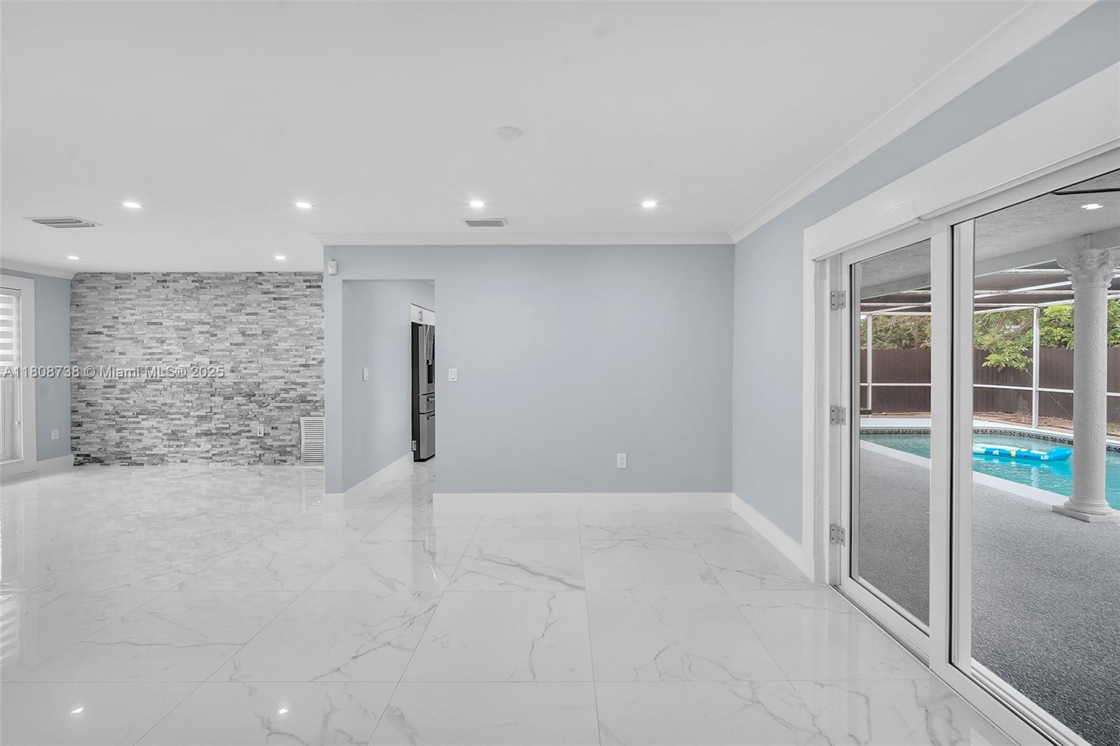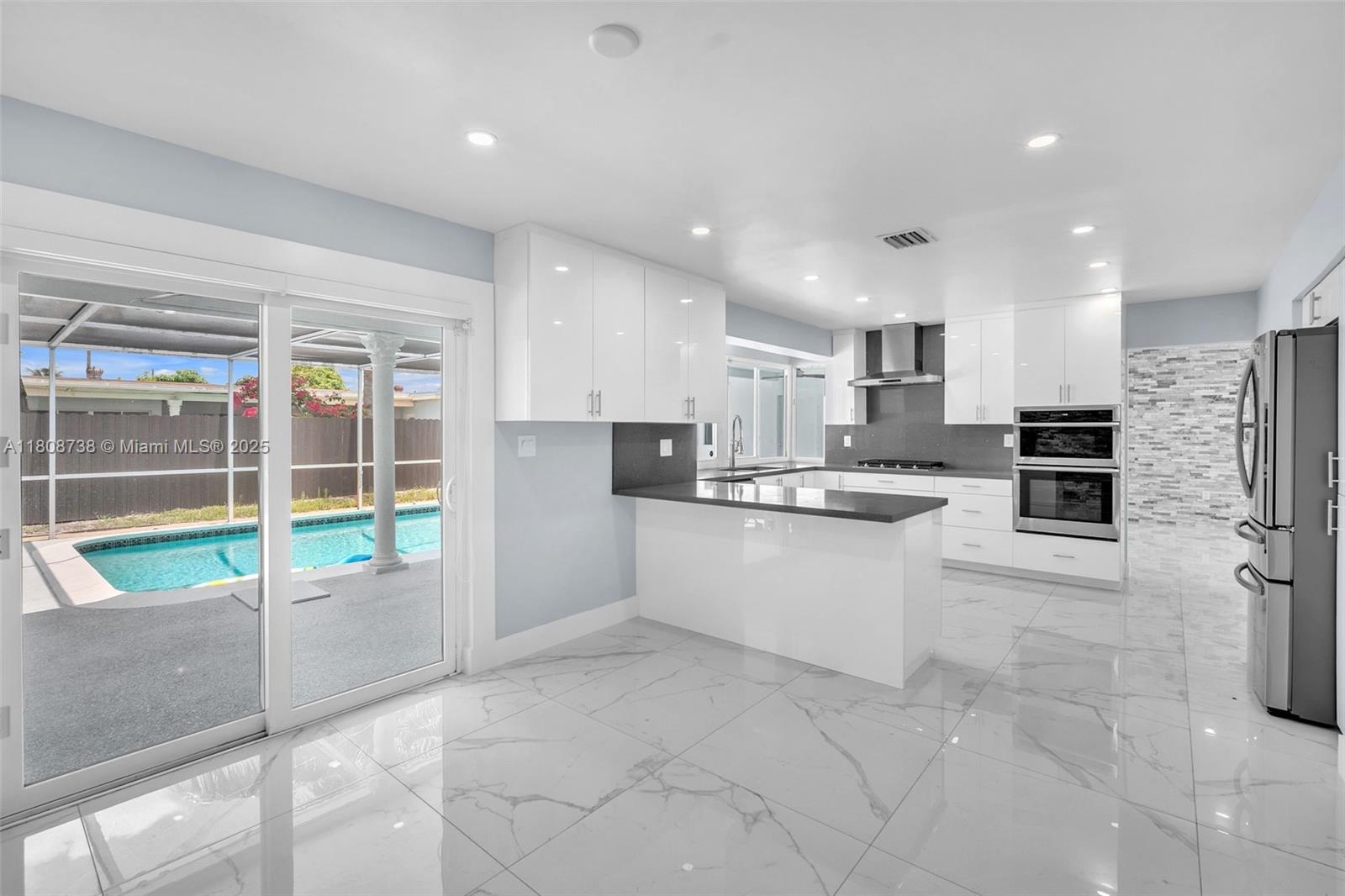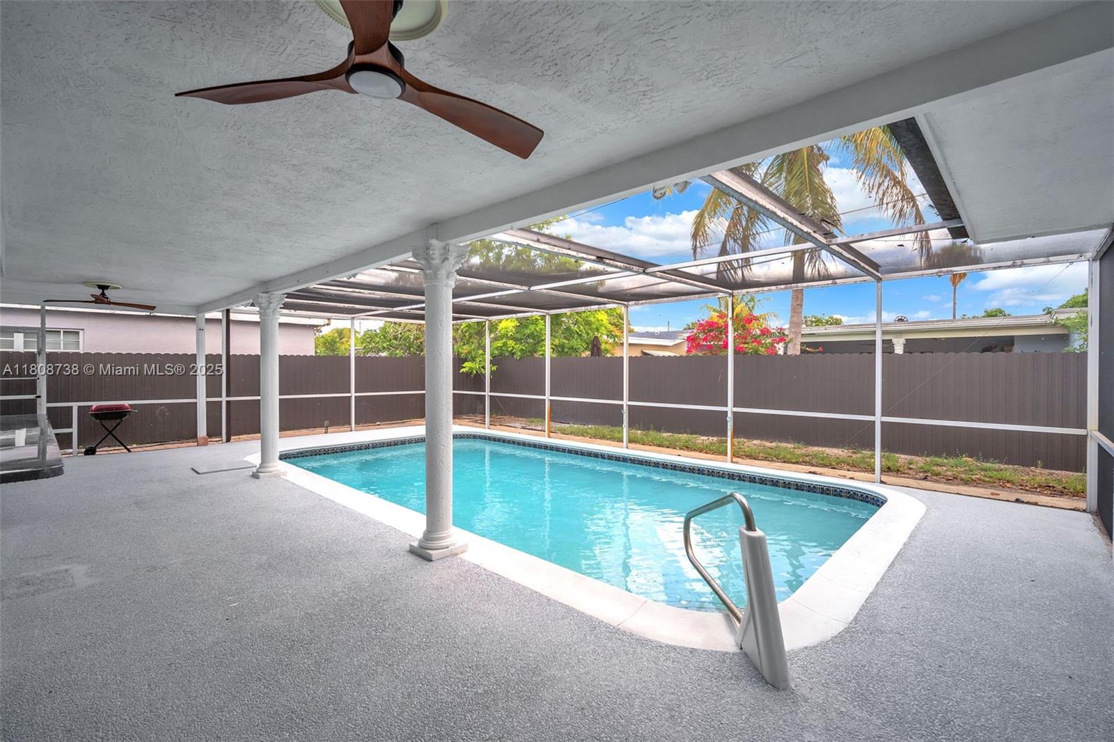 Completely renovated Miramar gem featuring high-end finishes throughout! This bright and spacious home boasts a brand-new roof, impact windows and doors, elegant porcelain tile flooring, and natural gas stove and water heater for added efficiency. Enjoy beautifully updated bathrooms and a modern kitchen designed for both function and style. The converted garage offers flexible space ideal for a home office or in-laws. Step outside to a screened pool perfect for relaxing or entertaining. Nestled in a quiet, secluded neighborhood with no HOA, and just minutes from the Turnpike, top-rated schools, restaurants, shops, and more. New Roof and Impact Windows. A true turnkey opportunity! Preferred lender: Jason Martin from Innovative Mortgage. Call for details.